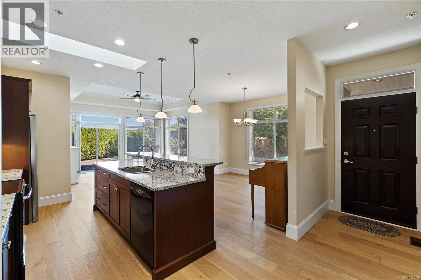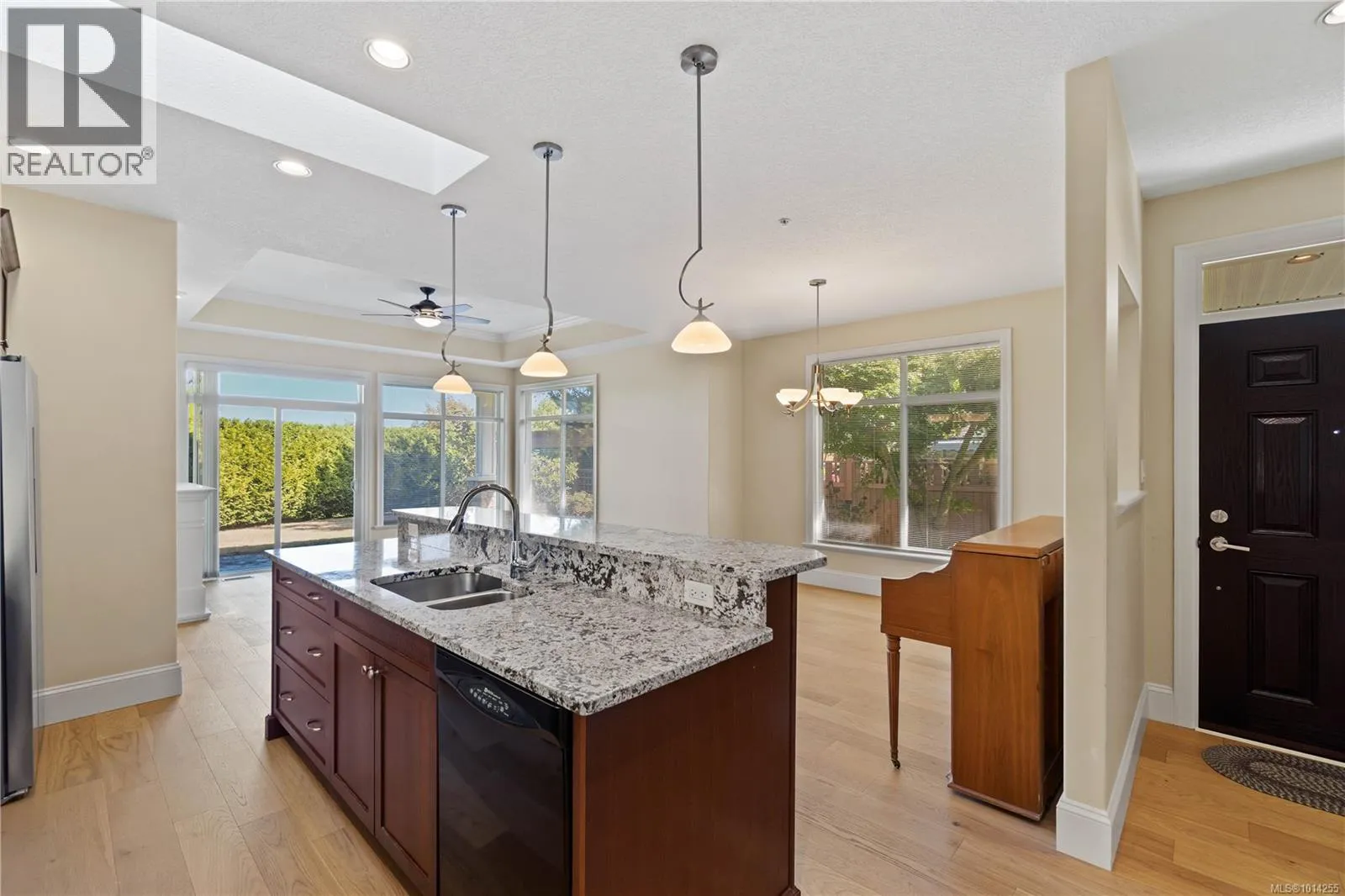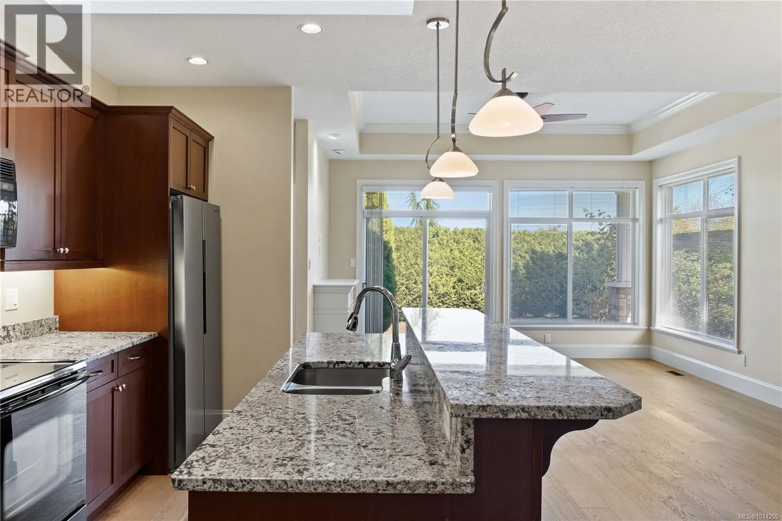 Welcome to the best location in the sought-after Wembley Lane communityâperfect for relaxed, low-maintenance living. This beautifully designed 2-bedroom, 2-bathroom patio home offers 1,243 sq ft of thoughtfully planned West Coast style. Enjoy the warmth of new oak hardwood floors, 9-foot ceilings, and a bright, open layout ideal for easy everyday living. The designer kitchen features solid maple cabinets, granite counters, and a smart, functional flow. A cozy computer nook adds flexibility for hobbies or home office needs. Step outside to your spacious backyard oasisâone of the largest and most inviting in the complex. Built with quality and comfort in mind, with gas-forced air heat, crawl space storage, and a spacious single-car garage plus an extra parking spot. Whether you're downsizing or simply enjoying a quieter pace, this lovingly maintained home offers the perfect blend of comfort, convenience, and style. Strata fee $350/mth. For more information contact the listing agent, Kirk Walper, at 250-228-4275. (id:27476)
