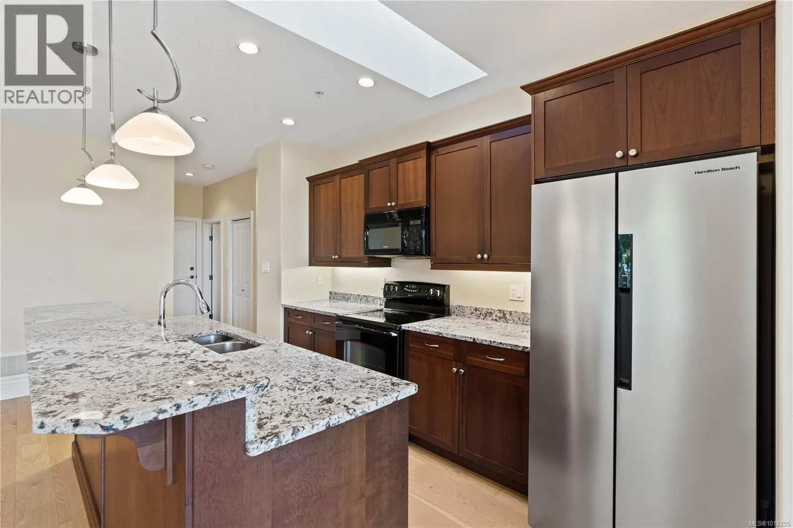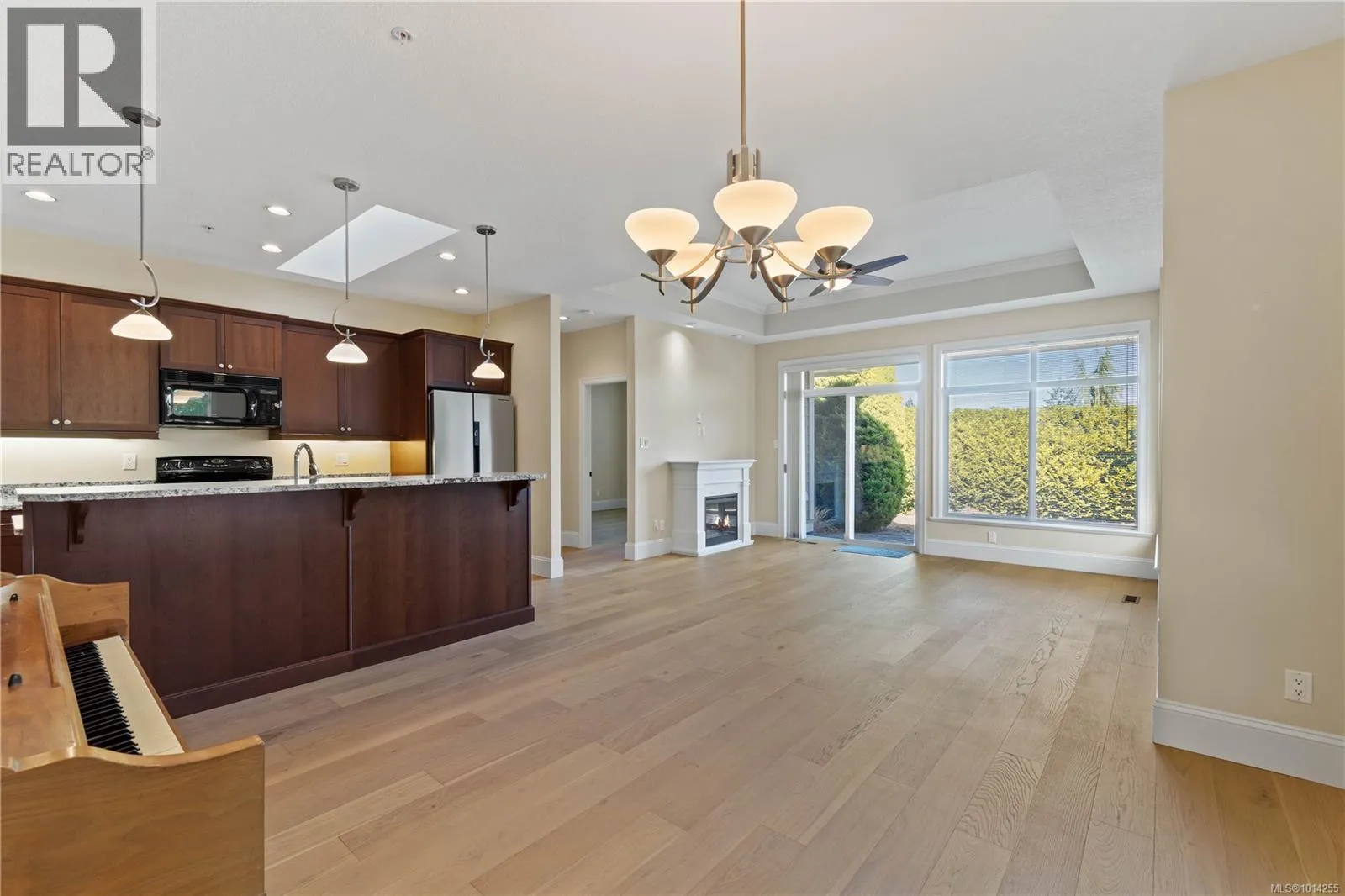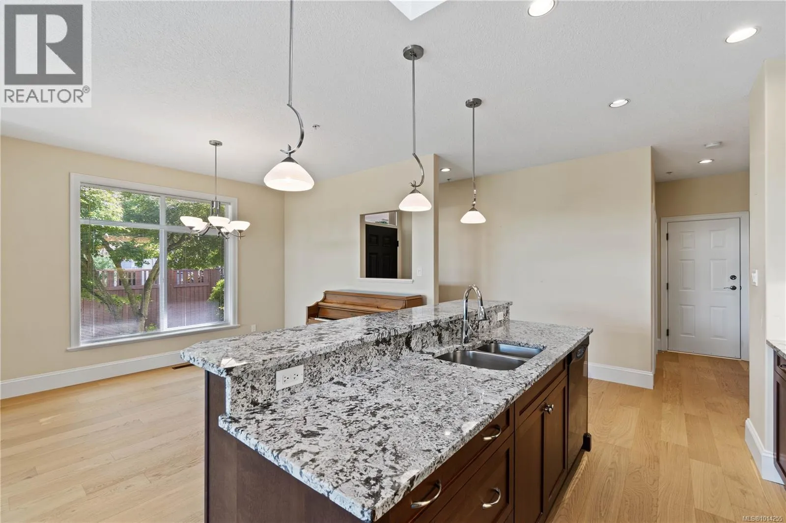 Welcome to the best location in the sought-after Wembley Lane communityâperfect for relaxed, low-maintenance living. This beautifully designed 2-bedroom, 2-bathroom patio home offers 1,243 sq ft of thoughtfully planned West Coast style. Enjoy the warmth of new oak hardwood floors, 9-foot ceilings, and a bright, open layout ideal for easy everyday living. The designer kitchen features solid maple cabinets, granite counters, and a smart, functional flow. A cozy computer nook adds flexibility for hobbies or home office needs. Step outside to your spacious backyard oasisâone of the largest and most inviting in the complex. Built with quality and comfort in mind, with gas-forced air heat, crawl space storage, and a spacious single-car garage plus an extra parking spot. Whether you're downsizing or simply enjoying a quieter pace, this lovingly maintained home offers the perfect blend of comfort, convenience, and style. Strata fee $350/mth. For more information contact the listing agent, Kirk Walper, at 250-228-4275. (id:27476)