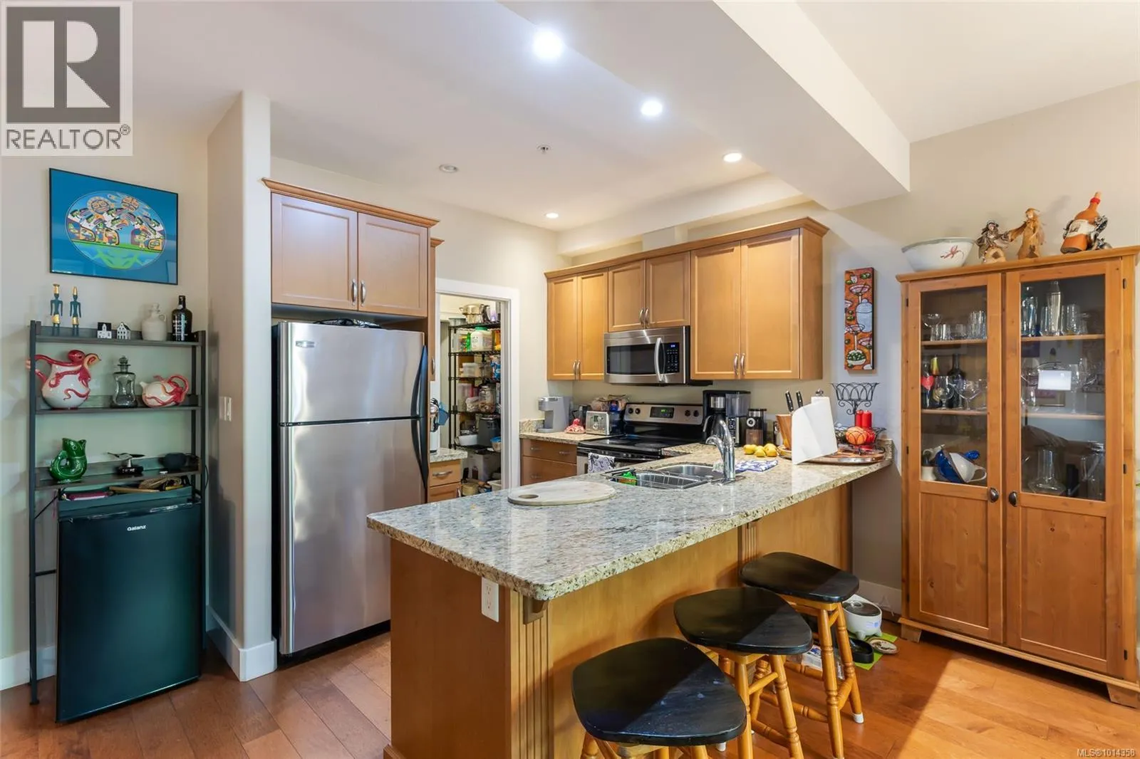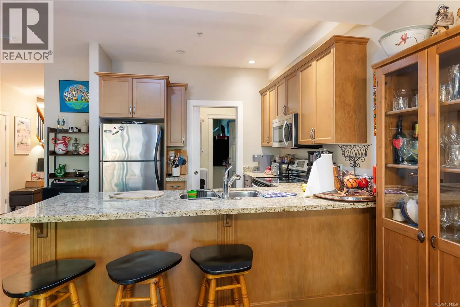 Beautiful Townhome in the Heart of Parksville! This bright and spacious 1664 sqft 3 Bed/3 Bath Townhome delivers beyond expectations with its well-planned layout, quality finishing, and unbeatable location in âAvalonâ, a nicely landscaped 14-unit complex near the center of town, just blocks from the ocean and within walking distance of shopping, eateries, coffee shops, and amenities. From the cozy front patio, the entry door opens to a tiled foyer and hall leading to a warm open-plan Kitchen/Living/Dining area with varied ceiling heights, wood-finish laminate flooring, and a stone feature wall with a natural gas fireplaceâa lovely focal point offering radiant warmth on cooler evenings. The Living Room provides a great display wall for art, while the Maple Kitchen boasts stainless steel appliances (including a newer microwave/hood fan), granite countertops with an undermount sink, and a breakfast bar. A sliding pocket door accesses the Laundry Room with shelving, a full-size stacking washer/dryer, and a door to the Single Garage for easy grocery unloading. The generous Dining Room accommodates a hutch and is ideal for everyday meals, or step through glass doors to the back patio with greenbelt views. With room for flower pots, this outdoor retreat is perfect for morning coffee, a book, or gathering with friends. The foyer hosts a 2 pc Powder Room and staircase with storage leading to a spacious upper landing. The Primary Suite offers a ceiling fan, dual walk-in closets, and a 3 pc ensuite with glass shower. Two additional Bedrooms provide space for family, guests, or hobbies, and share a 5 pc Main Bath with dual-sink vanity, tile flooring, and a tub/shower combo. Quality-built in 2008 with safety in mind, the home features sound- and fire-transfer protection between floors and walls, as well as an interior sprinkler system. Extras include a heated crawlspace and a screen door on the patio slider to let in the fresh ocean air. Visit our website for more info. (id:27476)
