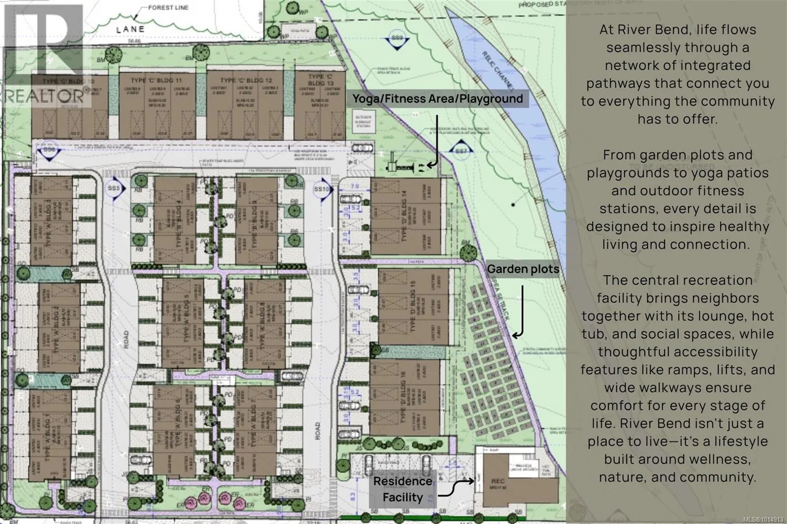 5% deposit for limited time! Discover the Village of River Bend, Parksvilleâs newest community where recreation, leisure and modern living come together. Nestled along the Englishman River, this Phase 1 home features 2 bedrooms plus a den and 2.5 bathrooms, thoughtfully designed with hardwood floors, open living spaces, and a private patio. The sustainable homes are well insulated, and have solar panels, EV chargers, efficient HEPA HRV's and Heat Pumps. Beyond your home, River Bend offers a lifestyle like no otherâcast a line for world-class fly fishing, explore scenic walking and biking trails with easy access to the beach, forest, river and local amenities. Enjoy the peaceful connection to nature all around you. The village-style amenities include individual garden plots, playground, yoga patio, outdoor gym, and a shared recreation facility with pool table, lounge, private BBQ patio and Hot Tub for friends and neighbours. Accessible living options with walkways, ramps, lifts for aging adults and lots of room for storage, River Bend is designed for all stages of life! Move in Summer 2026!! (id:27476)