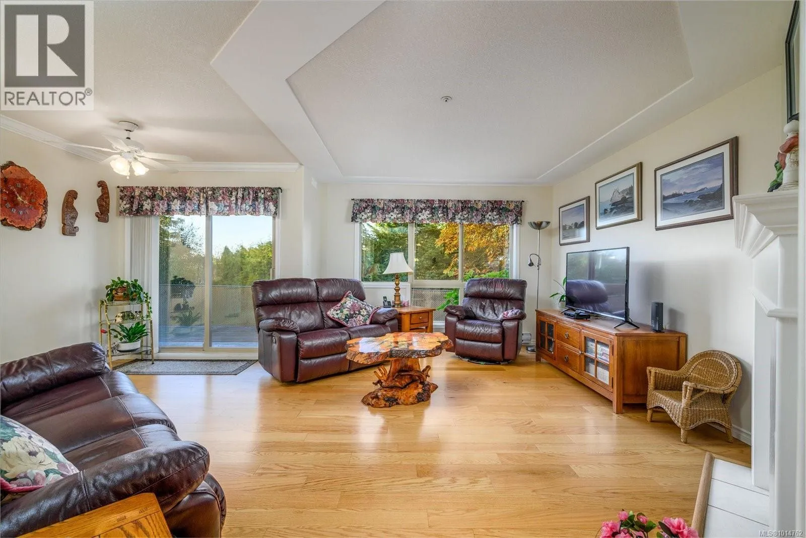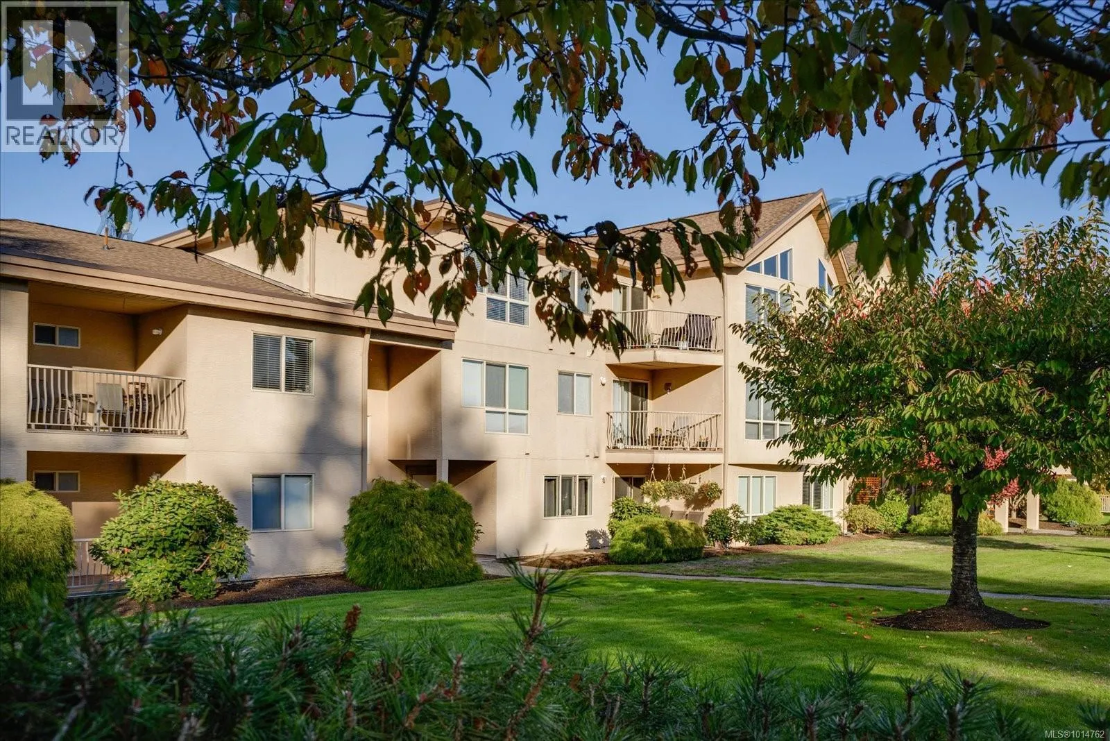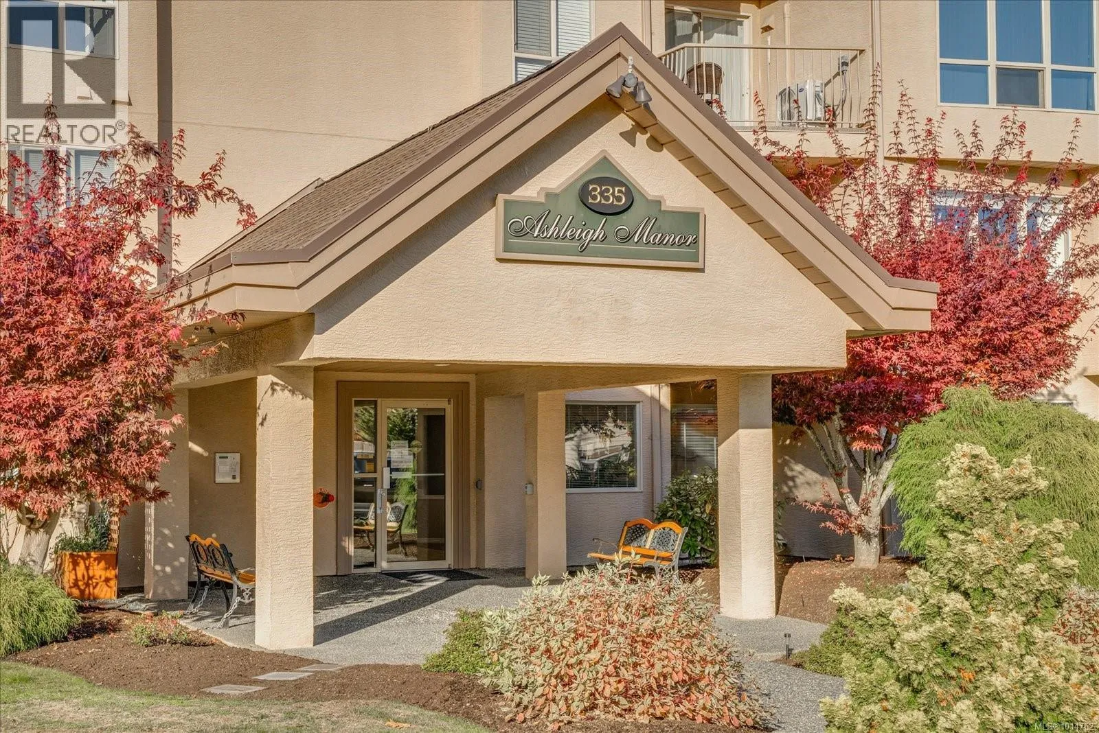 This ground-floor condo in Ashleigh Manor boasts two bedrooms plus a den and is truly captivating. With a spacious layout covering over 1430 square feet, it showcases a meticulously designed floor plan. The kitchen offers ample cupboard space, with glass doors opening up from your eating nook to your large private outdoor patio. The living room features large windows allowing lots of natural light & an electric fireplace plus if looking for a more formal dining experience, there's a separate dining area, adjacent to the kitchen/ lvg rm. The 20x11 Primary bedroom is accompanied by a huge walk-through closet that leads to an ensuite with a stand-up shower and soaker tub. The separate 12x11 laundry room provides enough space for a deep freezer plus additional storage. Included:1 secured Parking spot, storage room, community library, plus guest suite that can be reserved for out of town guests. Ashleigh Manor is a well run Strata & a Great Community which you will love. (id:27476)