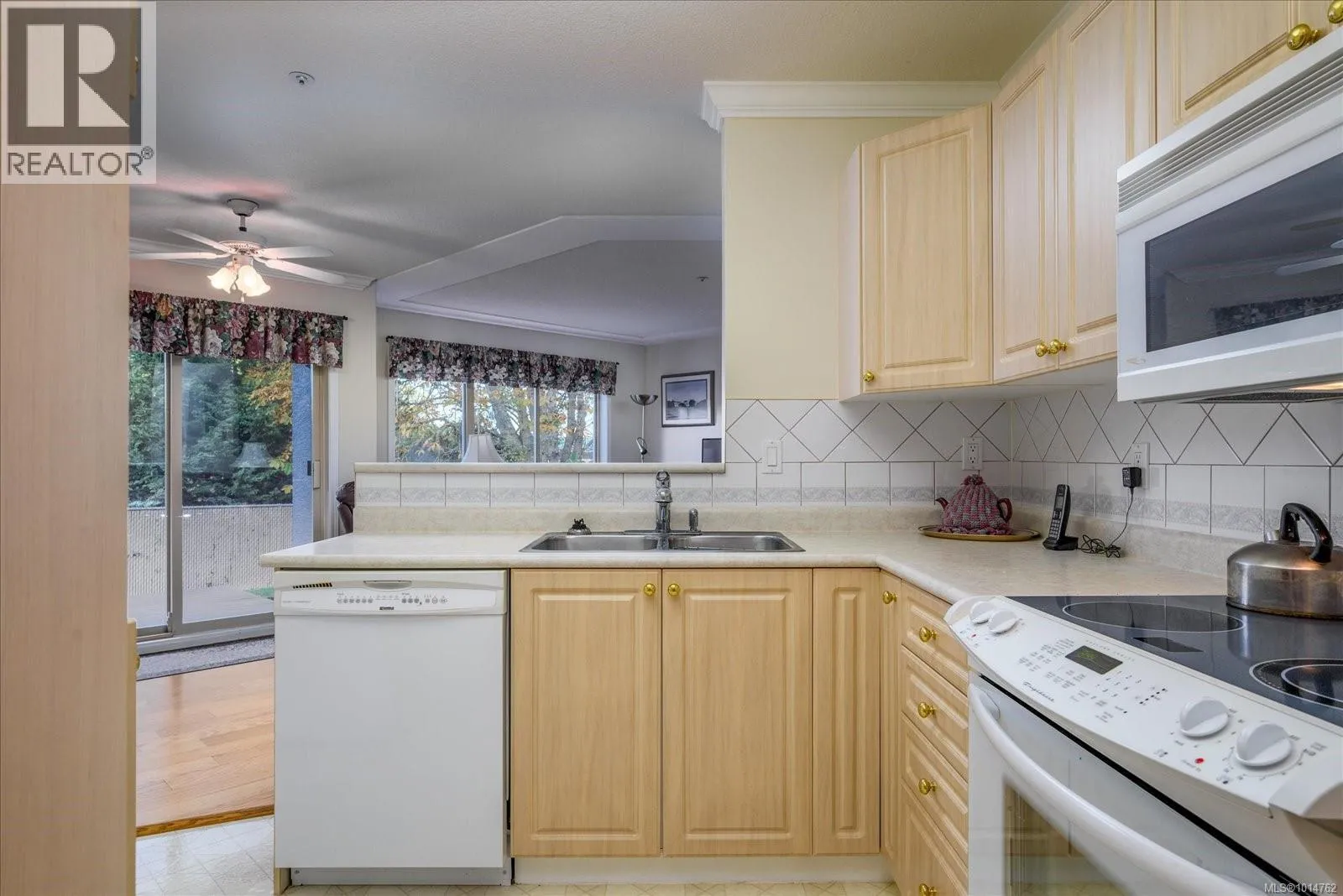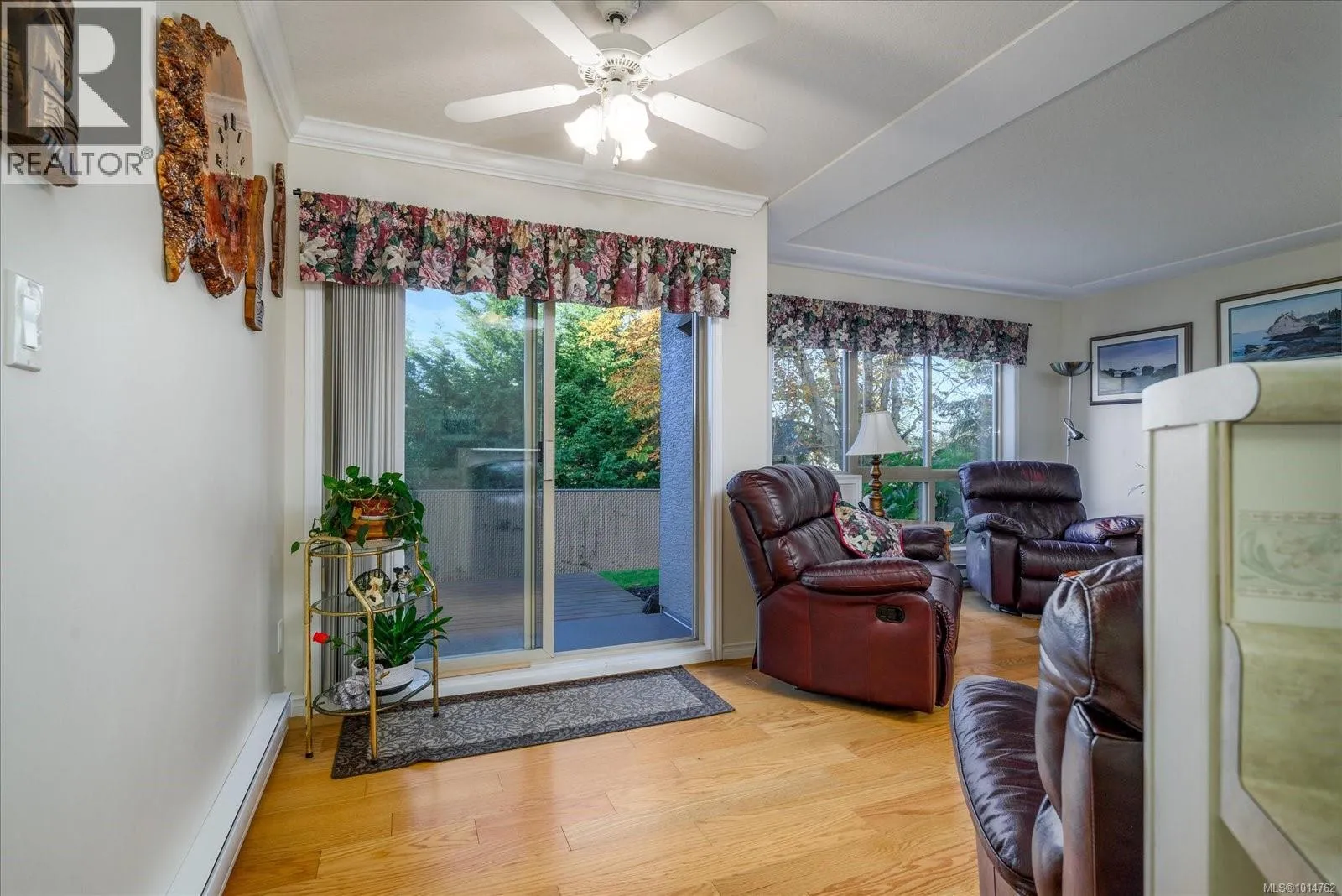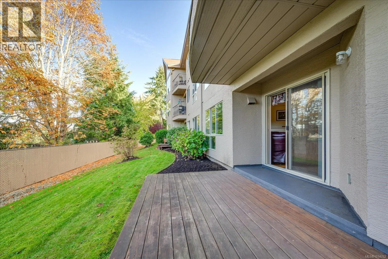 This ground-floor condo in Ashleigh Manor boasts two bedrooms plus a den and is truly captivating. With a spacious layout covering over 1430 square feet, it showcases a meticulously designed floor plan. The kitchen offers ample cupboard space, with glass doors opening up from your eating nook to your large private outdoor patio. The living room features large windows allowing lots of natural light & an electric fireplace plus if looking for a more formal dining experience, there's a separate dining area, adjacent to the kitchen/ lvg rm. The 20x11 Primary bedroom is accompanied by a huge walk-through closet that leads to an ensuite with a stand-up shower and soaker tub. The separate 12x11 laundry room provides enough space for a deep freezer plus additional storage. Included:1 secured Parking spot, storage room, community library, plus guest suite that can be reserved for out of town guests. Ashleigh Manor is a well run Strata & a Great Community which you will love. (id:27476)