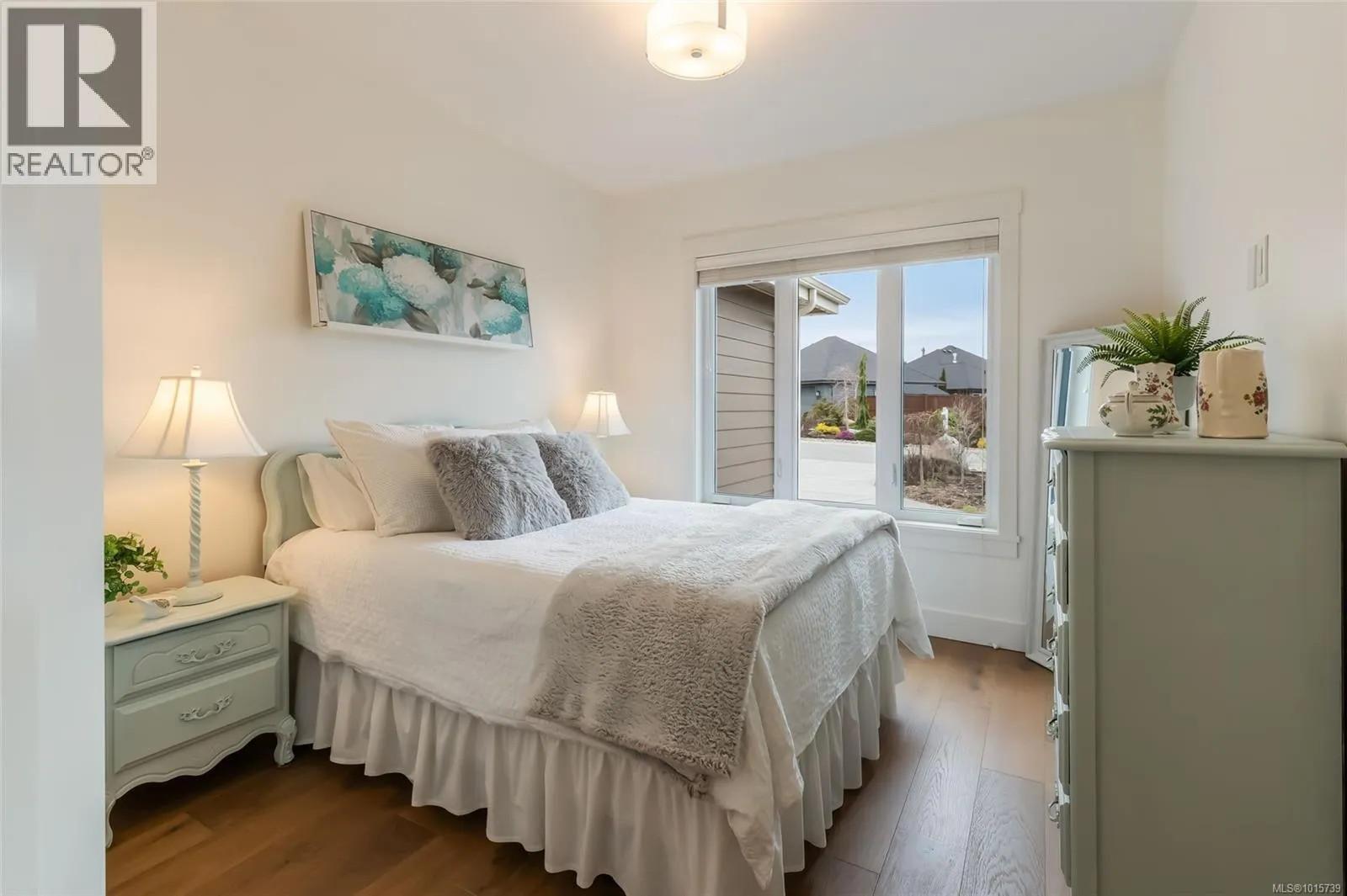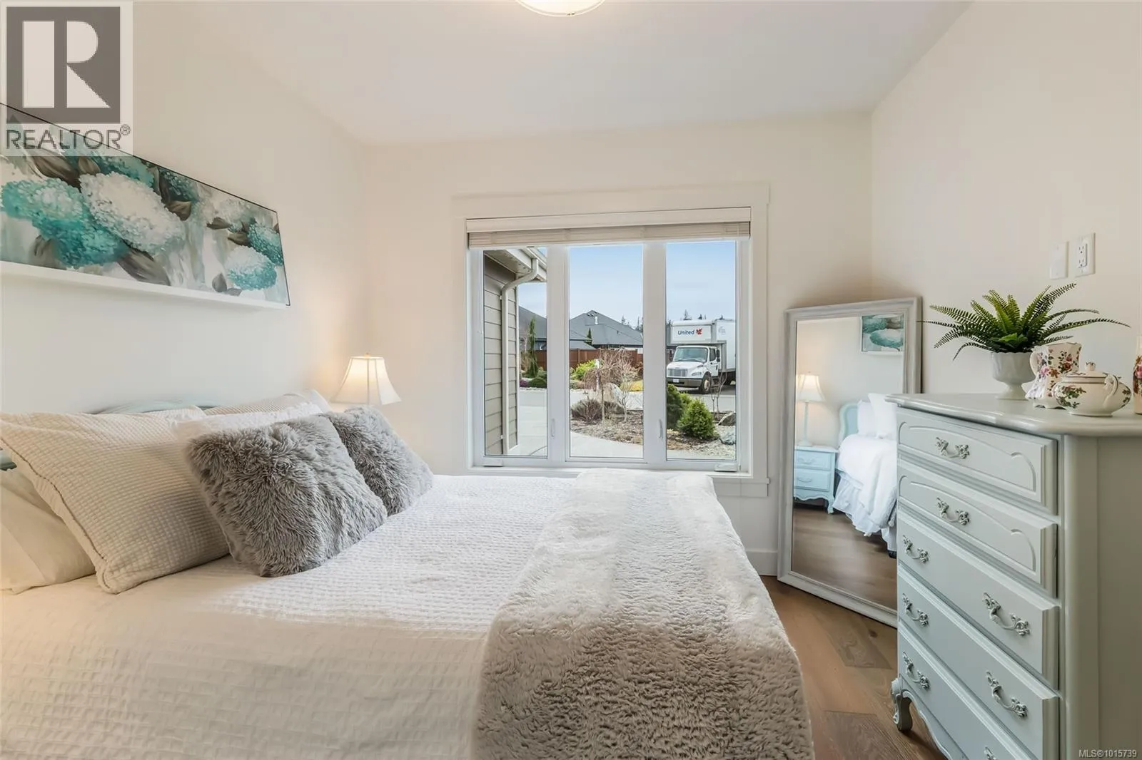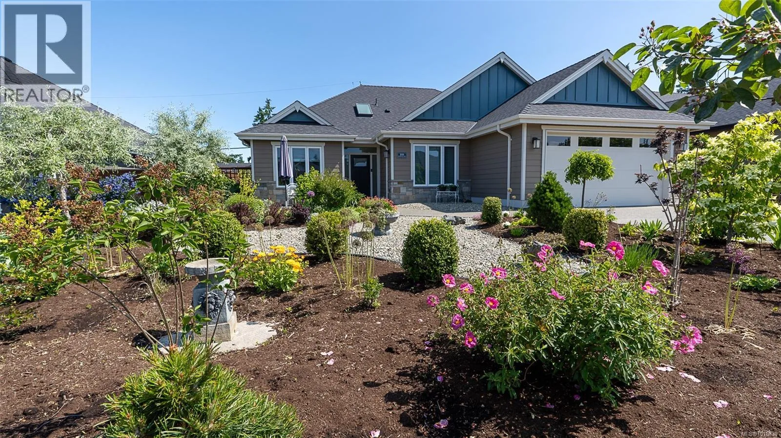 Welcome to your dream retreat in Mountain View Estates! This immaculate 3-bed, 2-bath executive rancher blends comfort, style, and tranquility. Bright and airy with vaulted ceilings, skylight, and oversized windows, the open-concept layout is perfect for relaxed living. The gourmet kitchen features quartz counters, stainless appliances, and a walk-in pantry. The spacious primary suite offers a spa-inspired ensuite with heated tile floors and walk-in closet. Enjoy sunny afternoons in the private south-facing courtyard or entertain in the beautifully landscaped backyard with covered deck, gardens, and fruit trees. Just minutes to Morningstar Golf, Wembley Mall, and beaches, you'll love the blend of community and nature. Extras include a double garage with attic storage, hot water on demand, central vac, and Gemstone Lighting for year-round curb appeal. Discover the ideal lifestyle with easy access to Parksville, Qualicum Beach, and all the beauty of Vancouver Island! (id:27476)