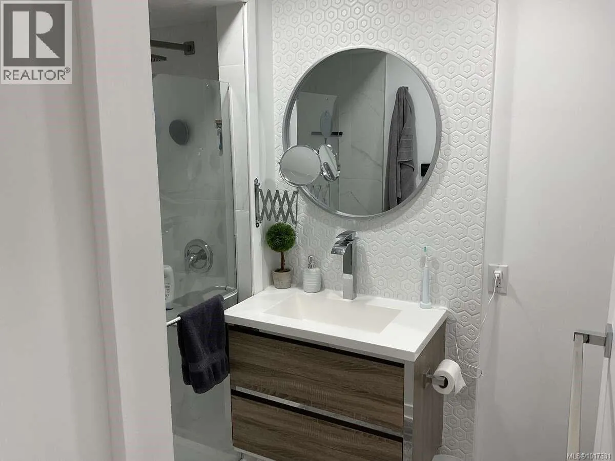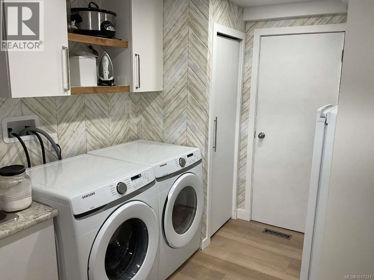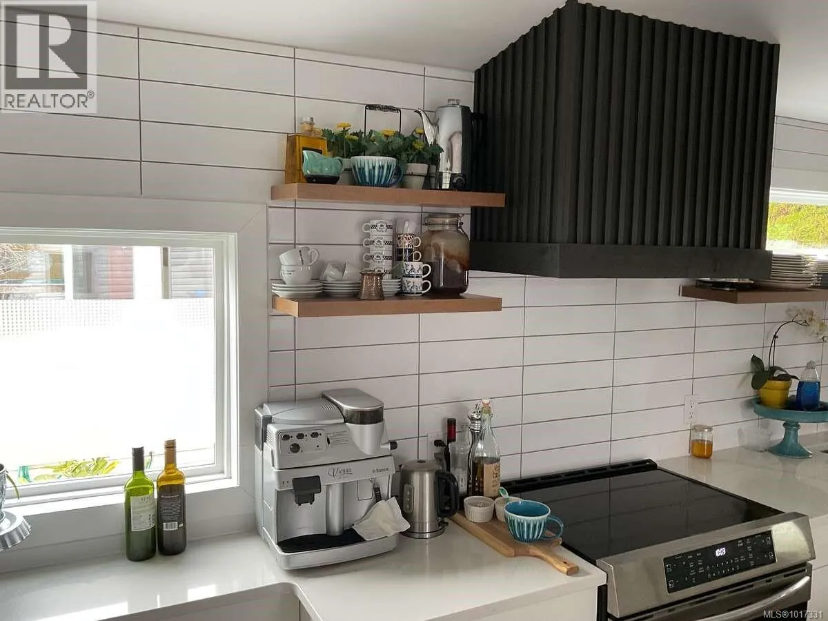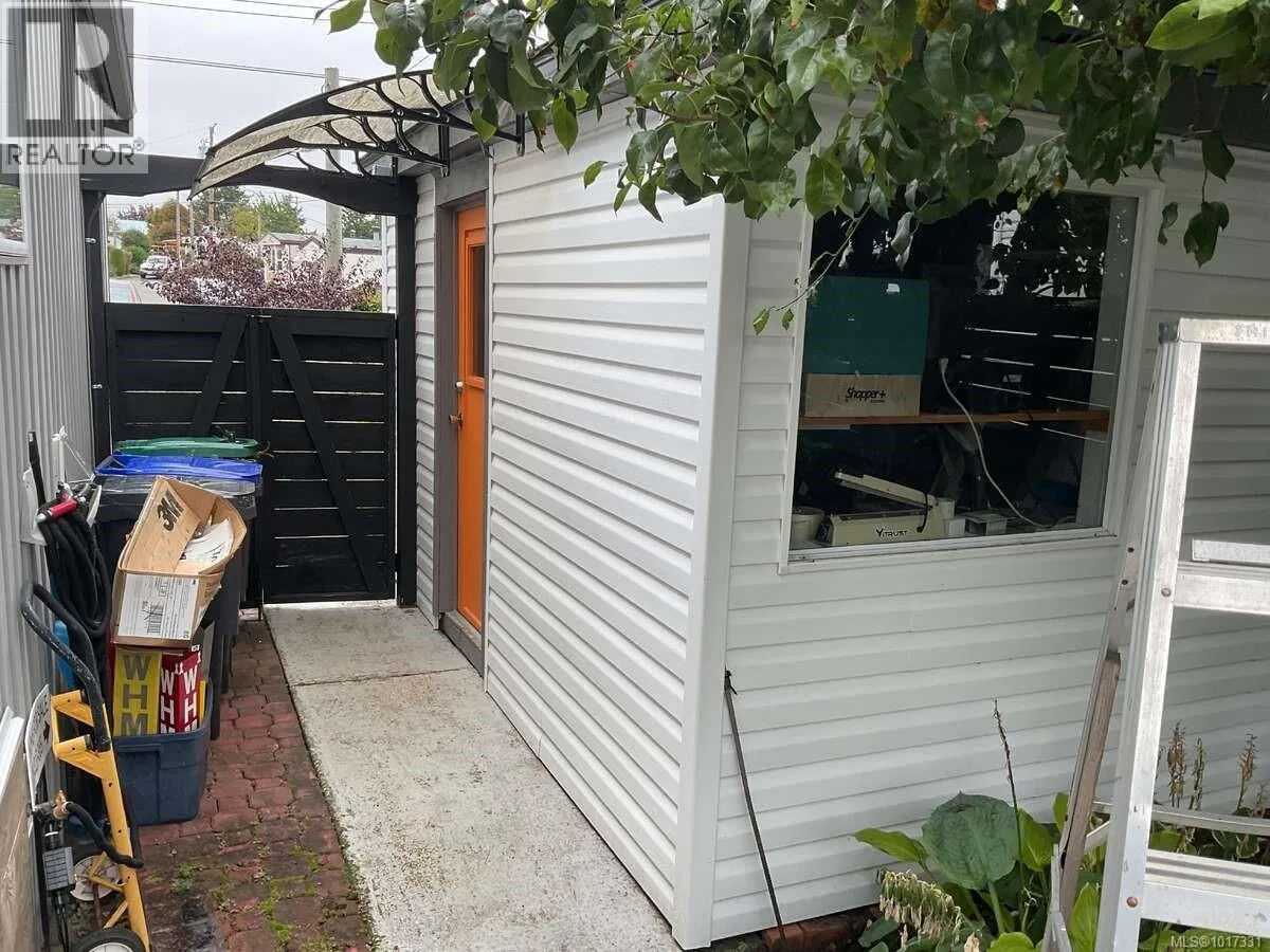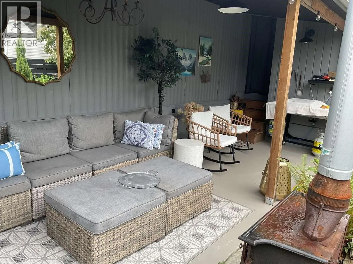 For more information, please click Brochure button. Turn-key 55+ manufactured home on its own land in Parksville, just a short walk to shopping, downtown, and the beach. This beautifully renovated bare-land strata (fee $42/month for private road and common area) offers effortless single-level living across ~1,100 sq ft with 2 bedrooms, 2 full bathrooms, and a separate laundry room, all on a full concrete slab foundation. The 4,300 sq ft manicured, fully fenced lot, move-in ready. A comprehensive interior/exterior upgrade means nothing left to do: new roof, siding, windows, all-new PEX plumbing, LED lighting throughout, and a heat pump for efficient heating and A/C with electric forced-air furnace backup. Inside, vinyl plank flooring delivers a seamless, low-maintenance finish, and the entire interior is finished in 5/8'' fire-resistant drywall. Highlights include a vaulted ceiling with LED pancake lights, a cedar ridge beam, custom up/down privacy blinds in the living room, an electric fireplace feature wall, and two new 3-pc bathrooms with heated tile floorsâone with a tub/shower and the other with a stand-up shower. The brand-new chefâs kitchen features Merit (plywood-constructed) cabinetry topped with quartz countertops, a double Fisher & Paykel fridge/freezer, Frigidaire induction/convection range, Bosch dishwasher, and a custom wood range hood. The laundry room includes a Samsung front-load washer & dryer plus a stand-up freezer. Outdoors, enjoy a private covered deck with an outdoor fireplace, a powered workshop and small garden shed, and a low-maintenance front yard with privacy screens. Silver Seal re-certified. Do not miss out! (id:27476)
