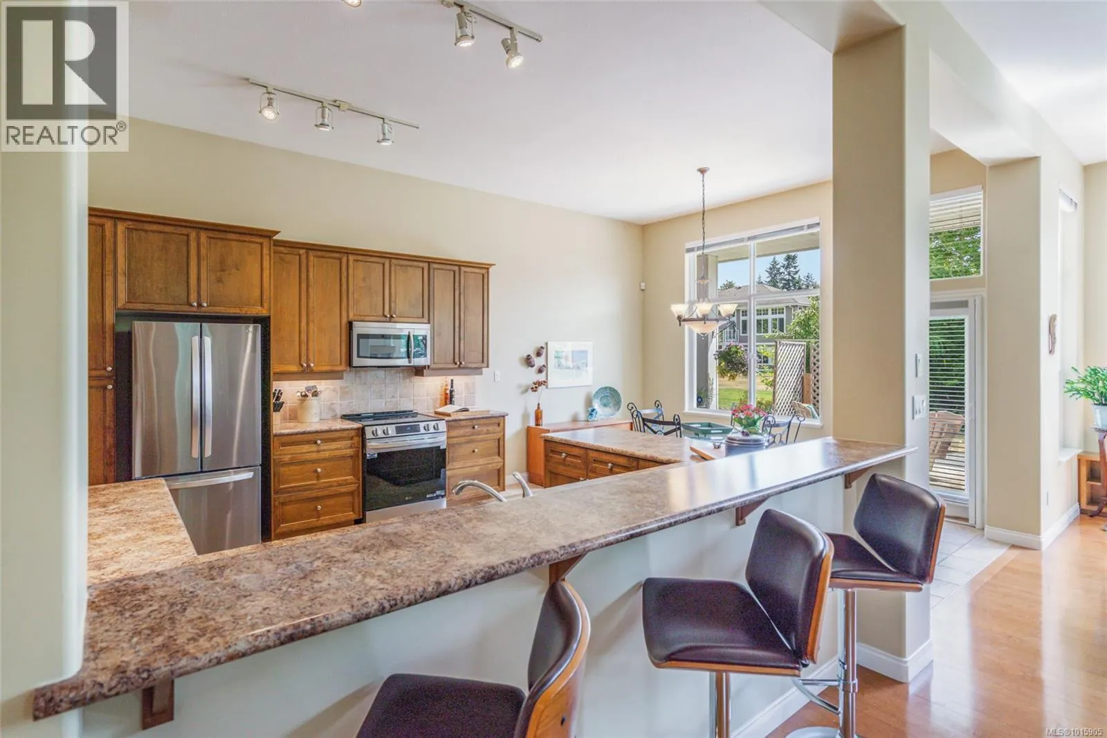 Fabulous Craig Bay Newcastle Model! Just five minutes from downtown Parksville, youâll find this bright and beautiful 2 Bed+Den/2 Bath âNewcastleâ Patio Home in Craig Bay just steps from the pond. This thoughtfully designed residence offers an expansive open-concept Great Room, a popular one-level layout, fine fixtures and finishing, great extra features including twin heat pumps, and a private, sun-soaked outdoor living spaceâperfectly tailored for relaxed island living just steps away from the beach and a multi-million-dollar Rec Facility with a swimming pool and tennis courts. A covered walkway and sitting porch sets a welcoming tone. Step through a front door with a transom window into a tiled foyer where flooring flows into an impressive Great Room with 11-ft ceilings, rich hardwood flooring, a wall-mounted heat pump, and a wall of windows bathing the space in natural light. The Living/Dining area boasts custom maple cabinetry, full-length under-window shelving, a built-in dining server, and a natural gas fireplace adding warmth and ambiance. At the heart of the home, the Deluxe Kitchen features maple cabinetry with under-mount lighting, abundant counter space, a tiered breakfast bar, and high-end stainless appls including an LG ThinQ range, Bosch dishwasher, and LG fridge. The adjacent Nook opens to a private south-facing patio with a covered BBQ area and a view over a greenbelt to a garden area and cedar privacy hedge. Whether you're savoring a quiet morning coffee, lounging on a restful afternoon, or enjoying an al fresco dinner, this tranquil oasis provides the perfect backdrop. The spacious Primary Suite offers a second heat pump, a walk-in closet, and a 5-piece ensuite with dual sinks, a glass shower, and a soaker tub. A Second Bedroom and 3-piece Bath form an ideal guest suite, plus thereâs a Den, a Laundry Room, and an attached Dbl Garage. Visit our website for more. (id:27476)