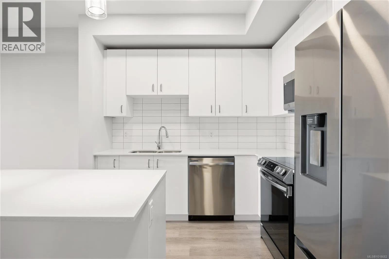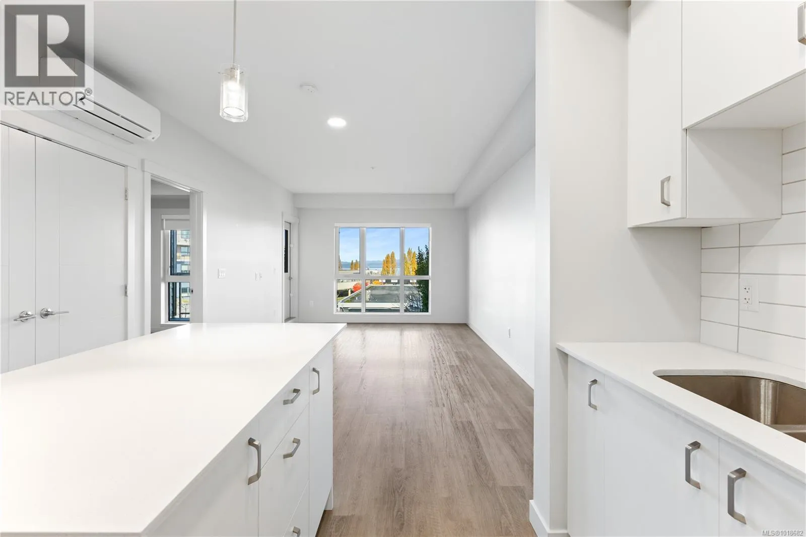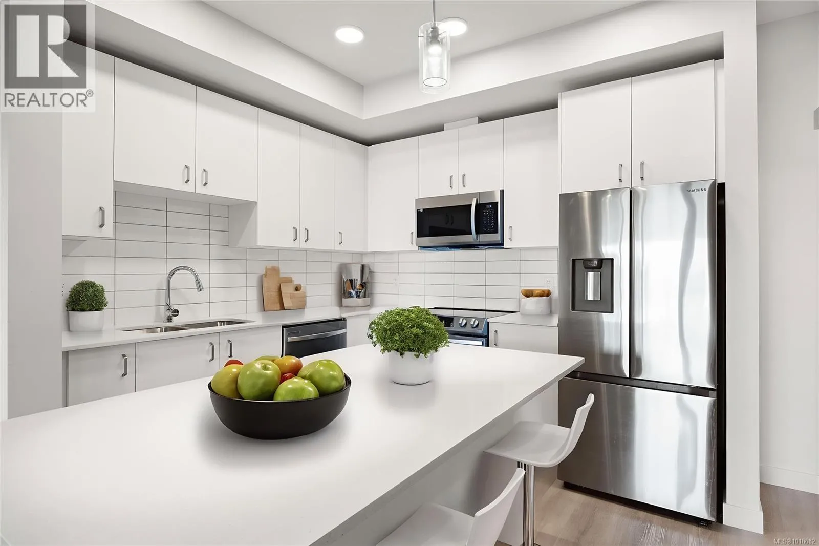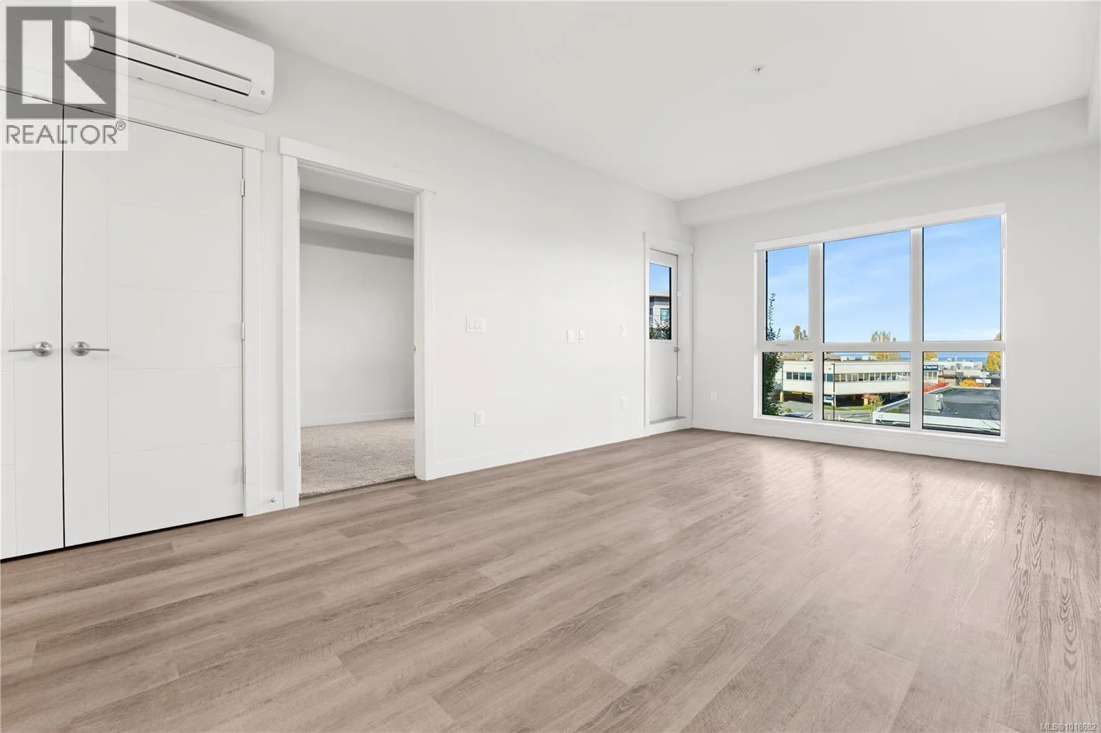 Welcome to Ocean Side Unit 209â120 Jensen Ave W, Parksville, BC V9P 0H6 â a beautifully designed residence in the modern, eco-friendly Mosaic complex (built in 2023). This bright and stylish condo captures the essence of coastal living with quality finishes, energy-efficient features, and a superb location near downtown and the beach. Step inside to discover a spacious, open-concept layout highlighted by 9-foot ceilings, triple-pane windows, and luxury vinyl plank flooring. The kitchen is a chefâs delight with quartz countertops, undermount sink, subway tile backsplash, and a kitchen island perfect for dining or entertaining. Enjoy year-round comfort with two wall-mounted A/C units â one in the main living area and one in the bedroom. A unique feature of this home is the water-leak sensor system in the kitchen and washroom, paired with an automatic main-line shut-off valve, offering peace of mind and protection from future leaks. The building offers elevator access for wheelchair convenience, a dedicated storage unit, surface parking stall, and EV-charging capability. Pet-friendly - 2 Dogs or 2 Cats Allowed. and rental-friendly, Mosaic promotes sustainable, low-maintenance living with energy recovery ventilation, hot-water-on-demand, and efficient heat pump systems. Builder Warranty available. Located just steps from shops, cafés, restaurants, and the Parksville beach, this home blends coastal charm with modern convenience â ideal for downsizers, investors, or anyone seeking a relaxed island lifestyle. (id:27476)