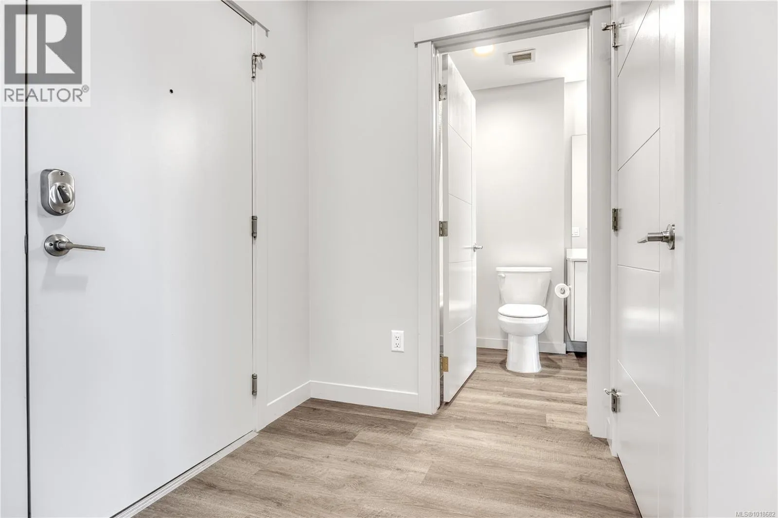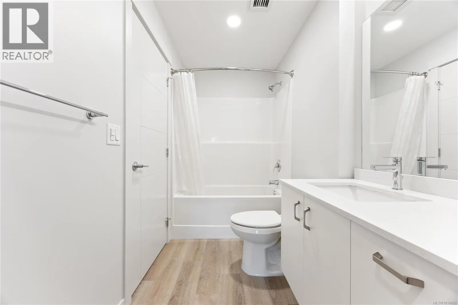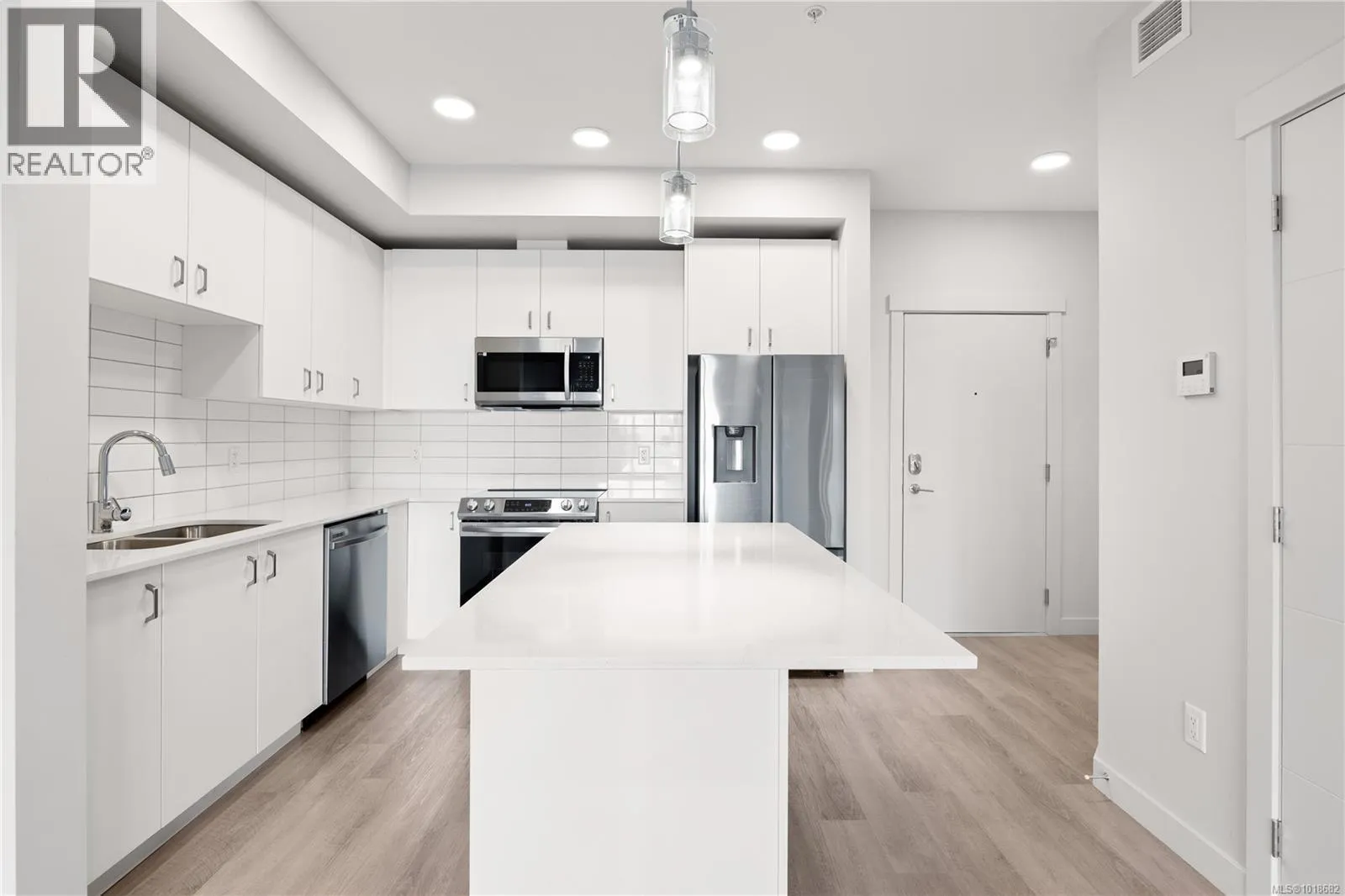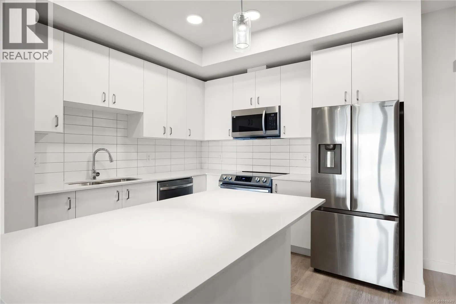 Welcome to Ocean Side Unit 209â120 Jensen Ave W, Parksville, BC V9P 0H6 â a beautifully designed residence in the modern, eco-friendly Mosaic complex (built in 2023). This bright and stylish condo captures the essence of coastal living with quality finishes, energy-efficient features, and a superb location near downtown and the beach. Step inside to discover a spacious, open-concept layout highlighted by 9-foot ceilings, triple-pane windows, and luxury vinyl plank flooring. The kitchen is a chefâs delight with quartz countertops, undermount sink, subway tile backsplash, and a kitchen island perfect for dining or entertaining. Enjoy year-round comfort with two wall-mounted A/C units â one in the main living area and one in the bedroom. A unique feature of this home is the water-leak sensor system in the kitchen and washroom, paired with an automatic main-line shut-off valve, offering peace of mind and protection from future leaks. The building offers elevator access for wheelchair convenience, a dedicated storage unit, surface parking stall, and EV-charging capability. Pet-friendly - 2 Dogs or 2 Cats Allowed. and rental-friendly, Mosaic promotes sustainable, low-maintenance living with energy recovery ventilation, hot-water-on-demand, and efficient heat pump systems. Builder Warranty available. Located just steps from shops, cafés, restaurants, and the Parksville beach, this home blends coastal charm with modern convenience â ideal for downsizers, investors, or anyone seeking a relaxed island lifestyle. (id:27476)