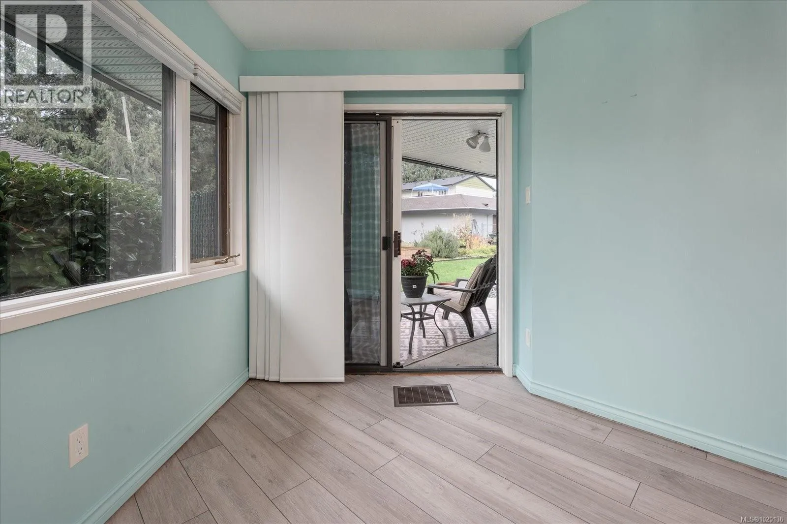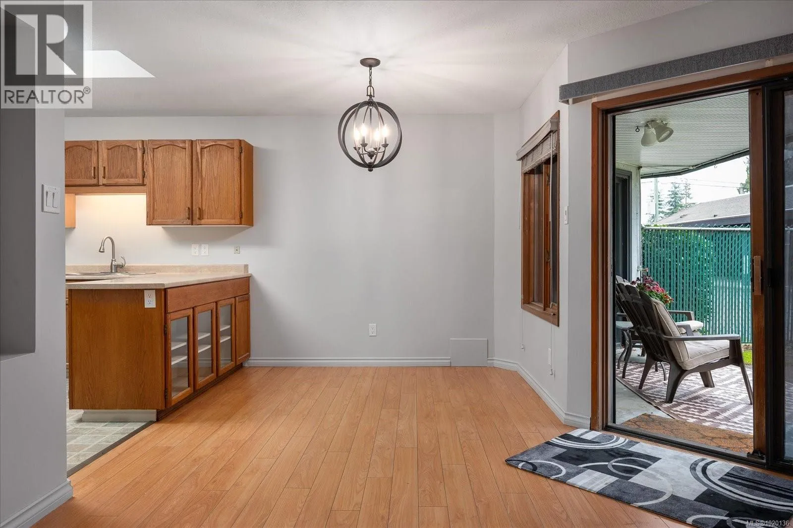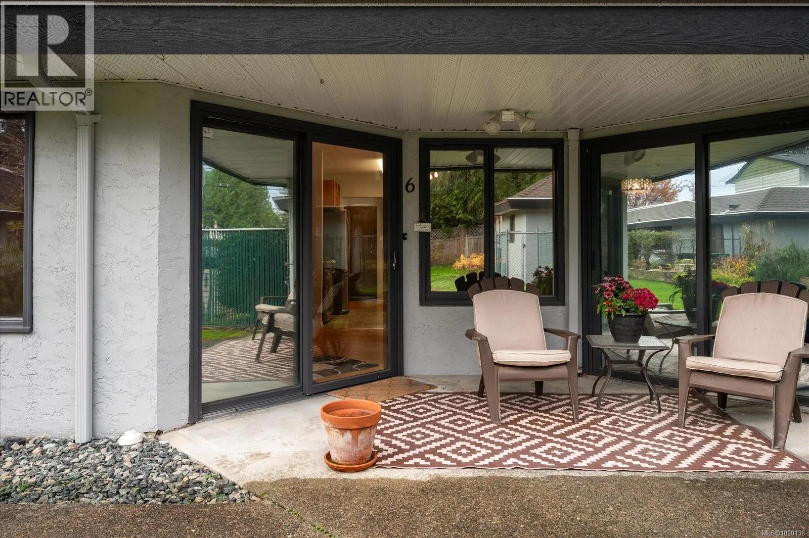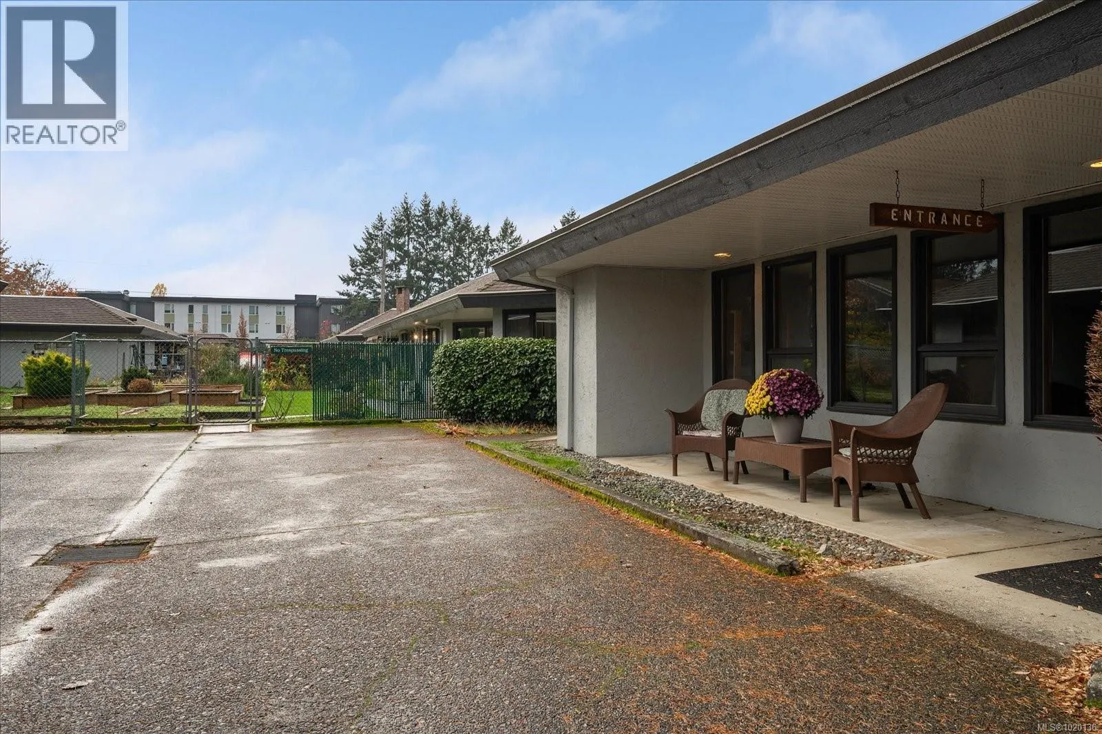 Nicely updated 1-bedroom plus den, 2-bath patio home in The Pioneer Manorâa welcoming, pet-friendly 55+ community in the heart of Parksville. Just a short stroll to shopping, the beach, and all essential amenities, this charming home offers convenience and comfort in equal measure. The spacious living and dining area opens to a private south-facing patio with an overhang, ideal for relaxing or entertaining. A bright breakfast nook complements the well-appointed kitchen featuring stainless steel appliances and solid wood cabinetry. Five skylights fill the home with natural light, creating an inviting atmosphere. The generous primary suite includes a full ensuite with washing machine and abundant closet space. A separate patio door from the bedroom leads out to the patio to enjoy your morning coffee. Recent updates include fresh paint, stylish window coverings, a new water heater, and heat pump for efficient heating and cooling. The complex provides covered parking, a workshop, greenhouse, guest suite ($20/night), community rooms, and garden plotsâperfect for enjoying the Island lifestyle. (id:27476)