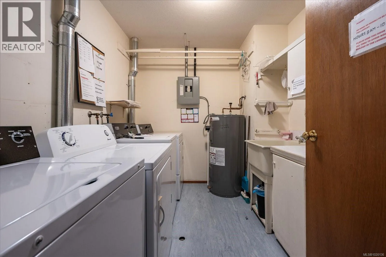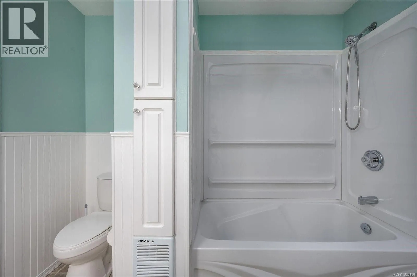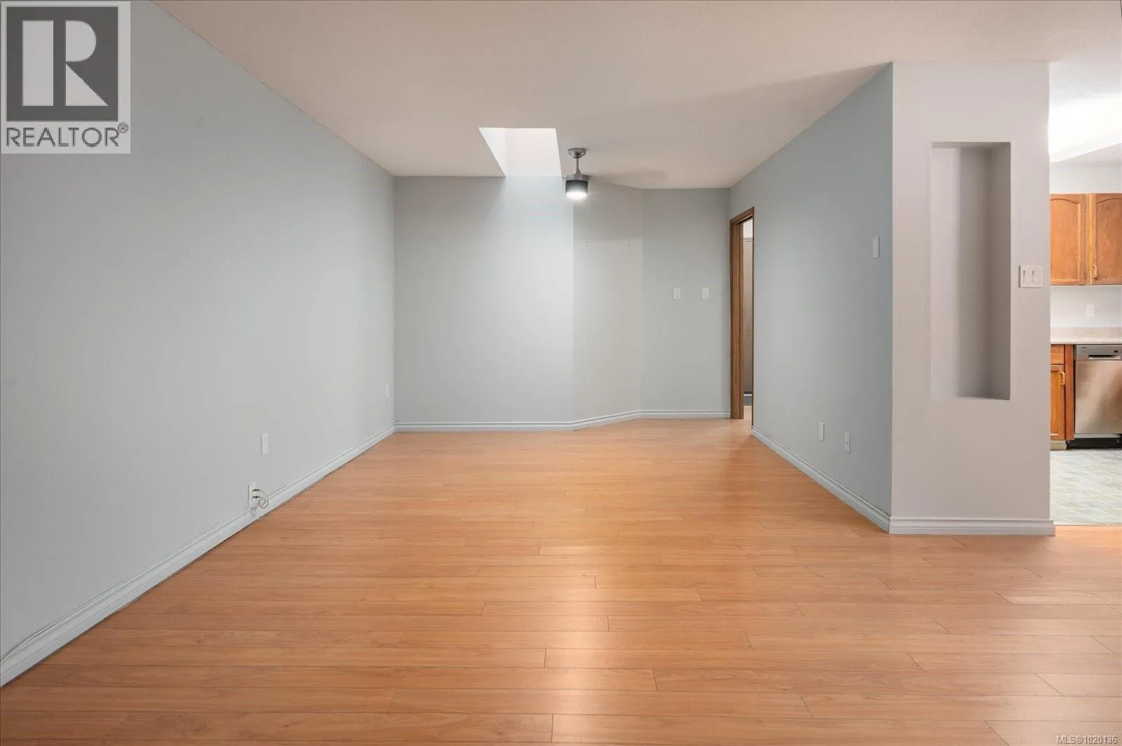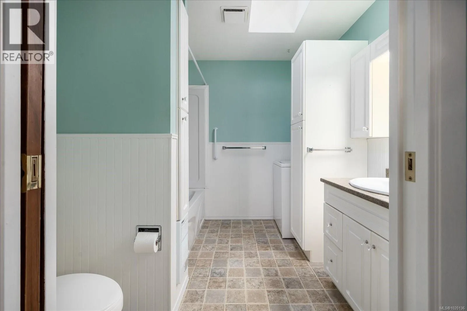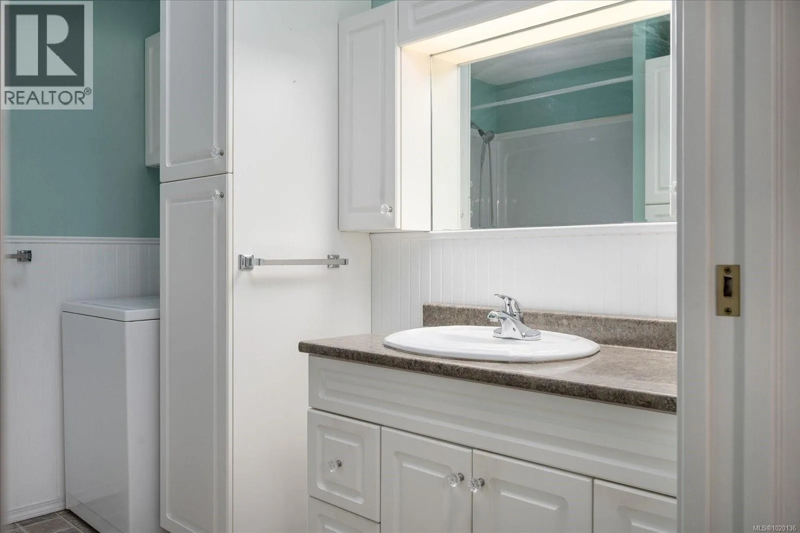 Nicely updated 1-bedroom plus den, 2-bath patio home in The Pioneer Manorâa welcoming, pet-friendly 55+ community in the heart of Parksville. Just a short stroll to shopping, the beach, and all essential amenities, this charming home offers convenience and comfort in equal measure. The spacious living and dining area opens to a private south-facing patio with an overhang, ideal for relaxing or entertaining. A bright breakfast nook complements the well-appointed kitchen featuring stainless steel appliances and solid wood cabinetry. Five skylights fill the home with natural light, creating an inviting atmosphere. The generous primary suite includes a full ensuite with washing machine and abundant closet space. A separate patio door from the bedroom leads out to the patio to enjoy your morning coffee. Recent updates include fresh paint, stylish window coverings, a new water heater, and heat pump for efficient heating and cooling. The complex provides covered parking, a workshop, greenhouse, guest suite ($20/night), community rooms, and garden plotsâperfect for enjoying the Island lifestyle. (id:27476)