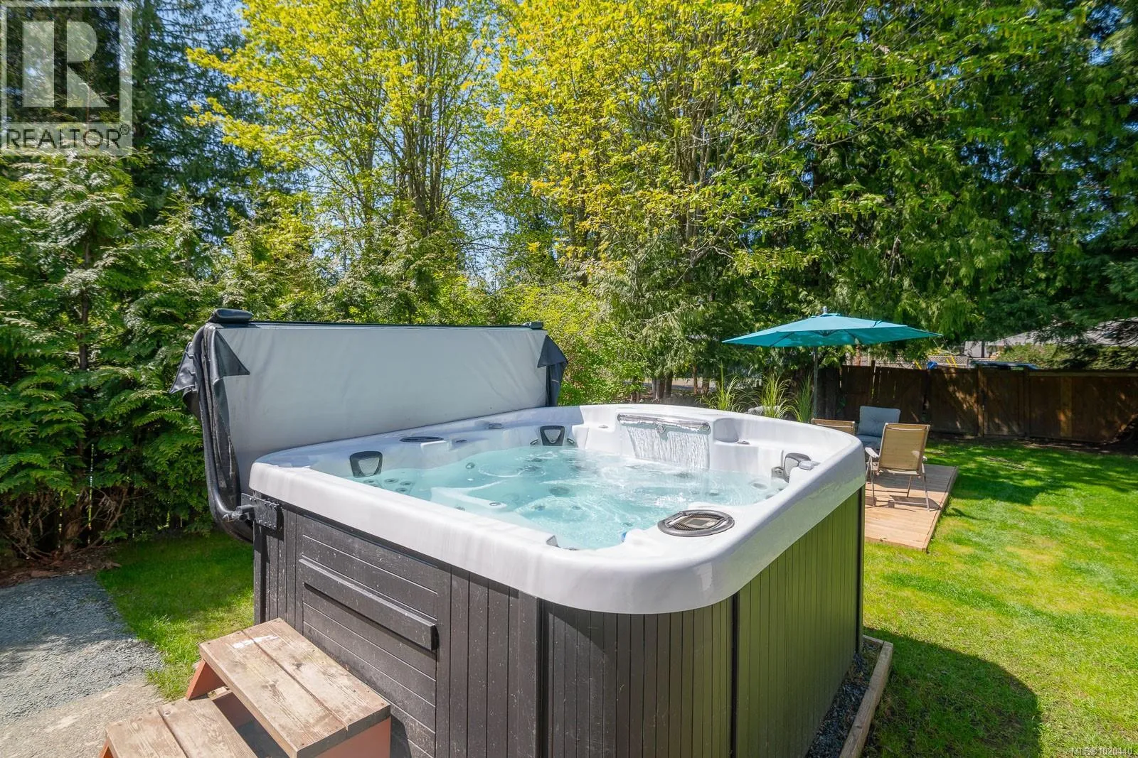 Discover the unparalleled charm of San Pareilâone of Vancouver Islandâs most coveted beachside communities. Perfectly positioned between serene sandy shores, the majestic Englishman River, and the iconic trails of Rathtrevor Provincial Park, this vibrant neighborhood invites you to embrace the outdoors. Spend your days swimming in the ocean or river, hiking scenic forest trails, birdwatching in the nearby estuary, or simply soaking in spectacular sunsets from the beach. While surrounded by nature, you're just five minutes from the shops, dining, and amenities of downtown Parksville, offering the best of both worlds. This versatile, updated property features two separate living spaces, ideal for multi-generational families or income potential. The upper level offers three bedrooms and two bathrooms, including a private ensuite in the spacious primary suite. The sunny backyard is perfect for entertaining, complete with a Duradek sundeck, patio, and a hot tub set among mature landscapingâincluding stately cedars, maples, and a striking sequoia tree on a private corner lot. Downstairs, the fully self-contained two-bedroom suite has its own driveway and entry. It features a large modern kitchen, in-suite laundry, and its own private outdoor retreat with artificial turf, a tiki bar, and a second hot tubâoffering laid-back island vibes year-round. Other highlights include hot water on demand, heated tile floors in the upstairs bathrooms, and stylish upgrades throughout. The flexible floorplan allows the home to be easily converted back to a single-family layout if desired. This is your chance to own a true slice of paradise in one of Parksvilleâs most beloved coastal communities. Donât miss this rare opportunity! (id:27476)