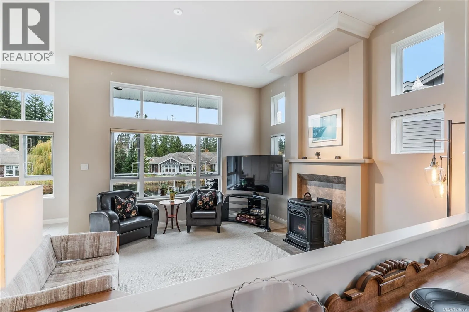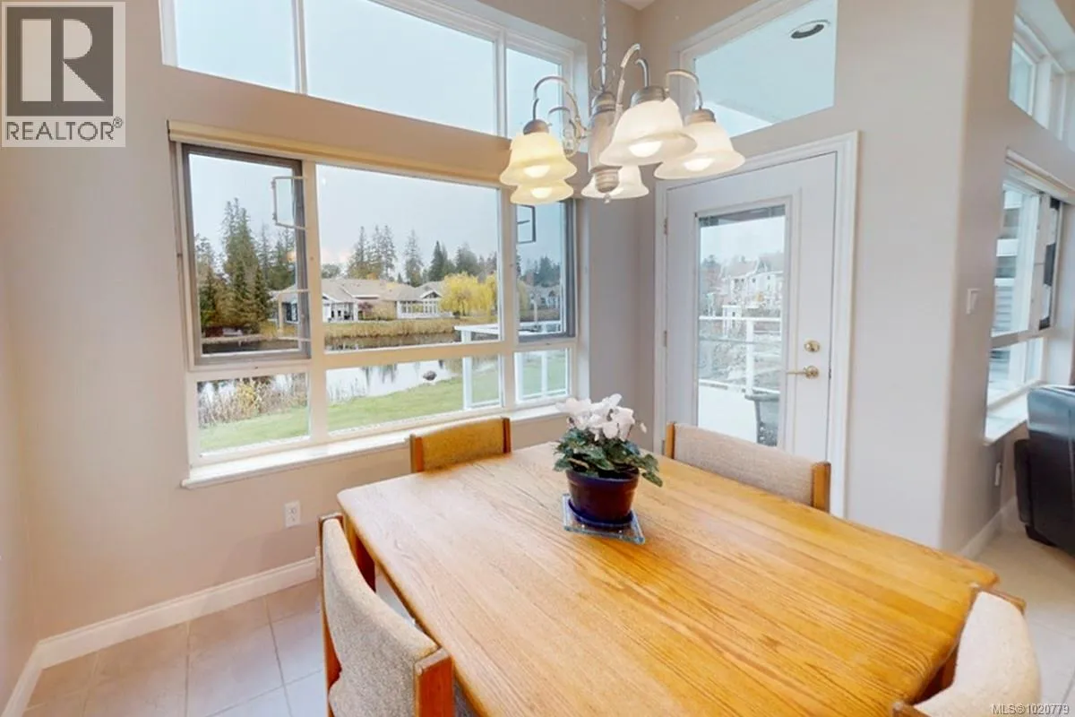 Bright and Beautiful Craig Bay 'Bowen Model' on the Pond! Enjoy a luxurious resort-like lifestyle with swimming, tennis, and peaceful sunset strolls along the shore from this charming 3 Bed/3 Bath Town Home on the pond in Craig Bayâan upscale seaside village just 5 minutes from Parksville. Enjoy main-level living plus a fully finished walk-out lower level, open-plan spaces for formal and casual living, 9 and 11-foot ceilings, two gas fireplaces plus a gas stove, superb outdoor living space, and expansive windows that frame picturesque pond views. From the southwest-facing front patio, step into a tiled foyer and a spacious open-concept Living/Dining Room with hardwood floorsâperfect for elegant entertaining. A picture window fills the Living Room with sunshine, and a natural gas fireplace adds cozy comfort. A half-wall separates this area from the Kitchen/Family Room, preserving an open, airy feel. The Family Room features windows overlooking the pond and a brand-new cast-iron natural gas stove. The Deluxe Kitchen boasts shaker cabinetry, oversized pantry/storage cupboards, wrap-around quartz counters, a garburator, and quality stainless appliances incl a newer LG fridge. Enjoy quick meals in the Breakfast Nook or step onto the deck for outdoor dining with panoramic greenbelt and pond views. The large Primary Suite offers a walk-in closet and a 5-piece ensuite with quartz vanity, dual sinks, a glass shower, and a soaker tub. A 2-piece Powder Room, a Laundry Room with newer LG washer/dryer, and access to the Double Garage complete the main level. Downstairs, French doors open to a large Office/Den/Family Room with a gas fireplace and Wet Bar, plus access to a covered patio. A Media Room/Bedroom, a Guest Bedroom with cheater ensuite to a 4-piece Bath, and a Storage Room complete this level. Close to marinas, parks, golf, and only 20 mins to North Nanaimo. Visit our website for more. (id:27476)