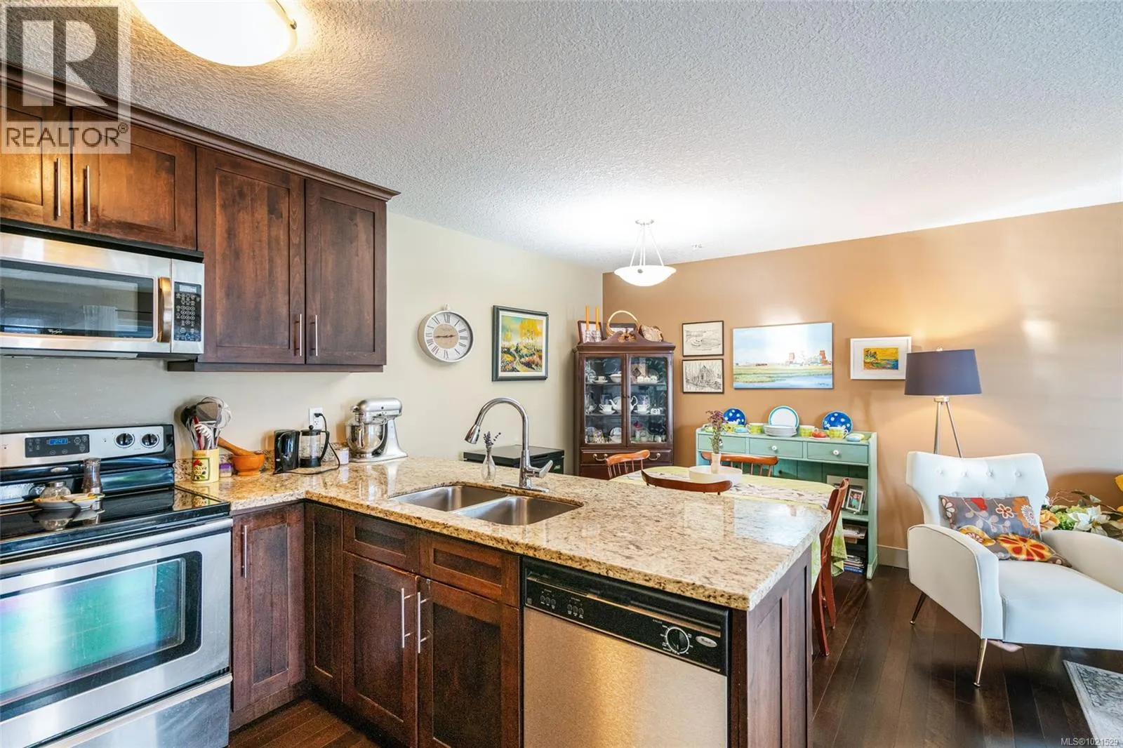 Welcome home to the Avista! This bright 991 sq. ft. two-bedroom condo is perfect for retirees, young professionals, or investors. Itâs on the bus route and a short walk to shops, cafés, schools, parks, and the beach. The well-maintained building offers secure access, an elevator, a designated parking spot, visitor parking, and a storage locker. A long-term, month to month tenant is already in place. Inside, enjoy hardwood floors, an open-concept layout, and a well-appointed kitchen with quality cabinetry, granite counters, and full appliances. Large windows light the living space, complemented by a cozy gas fireplace and a spacious covered deck off the living room. In-suite laundry adds convenience. The primary suite includes dual closets and a 4-piece ensuite, while the second bedroom sits near a 3-piece bathâgreat for guests. Close to Parksville and Qualicum Beach amenities, this home offers outstanding value in a desirable Vancouver Island location. (id:27476)