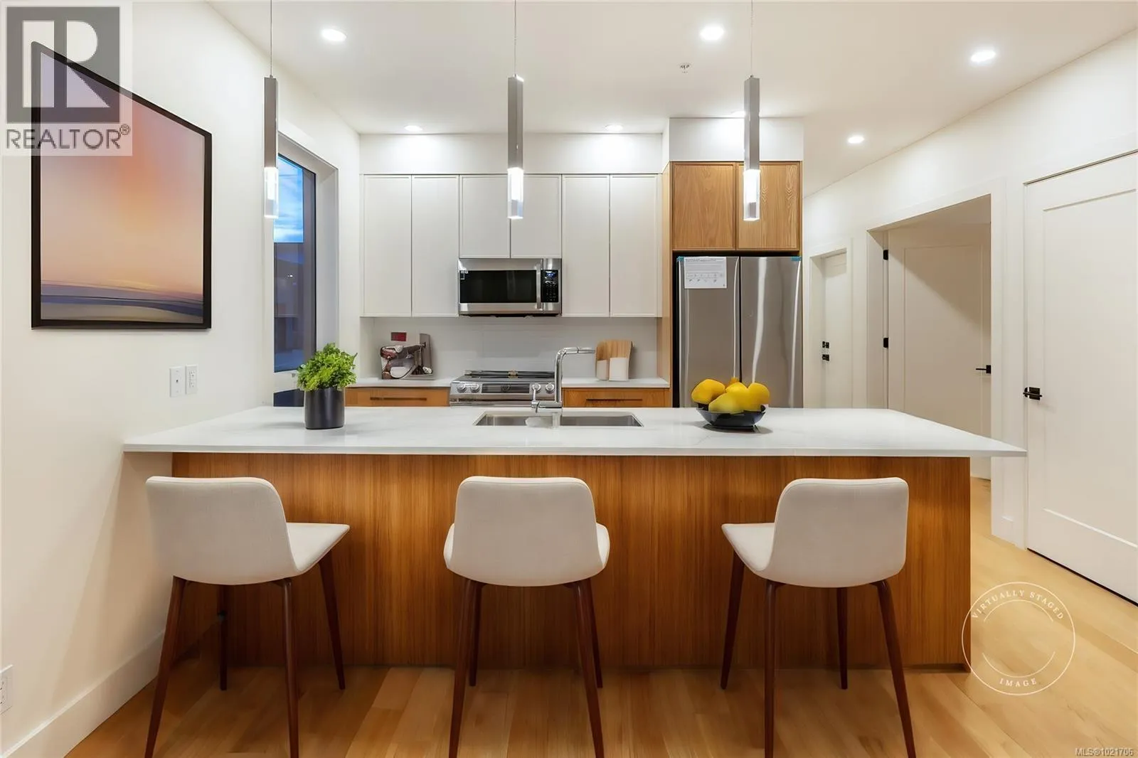 Welcome to ''DUO'' â a luxury development in the heart of town within blocks of shopping, amenities, the boardwalk and Parksville's sandy beach! DUO Suite #116 is a bright 2 Bed/2 Bath Patio Home with a Den and two patios. This Contemporary Home offers sophisticated finishing, spacious rooms for house size furnishings, energy star appls, and lovely outdoor living spaces. The modern Kitchen features quartz CTs & Wi-Fi-enabled stainless appls, the Baths boast quartz-topped vanities & big mirrors with LED lighting, and the ensuite has in-floor heating. A glass entry door with a keyless lock welcomes you into a spacious foyer, where eng hardwood flooring flows into an open plan Kitchen/Living/Dining Room with 9' OH ceilings. The Living/Dining Room features a nat gas FP flanked by BI cabinetry, and a door to patio with sunny SW exposure. The exceptional Chef's Kitchen boasts, quartz CTs, a breakfast bar topped with Cambria quartz, & top-quality stainless appls. Tucked away on one side of the home is a Primary Bedroom Suite with a walk-in closet, a 4 pc ensuite, and a door to a west-facing second patio, the opposite end of the home hosts a 2nd Bedroom with a large closet and a 3 pc ensuite. Completing the layout is a Den/Office and a laundry closet. This premium DUO home boasts hot water on-demand, an OS Single Garage (pre-wired for EV charger), a heat pump, and more. Two dogs or cats allowed. A Base Window Covering/Blinds Package is included. Visit our website for more. (id:27476)
