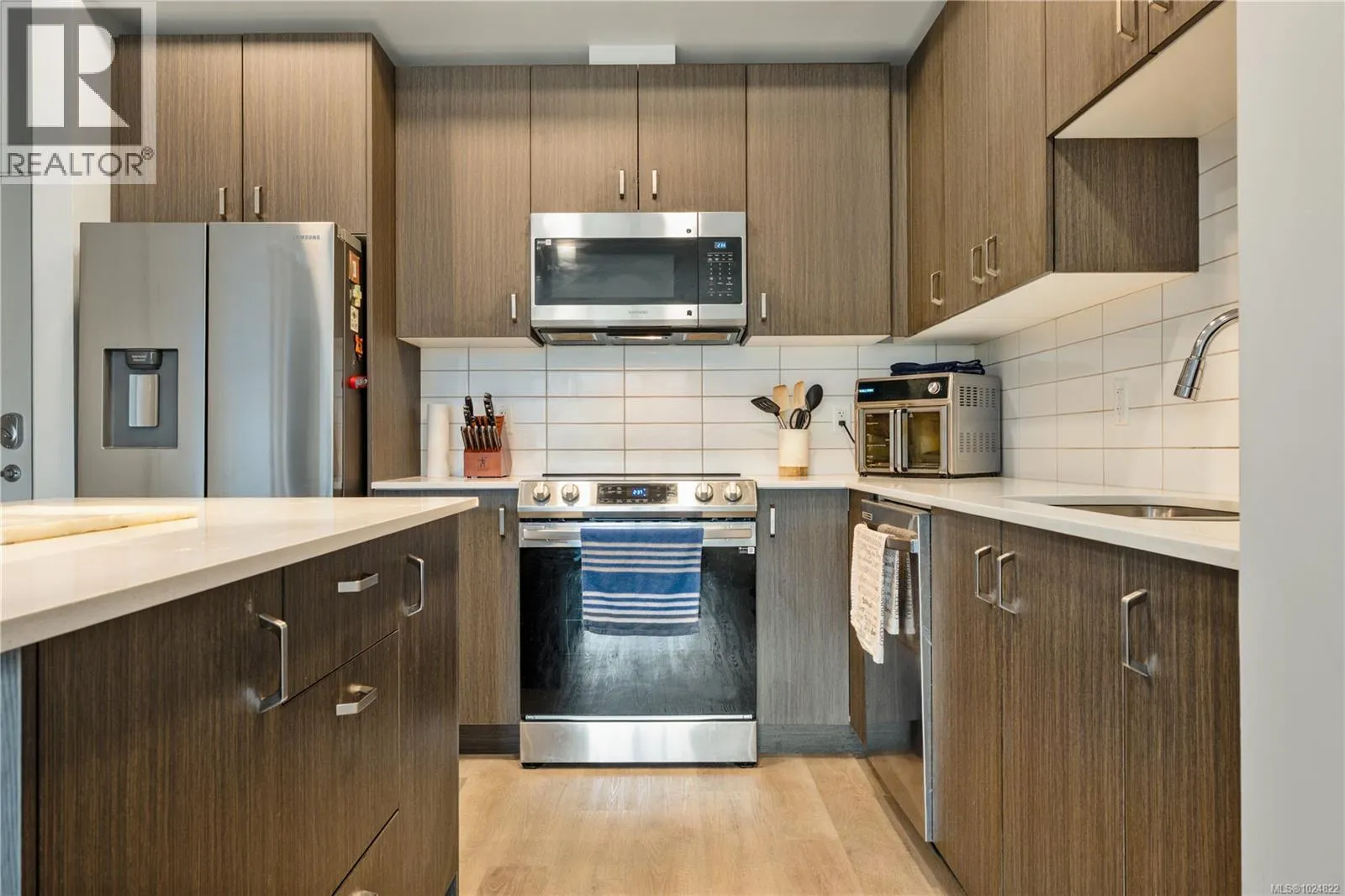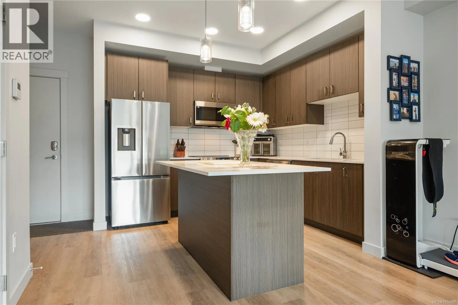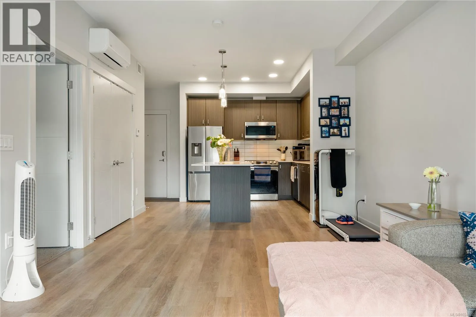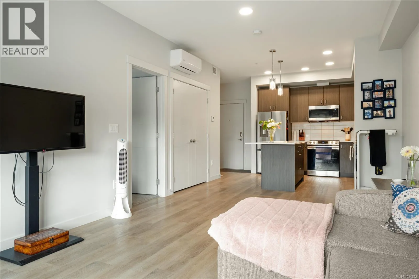 Welcome to Mosaic, Parksvilleâs newest award-winning, eco-friendly, modern contemporary building. This stylish 1 bed, 1 bath unit offers 675 sqft of efficient, high-end living in the heart of one of Vancouver Islandâs most desirable communities. Enjoy triple-pane windows, a heat pump for year-round comfort, energy recovery ventilation, sleek modern finishings, and thoughtful design throughout. Enjoy quartz countertops, soft-close cabinetry, and vinyl plank flooring. Pets and rentals are allowed, making this a flexible investment or perfect home. Includes storage and parking. Located just steps to shops, restaurants, and world-class beachesâlive where you vacation! Measurements are approximate; please verify if important. (id:27476)