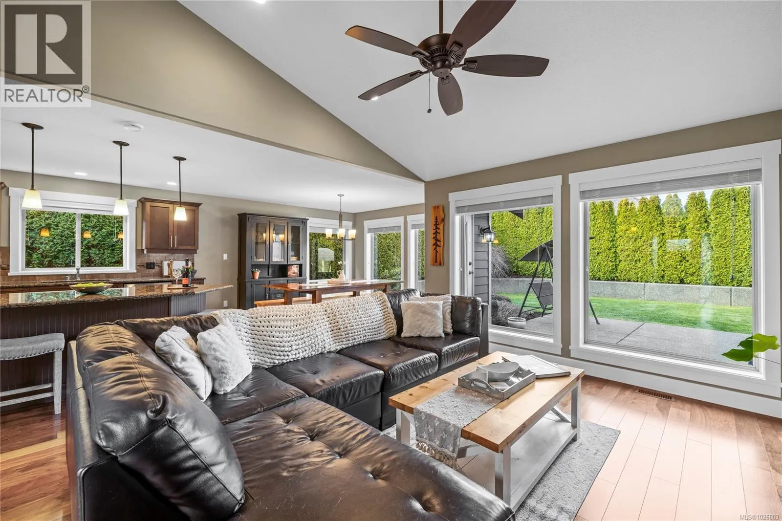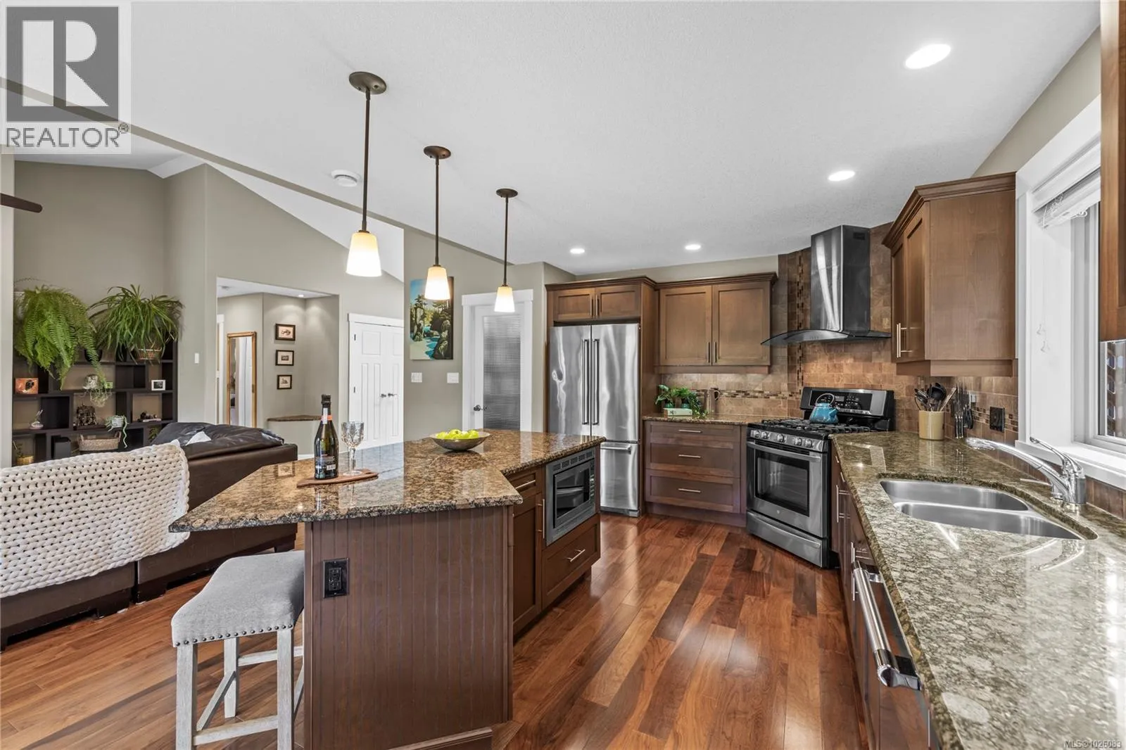 OPEN HOUSE Sat Feb 21 @ 12-3 pm. Hosted by Jody Moore. Rare 4 Bedroom Windward Rancher in Parksville! Be sure to view this spacious and bright Executive Rancher offering 1840 sqft of bright living space on a nicely landscaped 0.16-acre level lot. Meticulously cared for, this charming home boasts stylish fixtures and quality finishing throughout, skylights and oversized windows, ample storage, great extra features, and two well-appointed Baths. Thereâs also a large, sunny patio and a private, fully fenced backyard with a veggie garden, a Double Garage, and RV parking. All of this is set in a prime location on a quiet cul-de-sac in the desirable âMaple Glenâ neighborhood, just a short walk to schools, downtown shopping, the sandy beach, and the oceanfront boardwalk. A front door with glass insert and frosted sidelights opens to a skylighted foyer with tile flooring. Gleaming hardwood flows into a spacious Great Room with Kitchen, Dining, and Living Areas beneath an overheight vaulted ceiling. Floor-to-ceiling windows flood the space with light and connect seamlessly to the private backyard. The Living Roomâs 12-ft vaulted ceiling enhances openness, complemented by a cozy gas fireplace and ceiling fan. The Deluxe Island Kitchen boasts shaker-style cabinetry, granite counters, a walk-in pantry, and stainless appliances, including a Thermador dishwasher, KitchenAid fridge, and LG gas range with hood vent. A breakfast bar and dining nook offer casual dining, or step outside to the west-facing patio with sauna, BBQ space, garden shed, veggie garden, and fenced yard. The Primary Suite features an overheight trayed ceiling and a skylighted 5-piece ensuite with dual sinks, soaker tub, and shower. Three additional Bedrooms, including one with cheater-ensuite access, plus a Laundry with LG washer/dryer and access to the Double Garage complete the home. Great extra features, visit our website for more info. (id:27476)