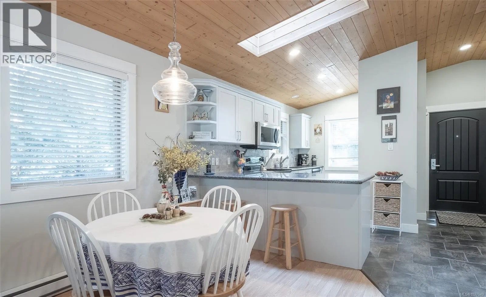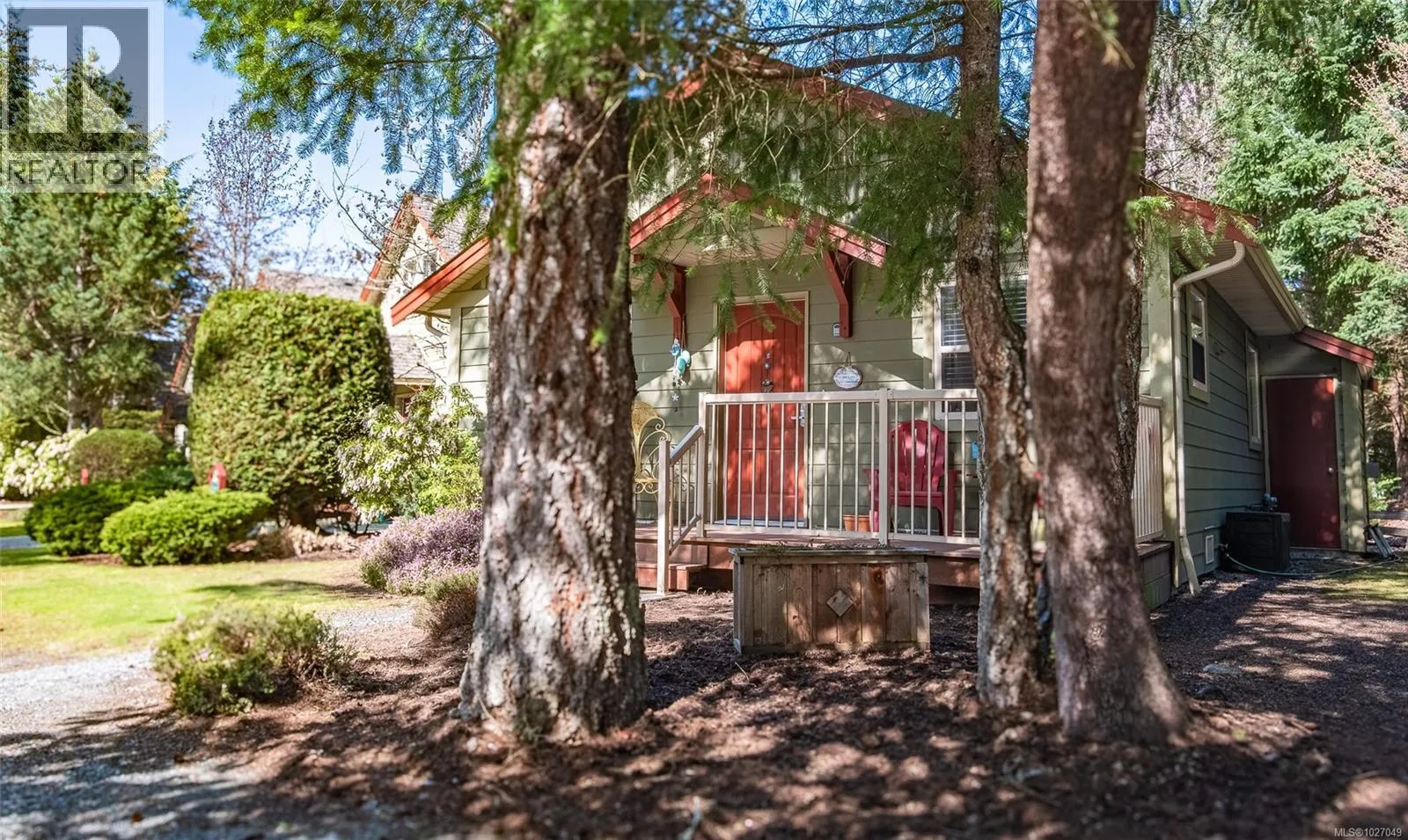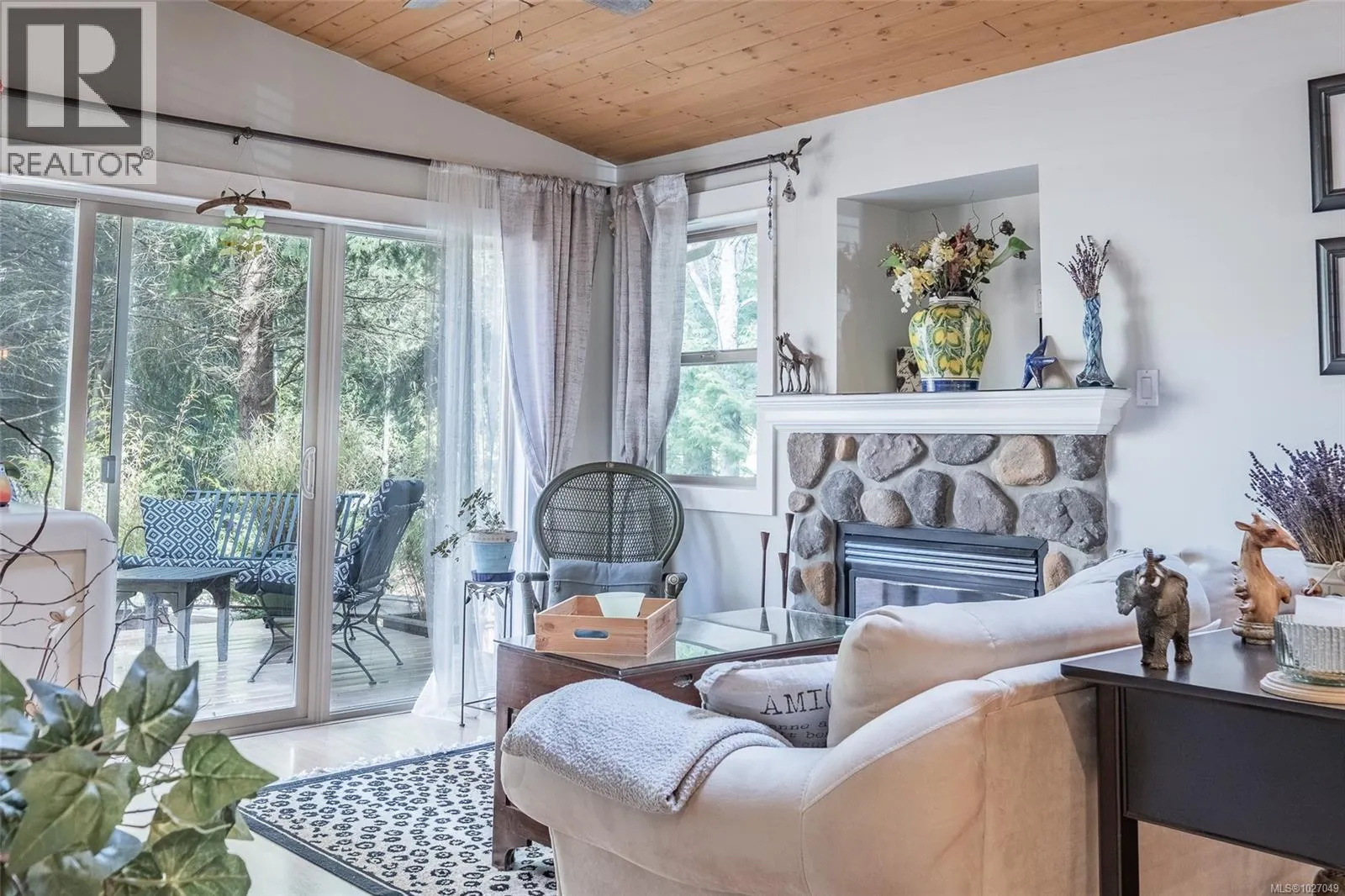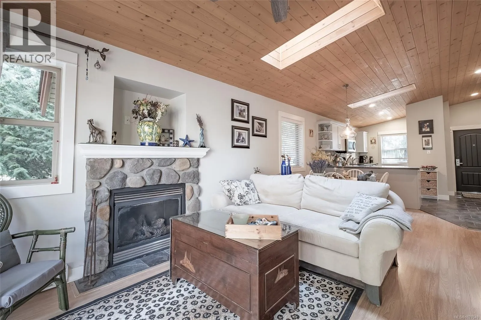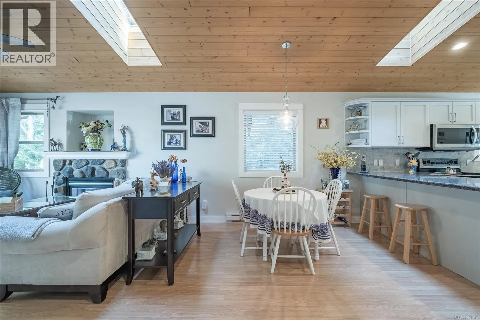 End Unit with unique features â Rare Find! No GST on this unit. This sought-after Arbutus Model offers easy one-level living with 2 bedrooms, 1 bath featuring a spacious deck and a beautifully landscaped patio areaâan uncommon find in this development. Enjoy dual access to the rear composite deck from both the primary bedroom & the living room Vaulted pine ceilings, skylights, and cozy gas fireplace. Updates include granite counters, refreshed kitchen cabinets, stainless steel appliances, new blinds, lighting, tile backsplash, fresh paint, and tile & laminate flooring, features on-demand gas hot water, and a newer washer, dryer, microwave, & dishwasher. Home also has heated crawl space! Outside is a private rear yard, composite front deck, two parking spots, outside attached storage, and an access card to the indoor pool. Included in Sale: Kitchen table & 4 chairs, two bar stools, bedroom suite in primary bedroom, all outdoor furniture and bamboo plants. (id:27476)