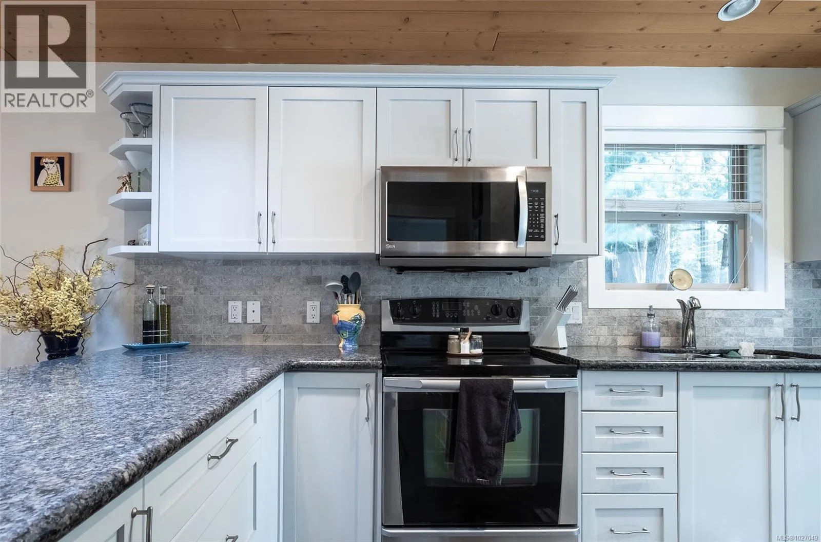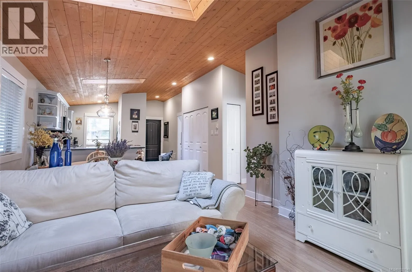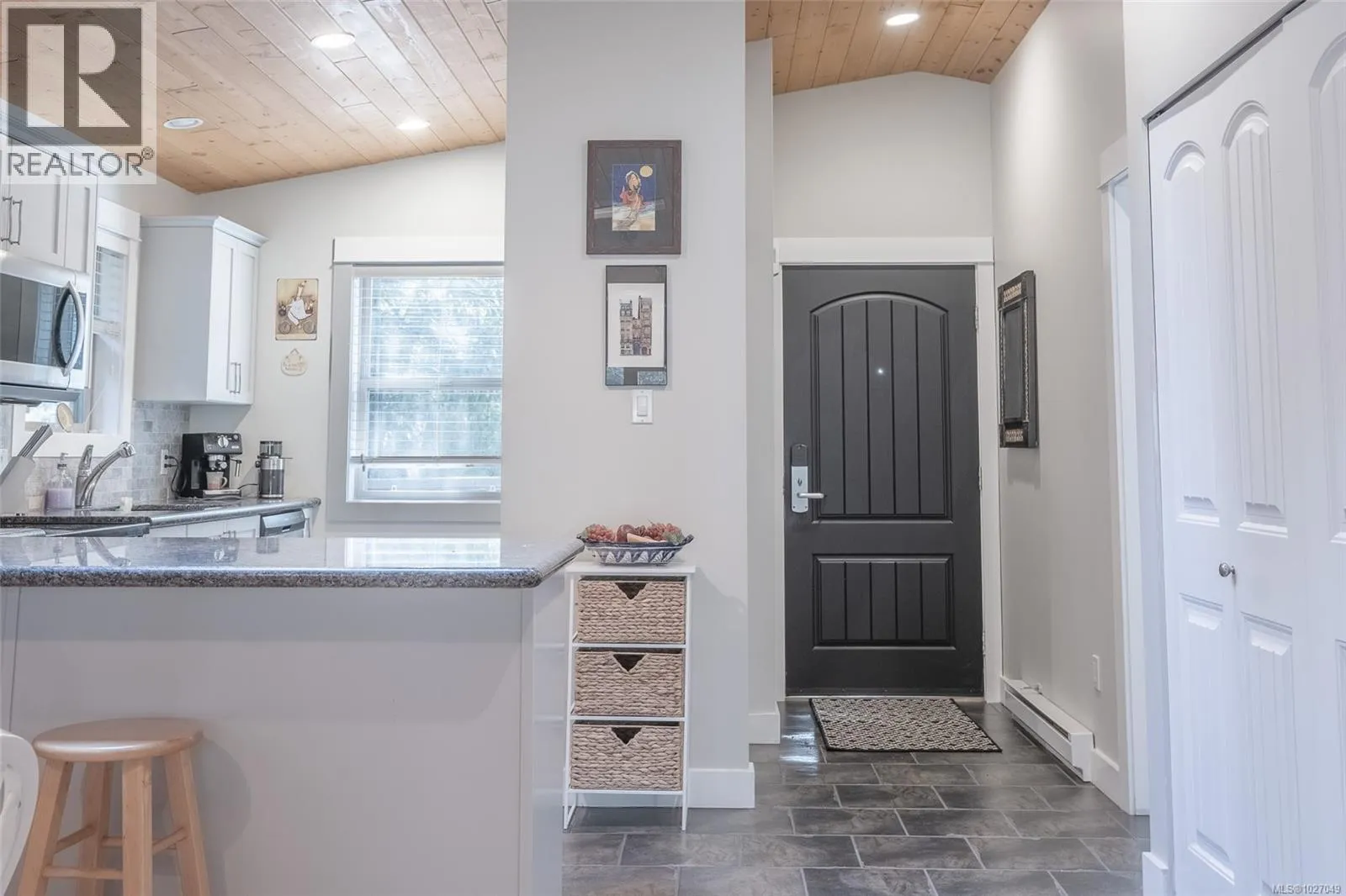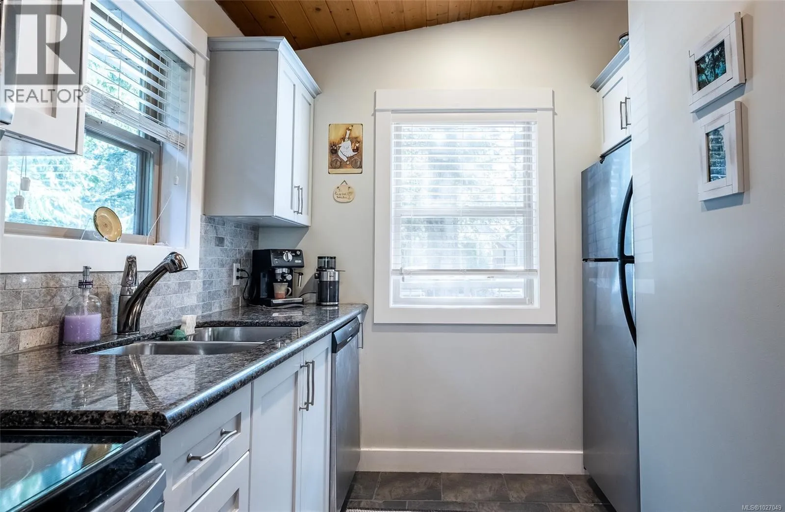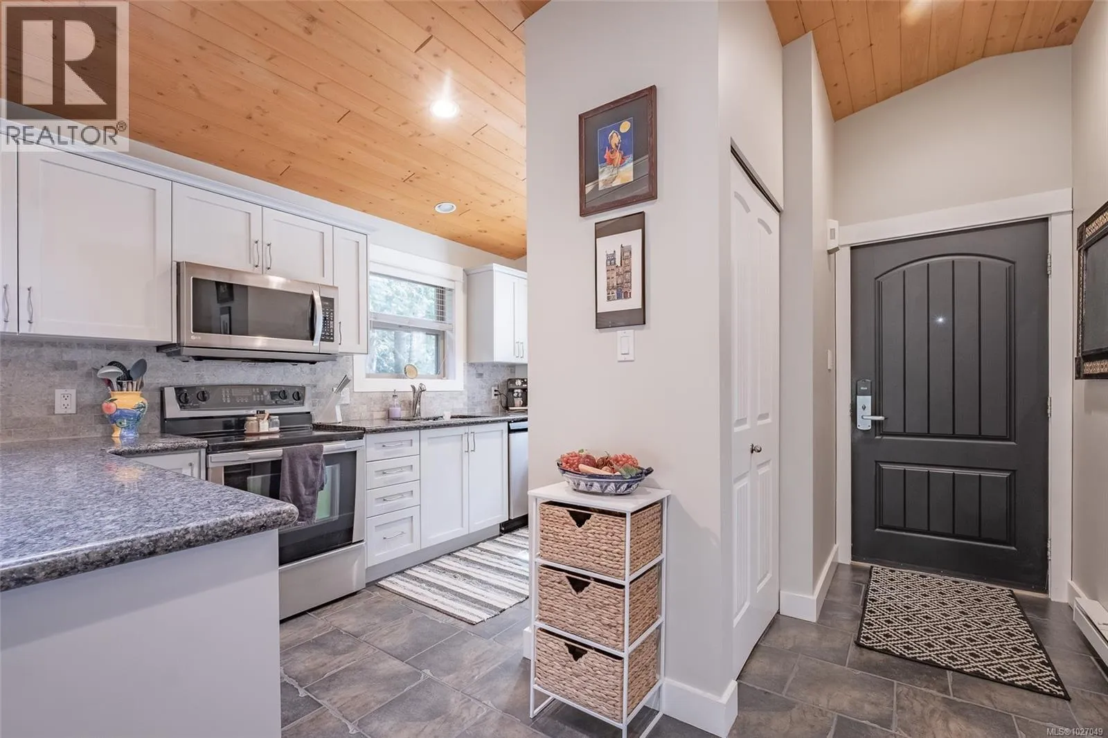 End Unit with unique features â Rare Find! No GST on this unit. This sought-after Arbutus Model offers easy one-level living with 2 bedrooms, 1 bath featuring a spacious deck and a beautifully landscaped patio areaâan uncommon find in this development. Enjoy dual access to the rear composite deck from both the primary bedroom & the living room Vaulted pine ceilings, skylights, and cozy gas fireplace. Updates include granite counters, refreshed kitchen cabinets, stainless steel appliances, new blinds, lighting, tile backsplash, fresh paint, and tile & laminate flooring, features on-demand gas hot water, and a newer washer, dryer, microwave, & dishwasher. Home also has heated crawl space! Outside is a private rear yard, composite front deck, two parking spots, outside attached storage, and an access card to the indoor pool. Included in Sale: Kitchen table & 4 chairs, two bar stools, bedroom suite in primary bedroom, all outdoor furniture and bamboo plants. (id:27476)