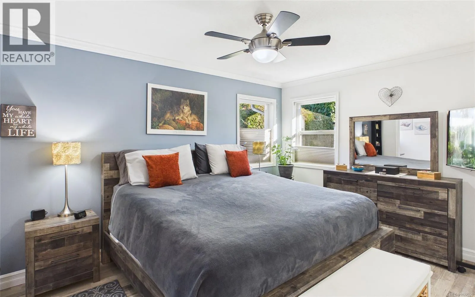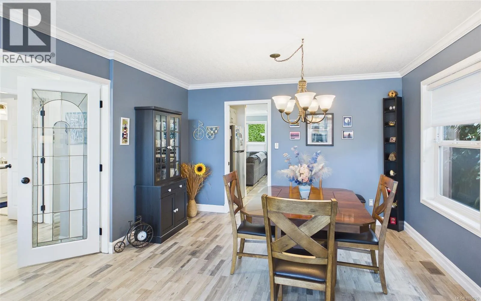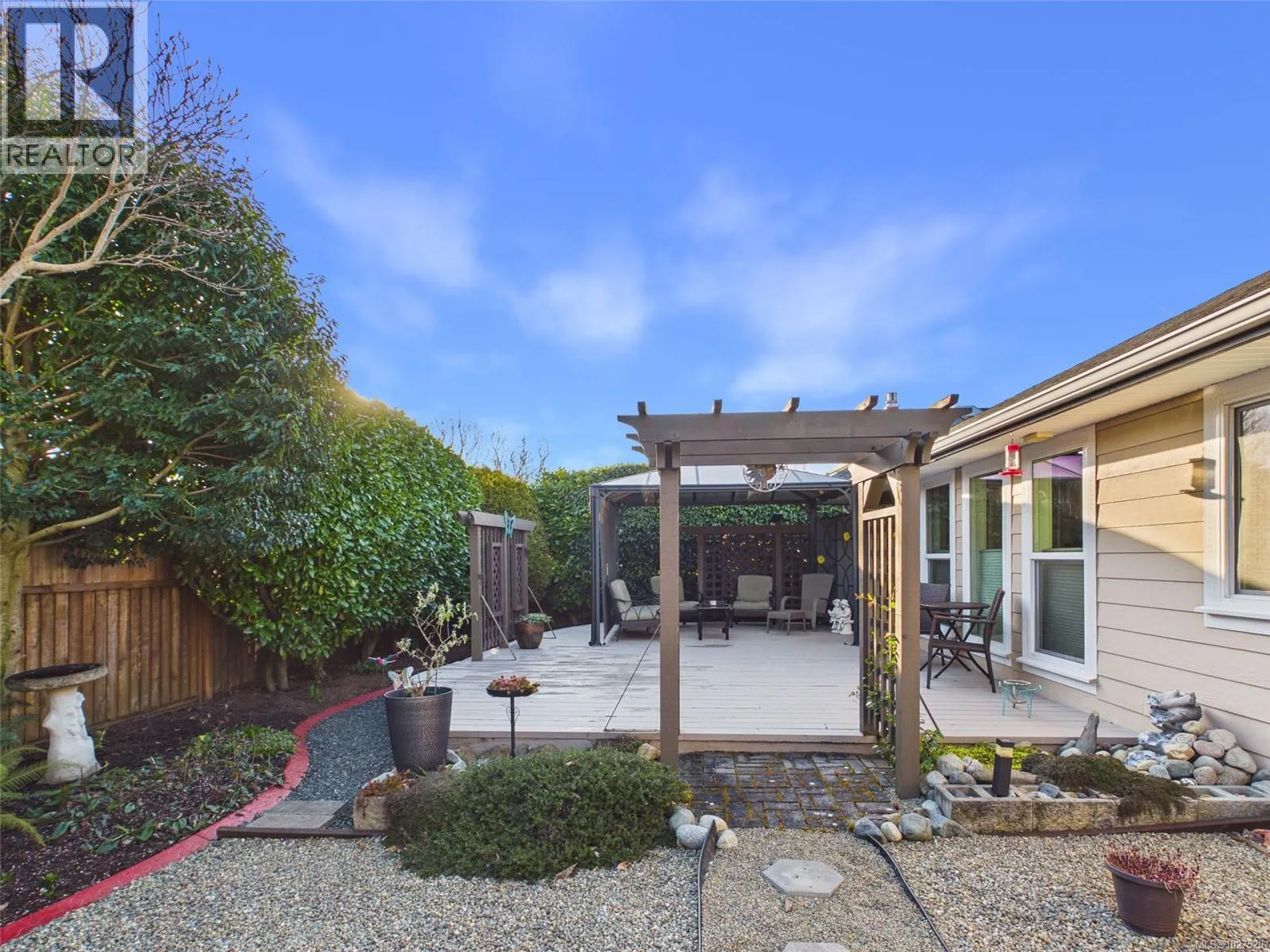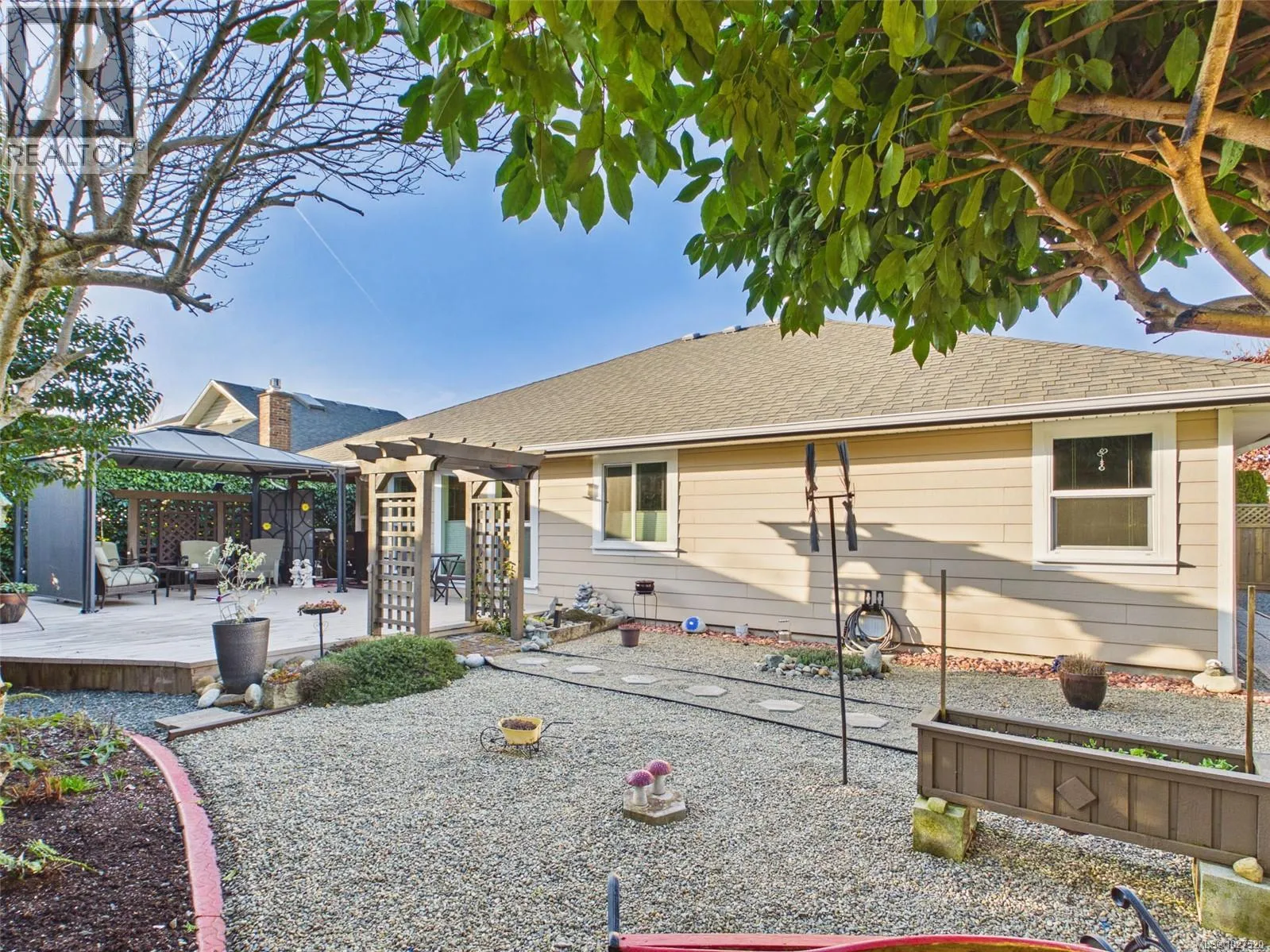 Welcome to easy Island living in this beautifully maintained 3-bedroom, 2-bathroom rancher offering 1,596 sq. ft. of comfortable one-level living in a quiet ocean-side Parksville neighborhood. The open-concept kitchen flows seamlessly into the breakfast nook and inviting family room, all overlooking a sunny south-facing backyard with a spacious deck and covered pergola - ideal for relaxing, gardening, or entertaining friends and family. A cozy natural gas fireplace creates warmth and ambience, while high-end luxury vinyl flooring and crown moldings add a refined touch throughout. Numerous upgrades over time include durable hardy-plank exterior, vinyl windows, updated bathrooms, newer Napoleon Warm furnace and hot water tank (2018), upgraded wiring in the double garage with insulated door, irrigation system front and back, and beautiful window coverings. The functional laundry and mud room offers extra storage and everyday convenience, and the crawl space provides excellent additional storage while helping maintain warm, comfortable floors year-round. Tucked away on a peaceful dead-end street on the ocean side of the highway, this home is just minute from shopping, schools, golf courses, the marina, and Parksville's famous sandy beaches - an ideal blend of comfort, lifestyle and location. (id:27476)