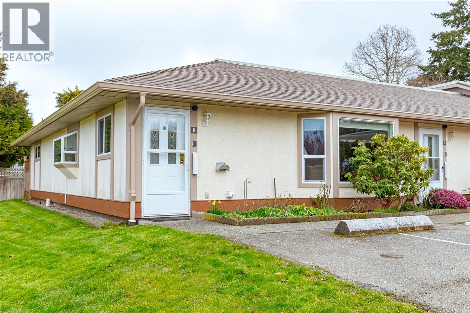 This well-maintained townhome is ideally located in a highly walkable Parksville neighbourhood, just a short stroll from the famous Parksville Community Beach. The home is part of a quiet, well-managed 55+ complex with just 22 units and a pet-friendly policy, offering a relaxed and community-oriented lifestyle. As an end unit, the home benefits from additional windows in the kitchen, entryway, and primary bedroom, bringing in even more natural light and creating a bright, welcoming feel throughout. The interior features vaulted ceilings and bay windows that further enhance the open, airy layout. The two-bedroom, two-bathroom floor plan is both functional and comfortable, with in-unit laundry and ample closet space throughout. The home is also equipped with a heat pump, providing efficient heating in the winter and air conditioning during the warmer months. A rear patio extends the living space outdoors and offers a pleasant area to enjoy the coastal climate. With its desirable location, ocean views, and low-maintenance living, this property presents an excellent opportunity to enjoy life near the beach. (id:27476)