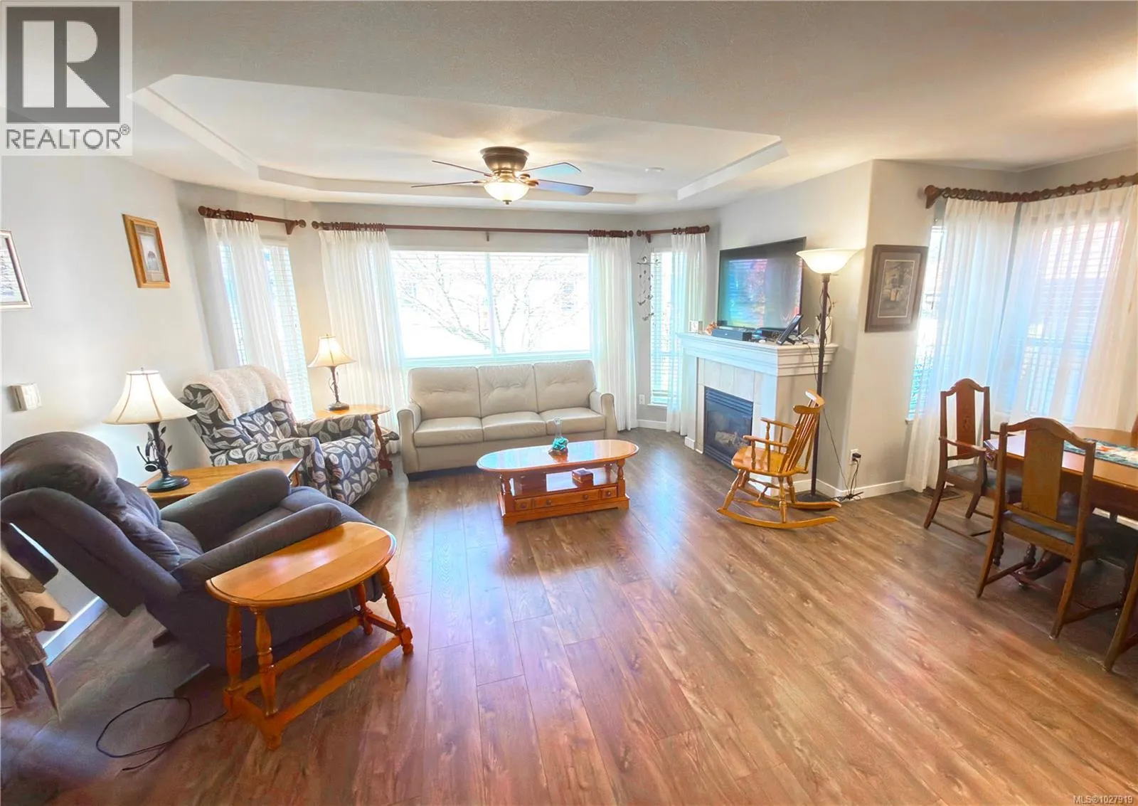 Meticulously maintained and move-in ready, this 1,370 sq ft 3-bedroom, 2-bathroom rancher offers an exceptional low-maintenance lifestyle in a premier 55+ community. A standout feature is the oversized detached double garage, accessed via a private driveway; it provides secure parking for multiple vehicles plus ample room for a workshop, hobby space, or seasonal storage. Recent high-value updates include a new heat pump & furnace, a newer roof (2021), and updated plumbing (no Poly B). The bright interior features a spacious living room with a cozy gas fireplace and a sun-drenched kitchen with white cabinetry, stainless steel appliances, and a skylight. Enjoy a private, fenced backyard with a large patio connecting the home to your double garage. With renovated bathrooms and new flooring, every detail is done. Pet-friendly with low $190/mo strata fees, this home is walking distance to Wembley Mall and the ocean, and minutes from golf and marinas. Make an appointment to view today! (id:27476)