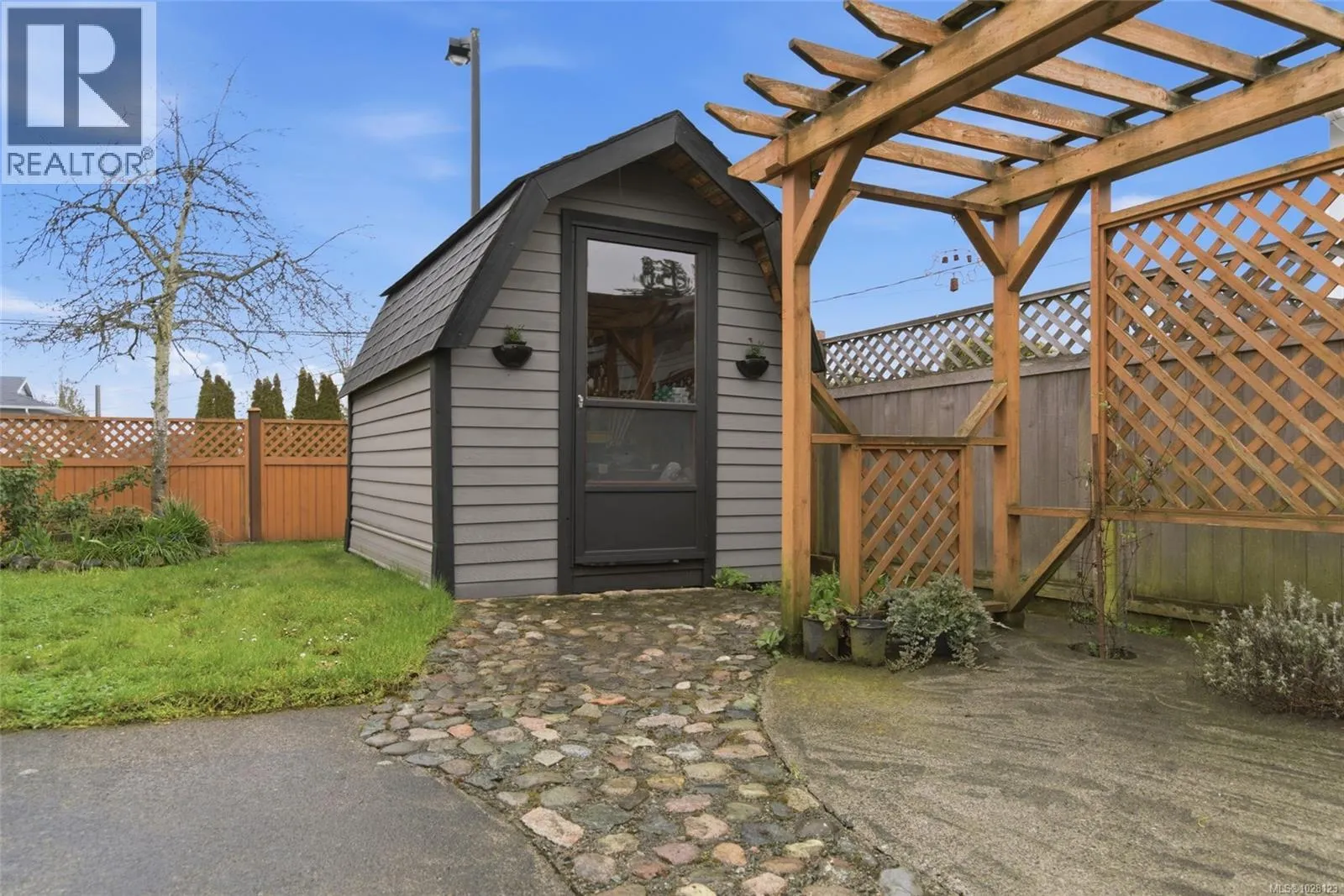 Bright and Spacious Parksville Rancher! Donât miss this charming 3?Bed/2?Bath Rancher on a fully fenced and landscaped .16-acre corner lot. This move-in-ready home features a skylight and large windows for natural light, elegant finishes, an easy-care one-level floor plan, plus a large patio and sun-soaked yard for outdoor living. Located in a great neighborhood, with easy access to the beach, schools, transit, golf courses, and downtown Parksville shopping. A covered front porch and decorative glass sidelight welcome you into a tiled foyer illuminated by a large skylight. French doors open to a spacious open-concept Living and Dining Room, ideal for both entertaining and everyday living. The Living Room features a large picture window and a red brick wood-burning fireplace, creating warmth and ambiance, while wood-finish laminate flooring flows into the Dining Room with space for a hutch. A glass door opens to a well-planned eat-in Kitchen with ample oak cabinetry, including oversized pantry cupboards, generous counter space, and a sunny garden window above the sink. Thereâs also room for a cozy breakfast table. A door leads to a sizable 225 sqft patio, extending the living space outdoorsâperfect for relaxing or dining. The backyard offers a garden arbor, a stepping-stone walkway, a garden shed, and established plantings with sunny southern and eastern exposure. The Primary Bedroom Suite is privately located and features a walk-in closet and a 3-piece ensuite. Two additional Bedrooms with double closets provide flexibility for family, guests, or workspace needs. Completing the home is a 3-piece Main Bath and a Laundry Room with storage and direct access to the attached Double-Car Garage. This warm and welcoming home is the perfect place from which to enjoy the next amazing chapter of your life. Visit our website for more info. (id:27476)
