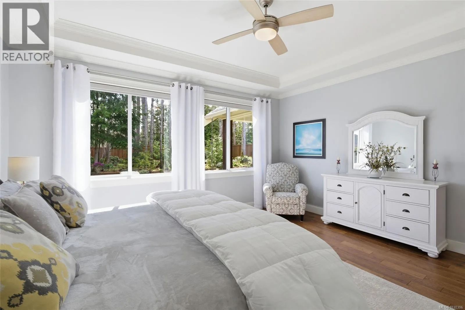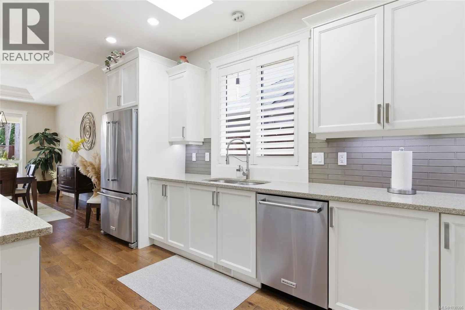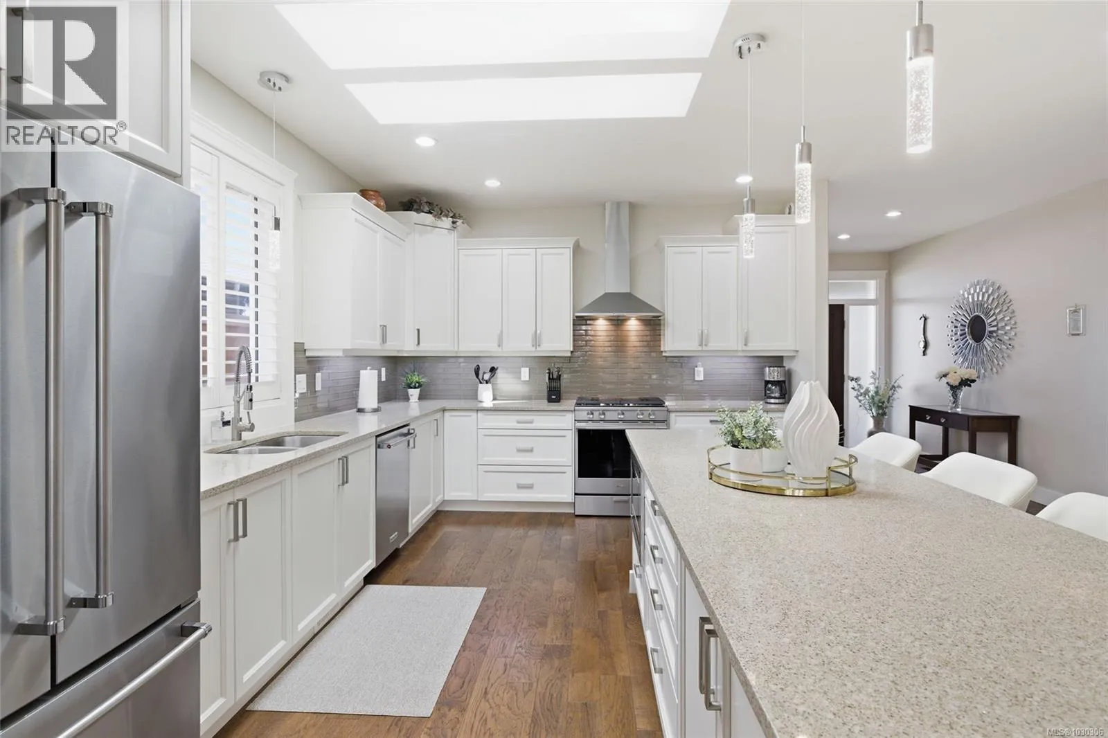 Private Parksville Sanctuary â Spacious and sun-filled 3-bed 2-bath Executive Rancher by renowned local builder John Carey, situated on a beautifully landscaped .24 acre lot just a short walk to Parksville's town center shopping, services, and the beach. Open concept kitchen, living, and dining area featuring engineered hardwood floors throughout, soaring 10' ceilings, big windows with sunny southern exposure, 5 skylights flooding the home with natural light, and a cozy natural gas fireplace. Contemporary kitchen with quartz countertops, lots of quality cabinetry, extended island with breakfast bar, separate pantry closet, and stainless steel appliances including a new gas stove. Euro-style patio doors open to a large covered patio with dual skylights and a picturesque view overlooking the fully fenced south-facing backyard complete with storage shed and tranquil garden area. Generous primary bedroom suite with walk-in closet and renovated 5-piece ensuite, den that doubles as a 3rd bedroom, skylighted 4-piece main bath, and convenient laundry room with sink, cupboards, and direct access to the double garage. Freshly painted throughout, EV charger, RV parking potential, and low maintenance living. A bright, private, and immaculate move-in ready home. (id:27476)