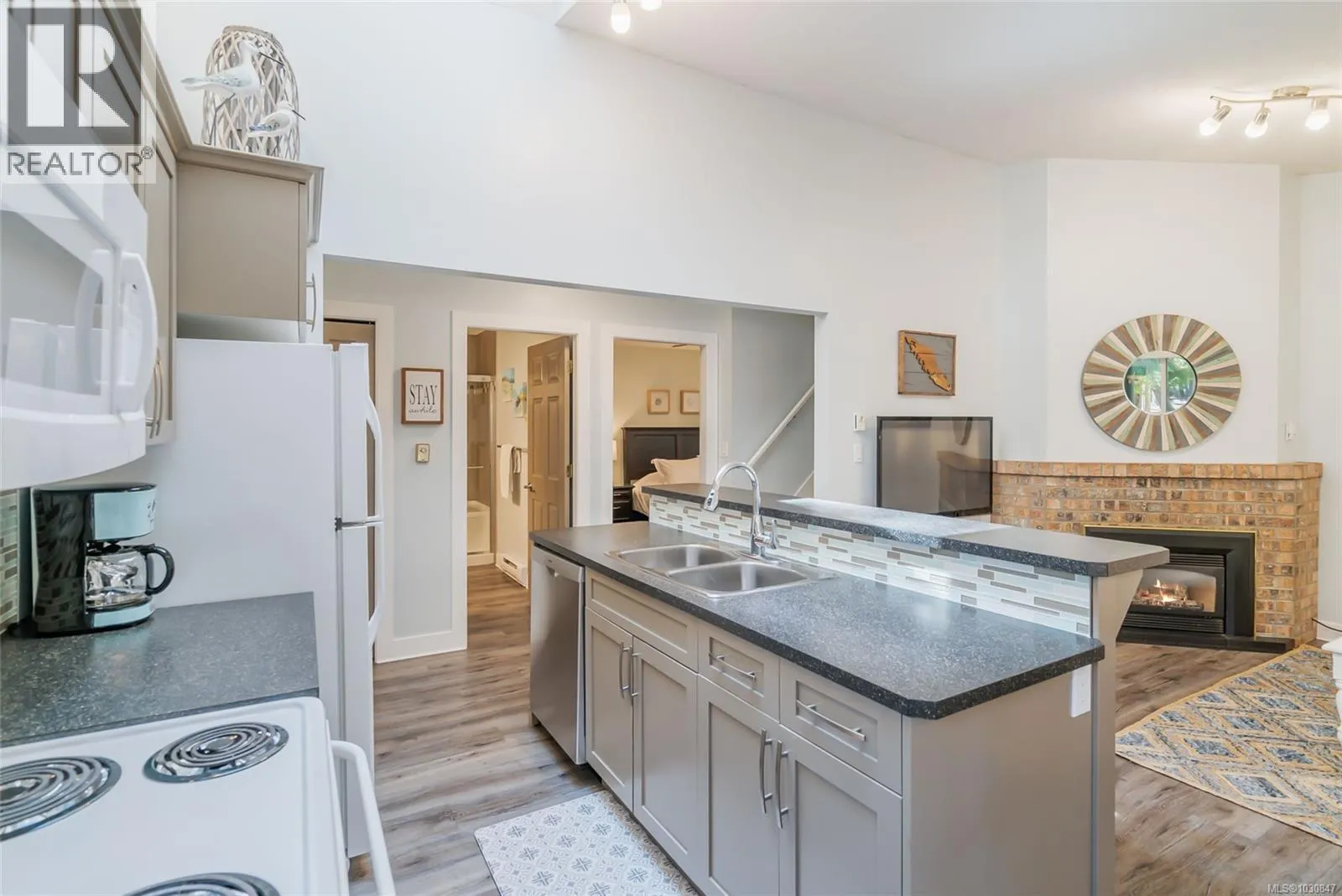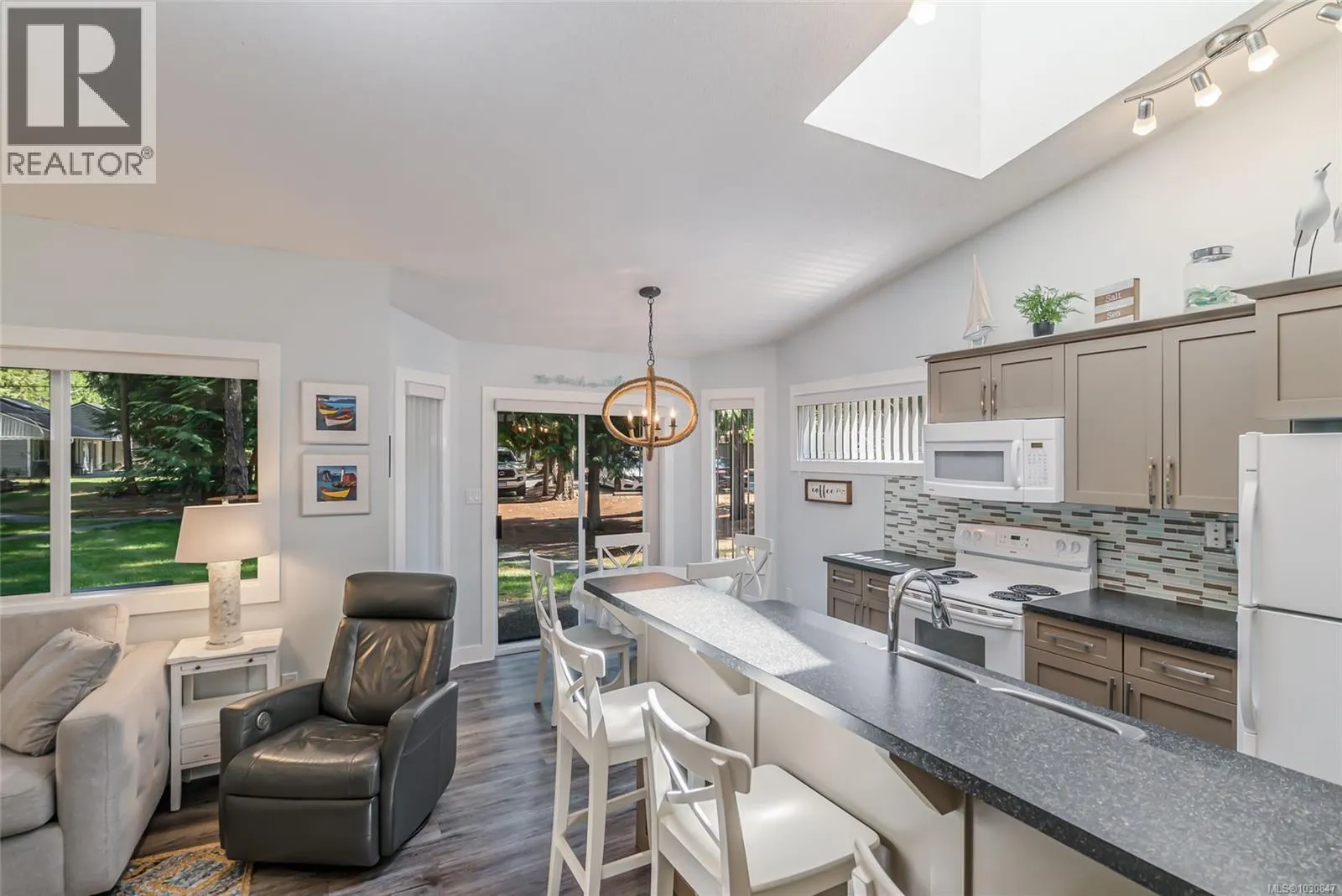 Superb Parksville Vacation Condo Near the Beach! Located in 'Ocean Trails Resort' on Parksville's famous Resort Row, you'll find this fully furnished 3 Bed/2 Bath Vacation Condo boasting 1377 sqft of bright living space, multiple skylights and generous use of glass, tasteful updates made over time, and a large patio for outdoor enjoyment. The condo comes with a full furniture package, in-unit laundry facilities, and access to amazing resort amenities. Situated in one of only two triplexes in the entire complex and featuring a rare Family Room, this adorable vacation home offers a convenient location just minutes from downtown Parksville, golf courses, beautiful walking trails, and the charming shops of Qualicum Beach. It's the perfect Holiday Getaway Condo, and you can place it in the professionally-managed rental pool for income when you're not using it! Step into an inviting open-concept Kitchen/Living/Dining Room, ideal for launching the day's activities or unwinding after a fun-filled day. The Living Room features a vaulted ceiling and nat gas fireplace, while the Deluxe Kitchen has shaker-style wood cabinetry, a large island with a breakfast bar, and a 5-piece appliance package. The Dining Nook has a door leading to a sizable, partly-covered patio, that is accessible from one of two main-level Bedrooms. A 3-piece Bath with a large shower completes the main level. Upstairs you'll find three skylighted rooms: a spacious Family Room, a large Bedroom, and a 4-piece Bath. The upper level also includes a Laundry Closet. This condo comes with free Wi-Fi, and access to superb amenities like Rathtrevor Beach, a playground, and an Aquatic Center with a seasonal pool, hot tub, and tennis/pickleball courts. The resort offers optional Property Management or self-management options for rental income. Nearby, enjoy boutique shops, adventure golf, and an arcade. Visit our website for more info. (id:27476)