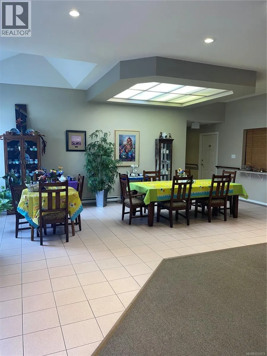 Emerald Estates Independent Living Patio Home features 1 bedroom 1 bath ensuite unit with large windows and French Doors leading out to your private patio make this unit light and bright. This unit is very spacious with an open layout for Living room and dining room, has vaulted ceilings and a compact kitchen. This lifestyle provides you with light housekeeping weekly with linen laundry included in your strata fees as well as an affordable optional dining program with home cooked meals (currently 4 days/week). This complex has secured entrance, is wheel chair friendly, shared laundry and is close to town, shopping, coffee shops and parks and has lovely landscaped grounds. The atmosphere is friendly with lots of opportunity for socializing so a perfect set up for those 55+ (id:27476)