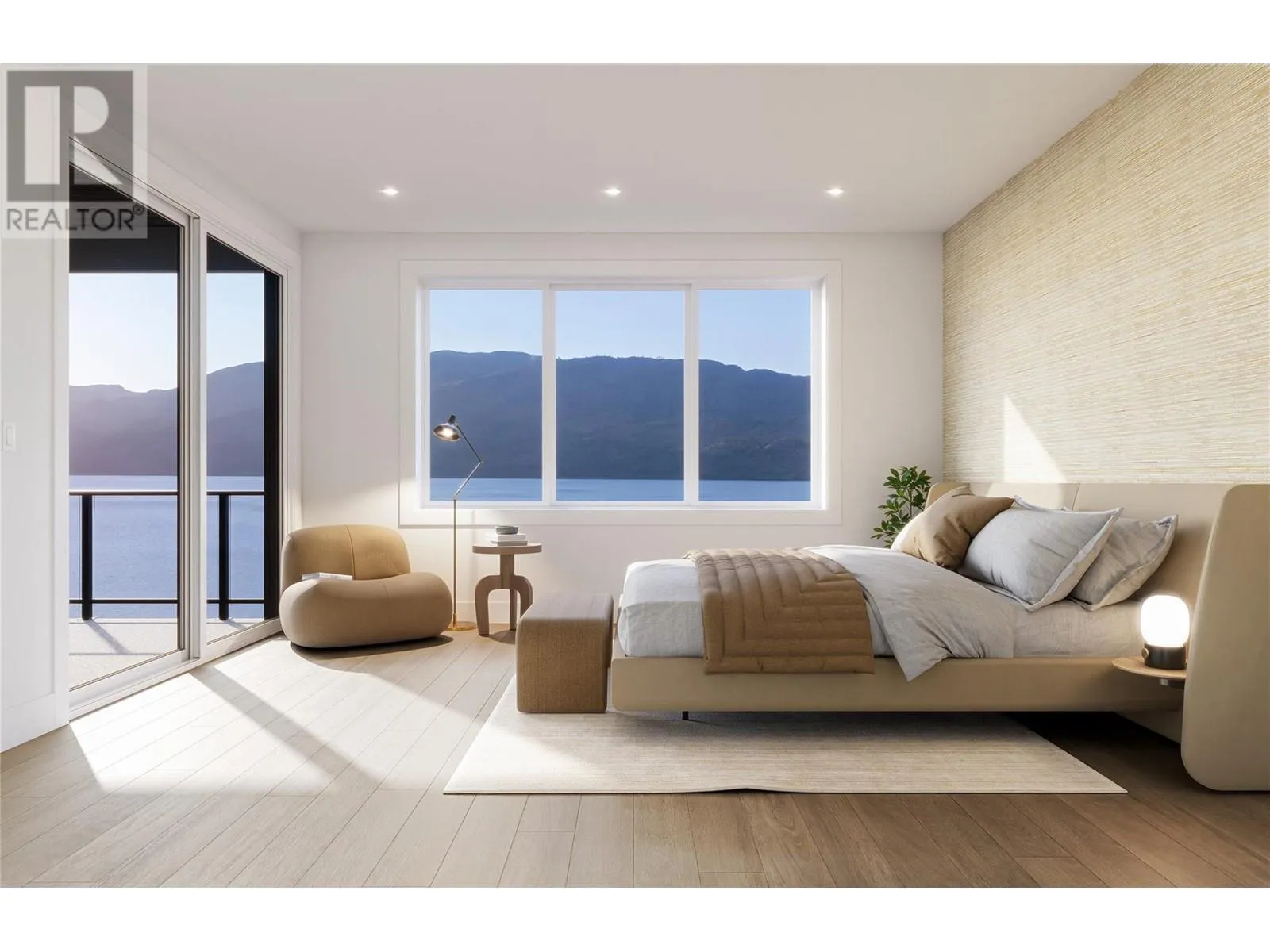 Welcome to McKay Grove, an exclusive collection of executive townhomes & condominiums, terraced into the serene hillside of Peachland. Offering sweeping south-west facing lake views, and located just steps from the Okanaganâs best beaches and trails, coffee shops and restaurants. This home contains 1,892 sqft of interior living space all one one level, boasting 3 bedrooms & 2 bathrooms. Upon entry, you are instantly greeted by stunning lake views. Featuring generous open concept living spaces, expansive windows, and luxury features throughout, this home has been curated with the finest designer finishes, fixtures, and appliances to create an unmistakable sense of comfort, welcome, and luxury. From engineered hardwood floors and Dekton-clad professional kitchens to Italian-imported custom millwork with integrated Fisher Paykel appliances, McKay Grove has been designed perfectly for downsizes, summer homes, or anything in between. Generous visitor parking and green space, and a short walk to the lake. Each home features a private double garage. Pet friendly with up to two pets (2 dogs or 2 cats, or 1 dog and 1 cat). Don't forget to check out the Virtual Tour. Move-in Q4 2025! (id:27476)