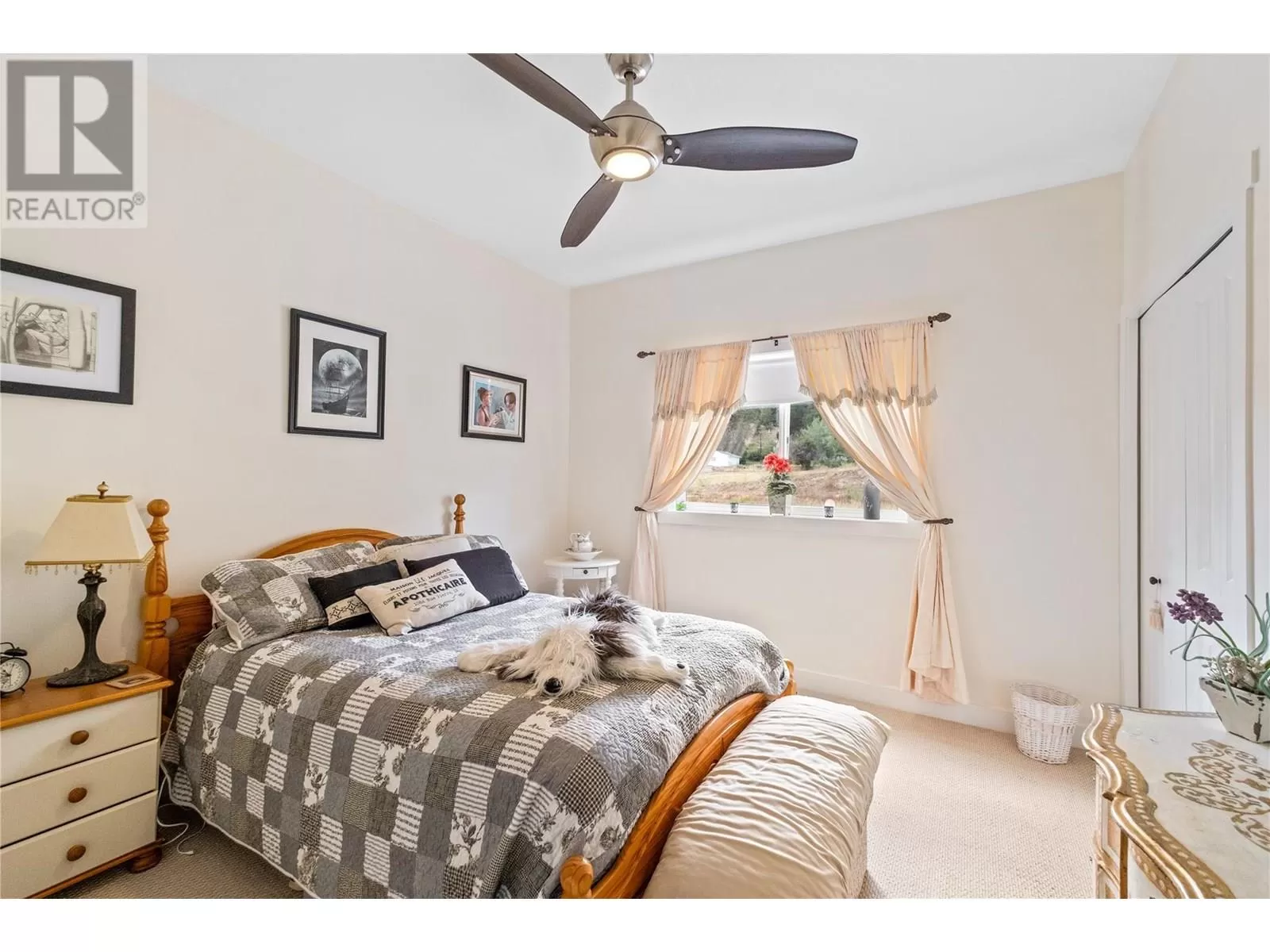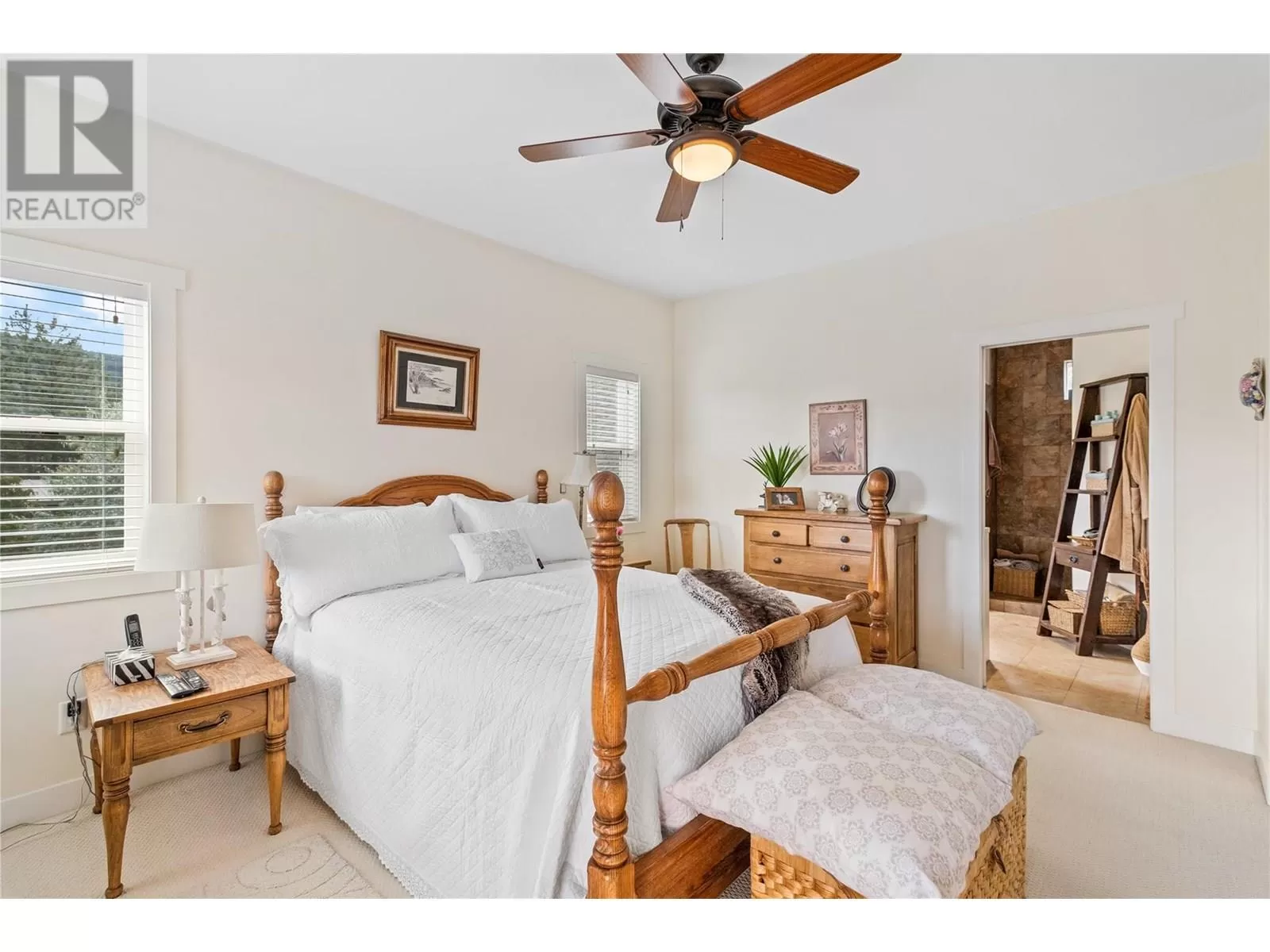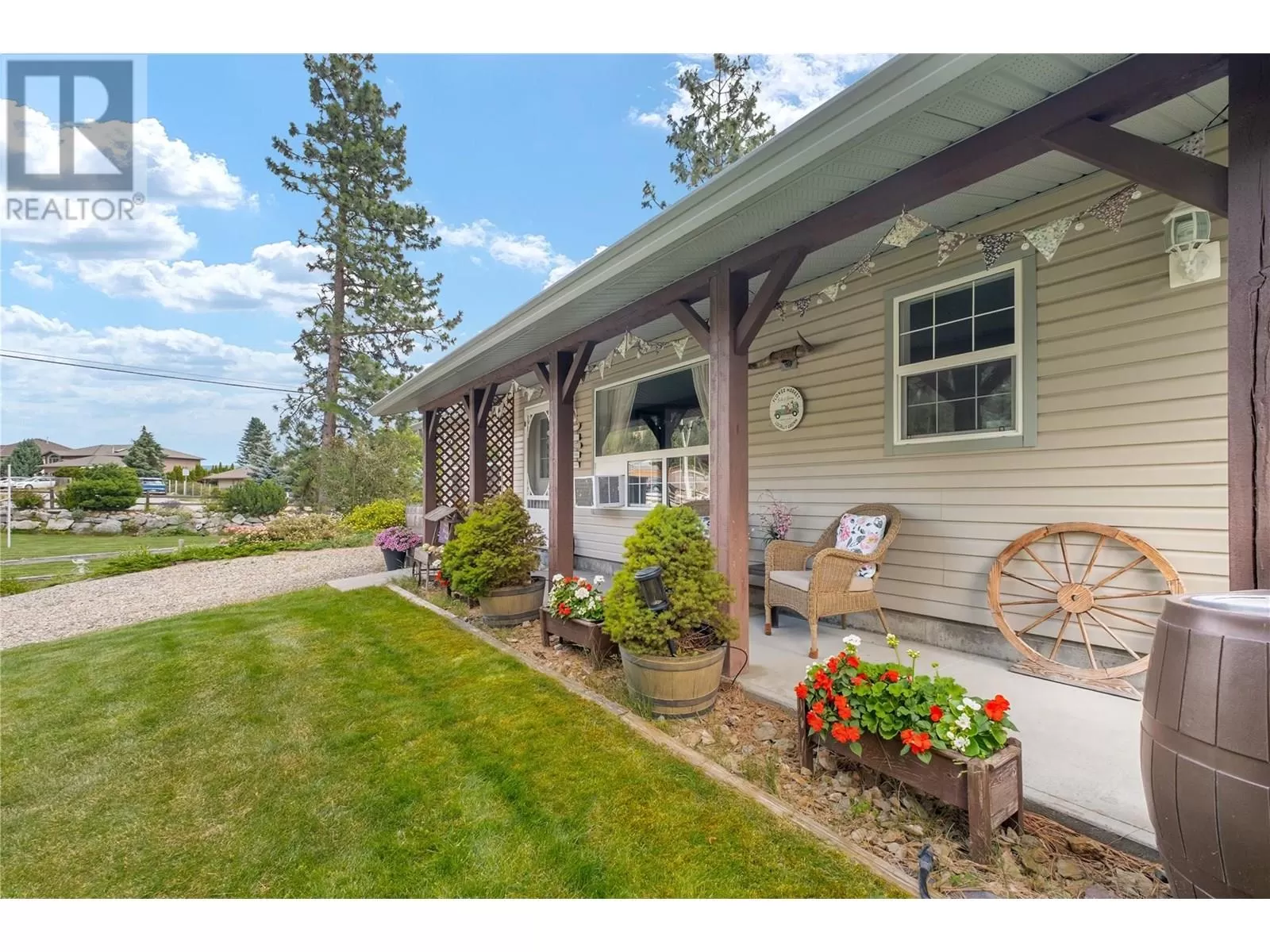 Beautiful Peachland Paradise with incredible income potential. This private 1-acre estate features a spacious main house with 5 bedrooms, 3.5 bathrooms, gas fireplaces, tile and hardwood floors. The modern kitchen boasts shaker-style cabinets, granite counters, an island, dining area and SS appliances. While the primary bedroom includes a walk-in closet, a luxurious ensuite with a separate water closet, double vanity and walk-in shower with a dual entrance and body jets. Large windows throughout the house flood the interior with natural light and the serene views can be enjoyed in nearly every room. The charming carriage house offers 2 bedrooms and a cozy gas fireplace. Enjoy a heated saltwater pool, covered RV port, picnic area, garden, a versatile games area and three sheds on the beautifully landscaped property. Backing onto a pasture and ALR land, this serene oasis also includes a covered patio, NG hookup, is wired for a hot tub, and deck access from the primary bedroom. With extra parking, great neighbours and a suite-able layout. Don't miss this true gem offering luxurious resort-like living just minutes from downtown and the beach, with fantastic investment opportunities. (id:27476)