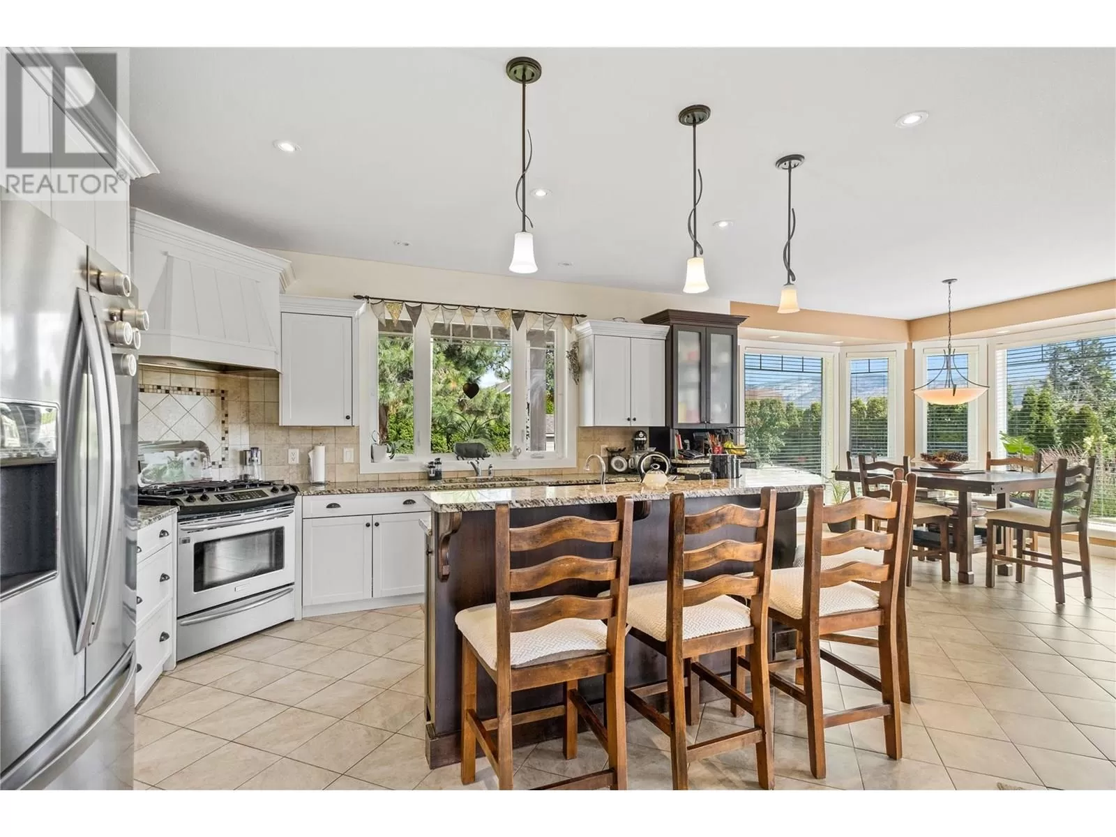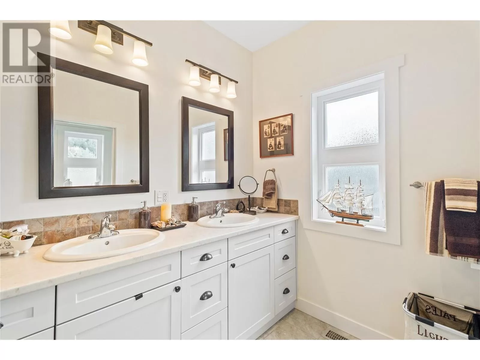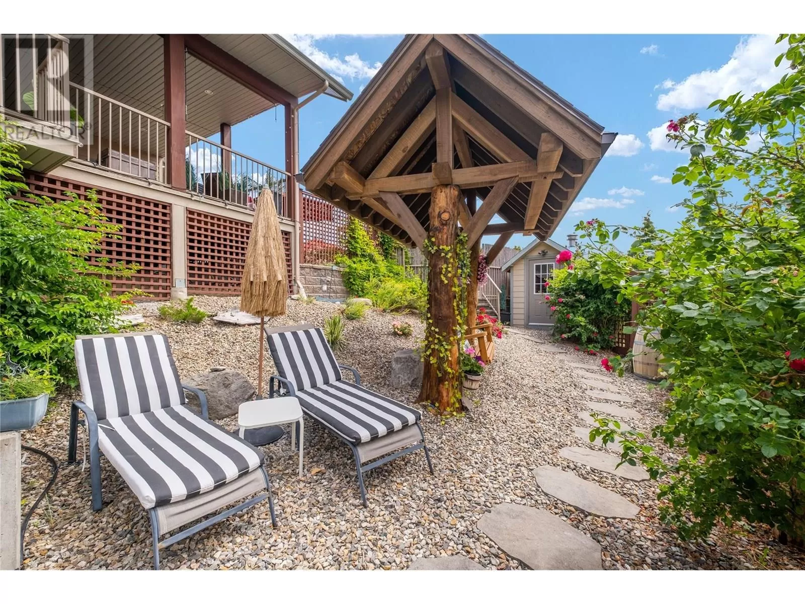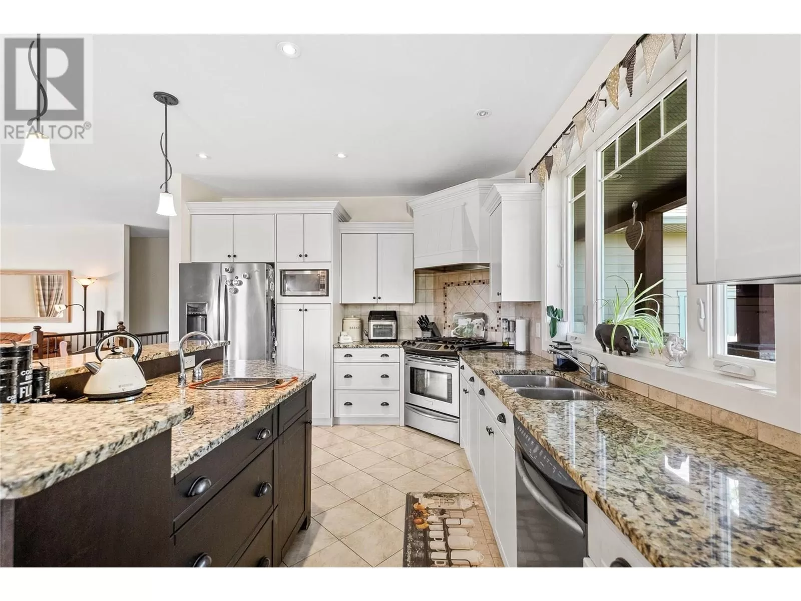Beautiful Peachland Paradise with incredible income potential. This private 1-acre estate features a spacious main house with 5 bedrooms, 3.5 bathrooms, gas fireplaces, tile and hardwood floors. The modern kitchen boasts shaker-style cabinets, granite counters, an island, dining area and SS appliances. While the primary bedroom includes a walk-in closet, a luxurious ensuite with a separate water closet, double vanity and walk-in shower with a dual entrance and body jets. Large windows throughout the house flood the interior with natural light and the serene views can be enjoyed in nearly every room. The charming carriage house offers 2 bedrooms and a cozy gas fireplace. Enjoy a heated saltwater pool, covered RV port, picnic area, garden, a versatile games area and three sheds on the beautifully landscaped property. Backing onto a pasture and ALR land, this serene oasis also includes a covered patio, NG hookup, is wired for a hot tub, and deck access from the primary bedroom. With extra parking, great neighbours and a suite-able layout. Don't miss this true gem offering luxurious resort-like living just minutes from downtown and the beach, with fantastic investment opportunities. (id:27476)