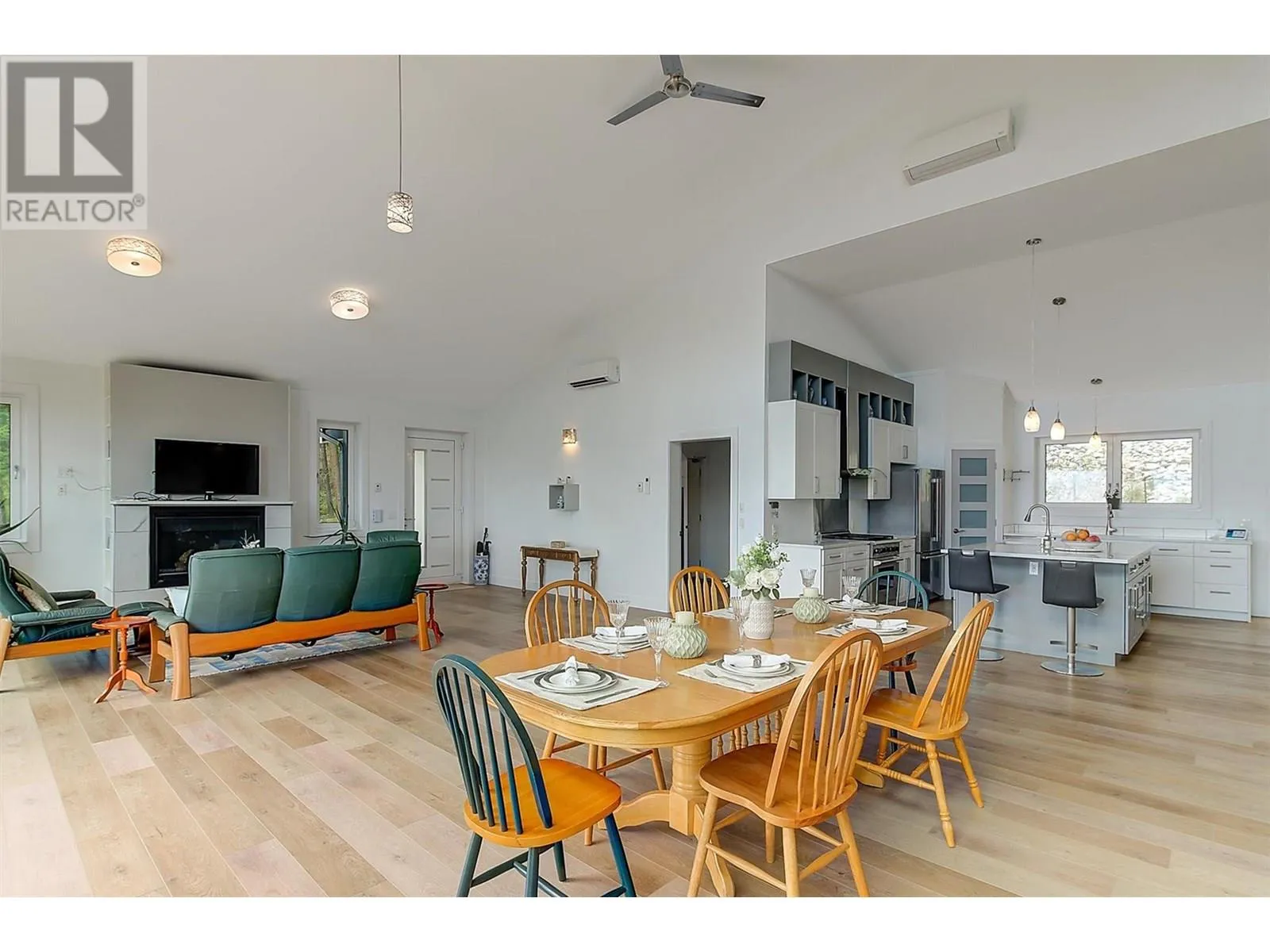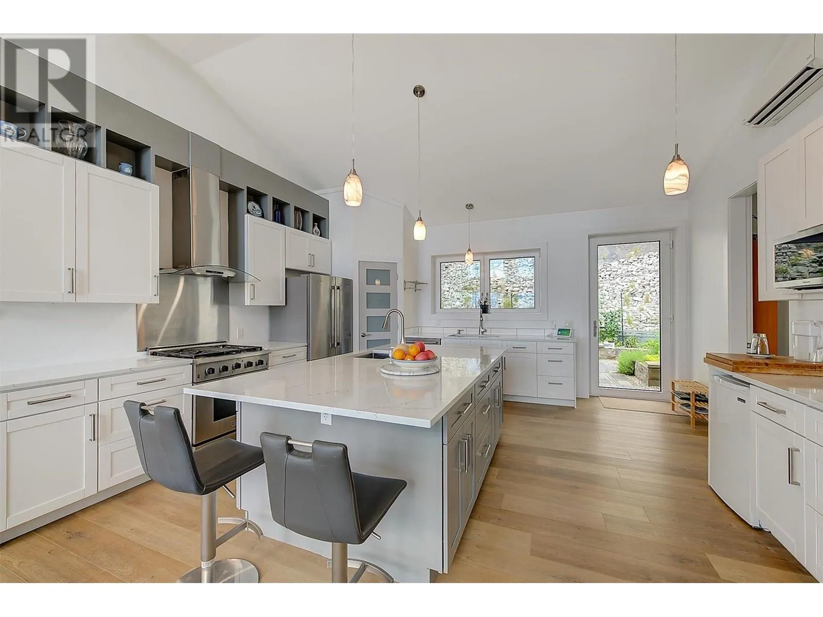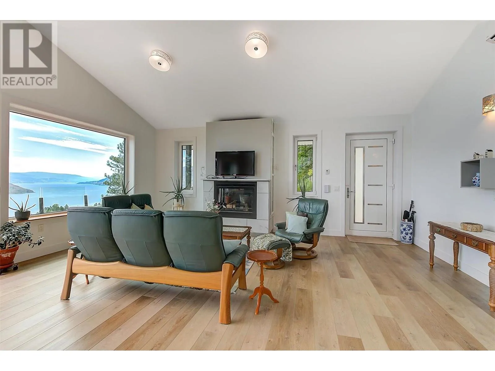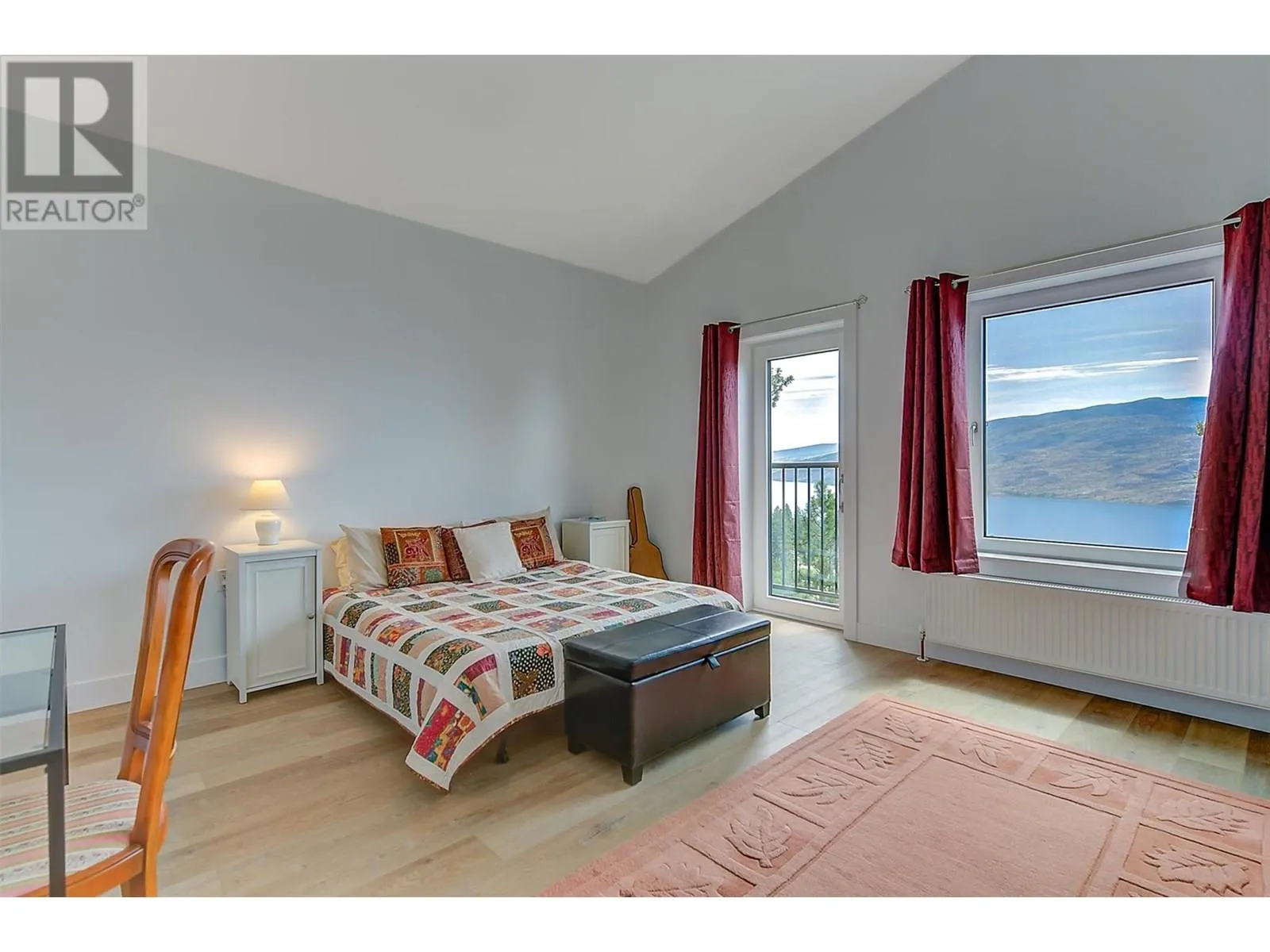 This 2019 owner-built home truly has the WOW factor and ticks all the right boxes. Perched on the hillside with stunning panoramic views of Okanagan Lake and the mountains, you can enjoy the breathtaking scenery from the spacious front deck or from inside the home. The bright, flexible, open-concept floor plan features soaring vaulted ceiling, a generous living room, and seamless flow into the dining area and beautifully appointed chefâs kitchen, complete with stainless steel appliances, quartz countertops, and a large islandâallowing you to organize and entertain your way. Three generously sized bedrooms, each with walk-in closets and private access to modern bathrooms, offer exceptional space and comfort for family or guests. Step outside to relax in the peaceful garden patio surrounded by nature or explore the nearby trail system, providing a quiet, private, and serene lifestyle. Adding versatility, the home includes a separate one-bedroom legal suite with its own entranceâideal for extended family, guests, or rental income. This high-performance home was owner-constructed to exceed the Building Code and is engineered to be fire-smart, wind-resistant, and earthquake-resistant for long-term protection and peace of mind. Year-round comfort is provided by the super high-efficiency design, radiant water heating system, and ductless split air conditioning units. The 10-kilowatt solar panel system, natural gas generator, and battery backup system support both sustainability and lower utility costs. For added convenience, the attached double garage features a Level 2 EV charger. This beautifully maintained Peachland home is the perfect blend of luxury, efficiency, and Okanagan lifestyleâmove-in ready and not to be missed! (id:27476)