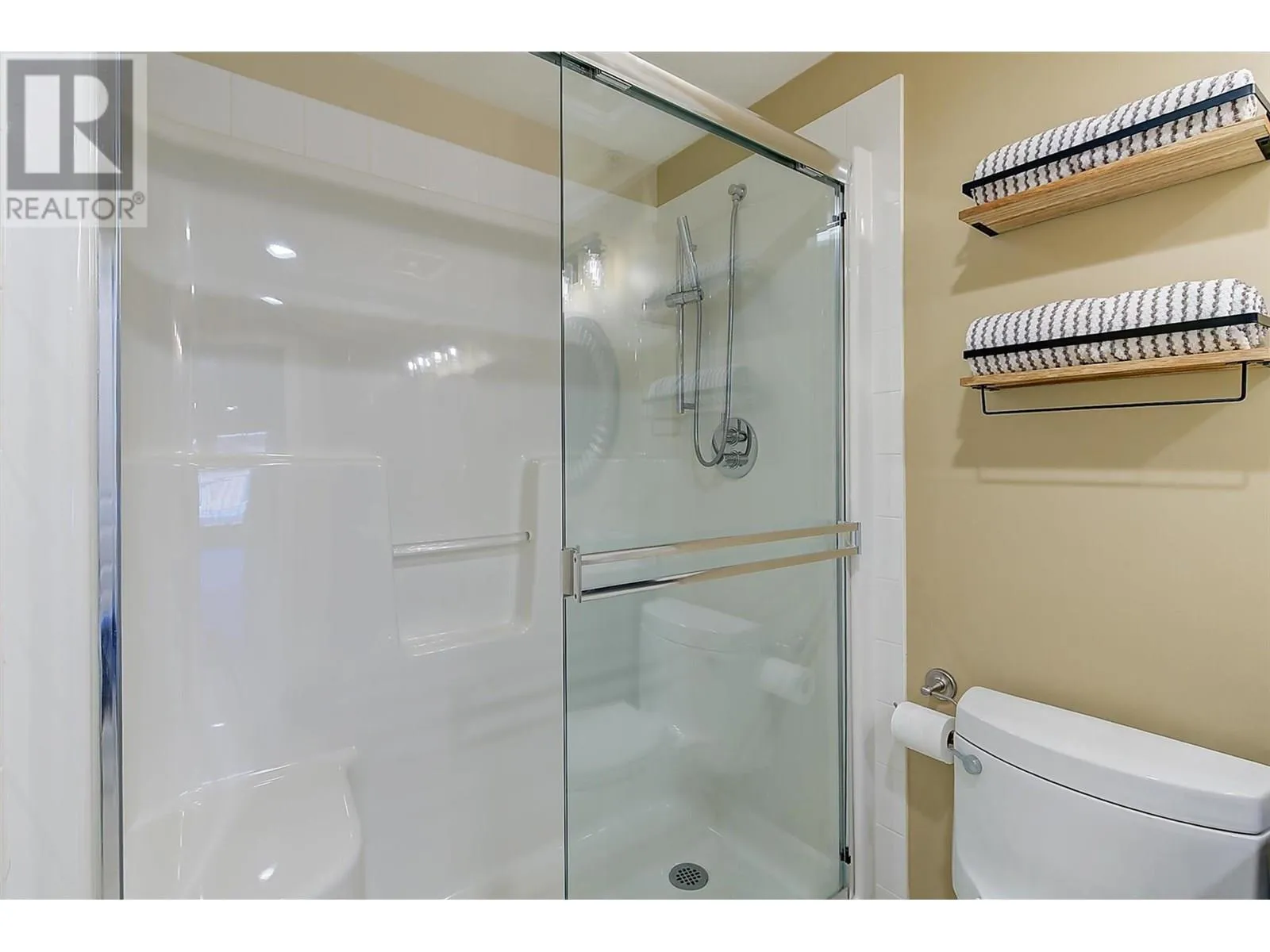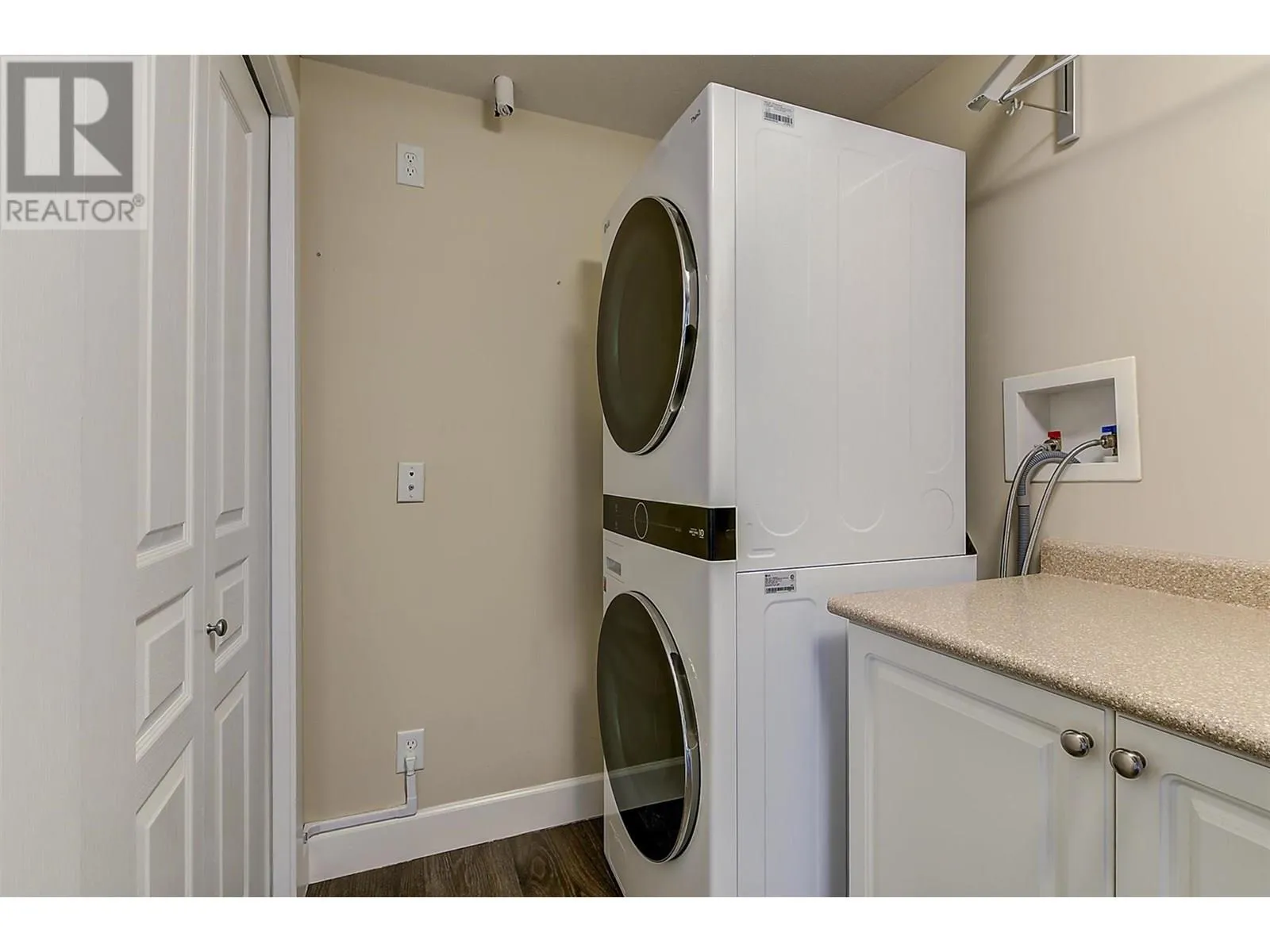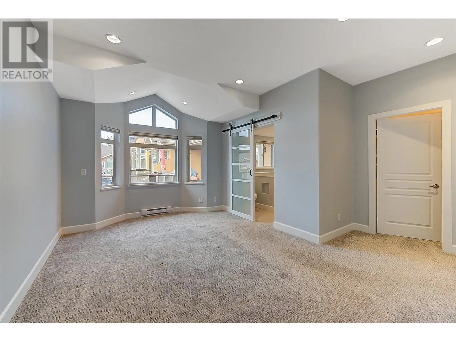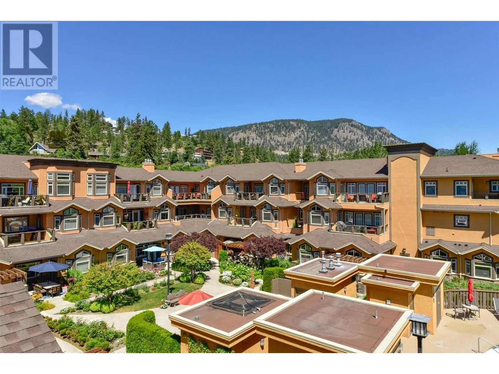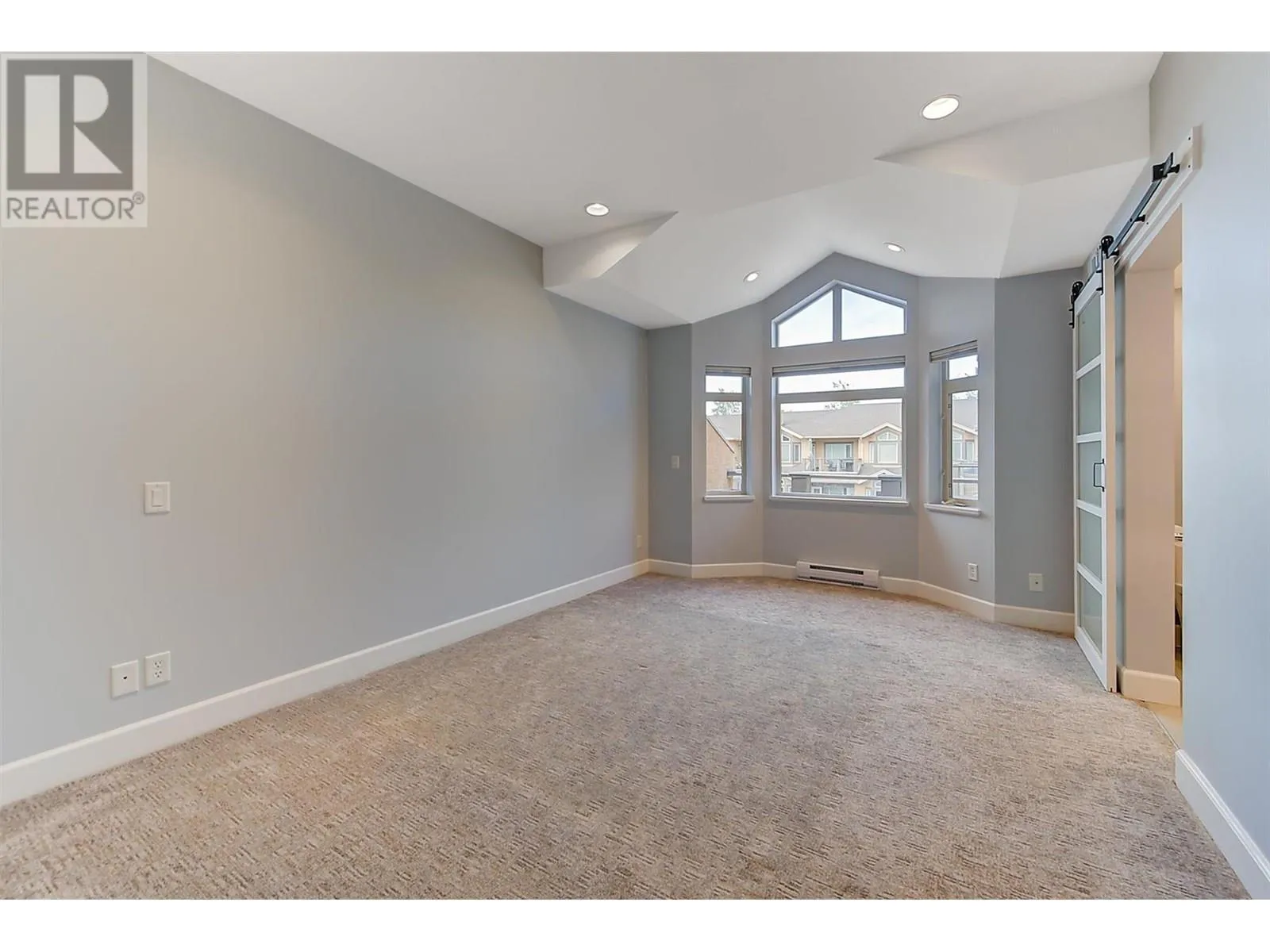 Experience the pinnacle of lakeside luxury in this fully renovated top-floor penthouse at Lakeshore Gardens. Spanning 1,748 square feet, this 3-bedroom, 2-bath retreat offers sweeping views of the lake, pool, and gardens from an oversized double-deck balcony. Inside, vaulted ceilings and high-end finishes create an ambiance of elegance and comfort. The gourmet kitchen is a chefâs dream, outfitted with granite countertops, custom soft-close cabinetry, pull-out drawers, and a premium gas range. In the living room, a striking floor-to-ceiling gas fireplace serves as the centrepiece, while stylish vinyl-coated laminate flooring, luxe tile in the bathrooms, and plush carpeting in the bedrooms add warmth throughout. The primary suite is a private haven with a walk-in closet and spa-like ensuite featuring quartz countertops, a deep soaker tub, and a rainfall shower. A brand-new heat pump, installed in December 2024, ensures optimal climate control year-round. Residents enjoy resort-style amenities including a heated pool, year-round hot tub, full-service gym, secure kayak and bike storage, boat launch, social hall, private storage unit, and two guest suites. Just steps from the shores of Okanagan Lake, this move-in-ready penthouse blends tranquil views with upscale livingâan opportunity not to be missed. Schedule your private viewing today and step into your new lakeside lifestyle. (id:27476)