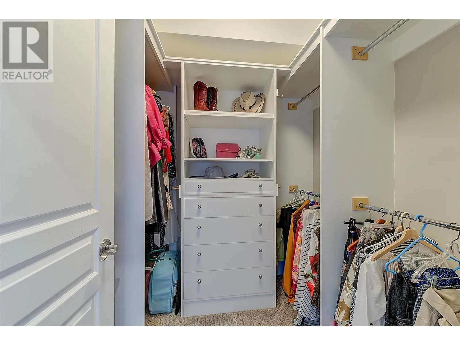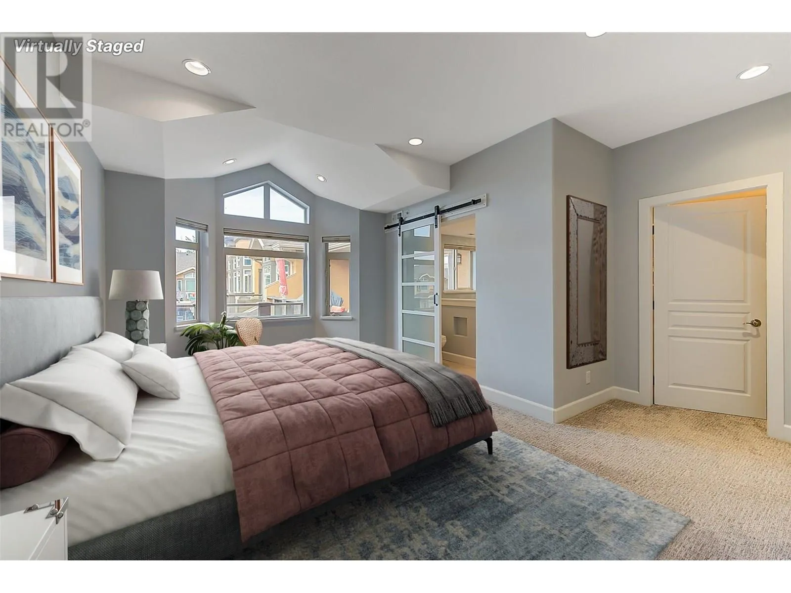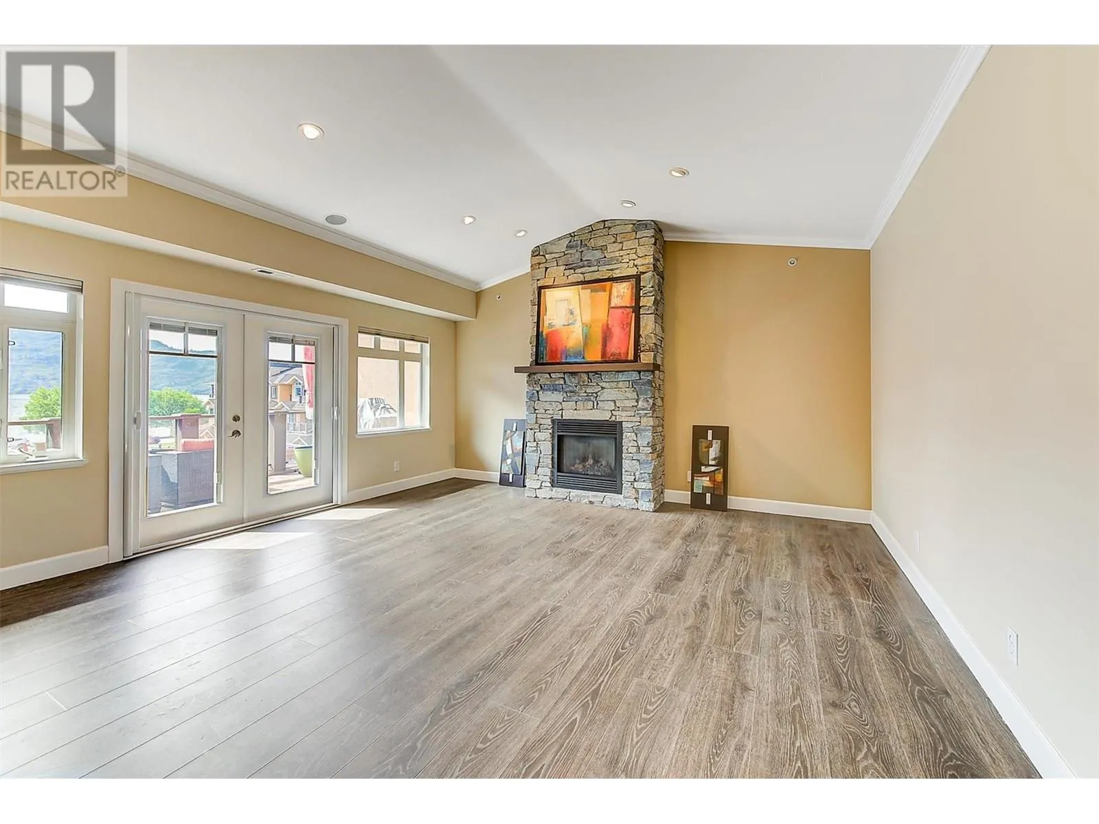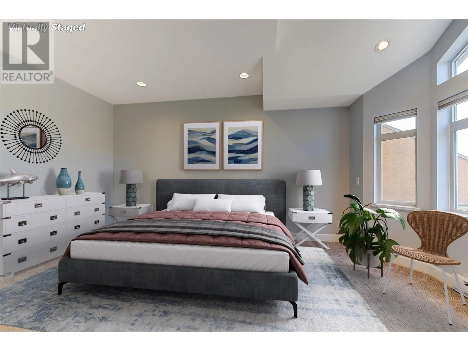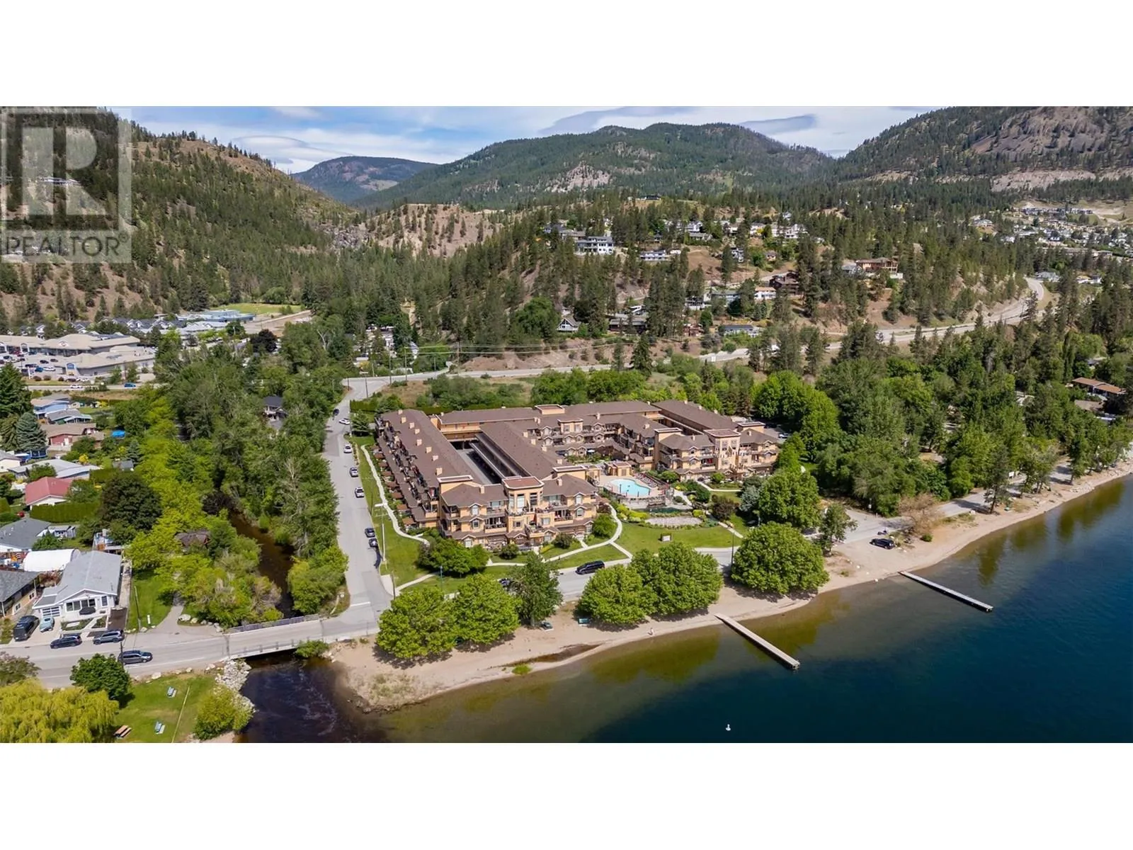 Experience the pinnacle of lakeside luxury in this fully renovated top-floor penthouse at Lakeshore Gardens. Spanning 1,748 square feet, this 3-bedroom, 2-bath retreat offers sweeping views of the lake, pool, and gardens from an oversized double-deck balcony. Inside, vaulted ceilings and high-end finishes create an ambiance of elegance and comfort. The gourmet kitchen is a chefâs dream, outfitted with granite countertops, custom soft-close cabinetry, pull-out drawers, and a premium gas range. In the living room, a striking floor-to-ceiling gas fireplace serves as the centrepiece, while stylish vinyl-coated laminate flooring, luxe tile in the bathrooms, and plush carpeting in the bedrooms add warmth throughout. The primary suite is a private haven with a walk-in closet and spa-like ensuite featuring quartz countertops, a deep soaker tub, and a rainfall shower. A brand-new heat pump, installed in December 2024, ensures optimal climate control year-round. Residents enjoy resort-style amenities including a heated pool, year-round hot tub, full-service gym, secure kayak and bike storage, boat launch, social hall, private storage unit, and two guest suites. Just steps from the shores of Okanagan Lake, this move-in-ready penthouse blends tranquil views with upscale livingâan opportunity not to be missed. Schedule your private viewing today and step into your new lakeside lifestyle. (id:27476)