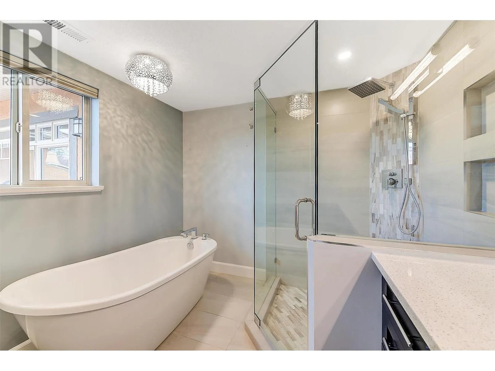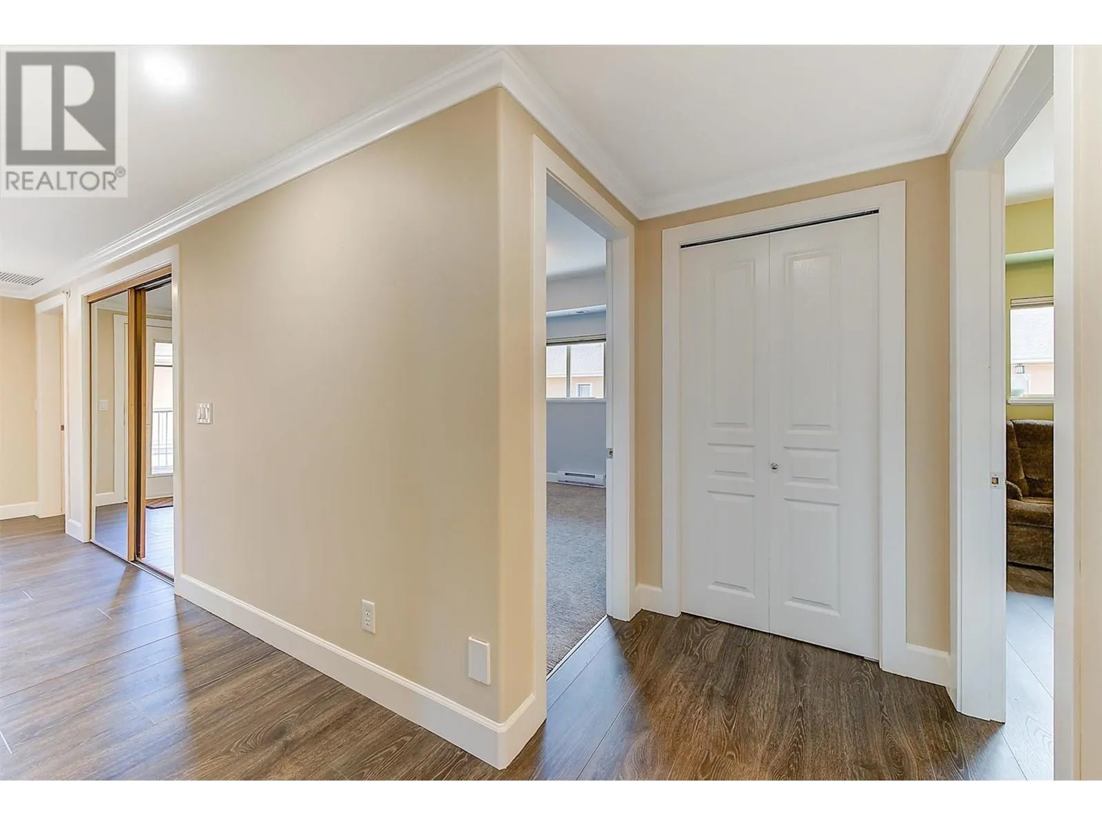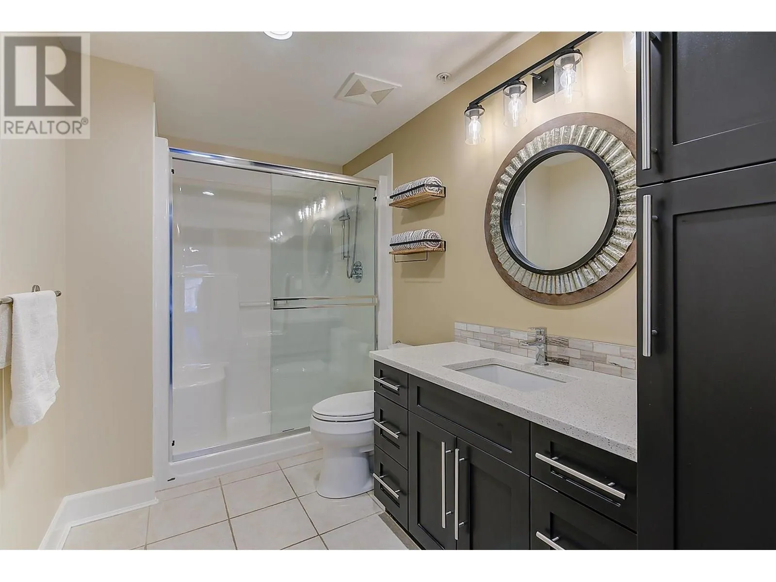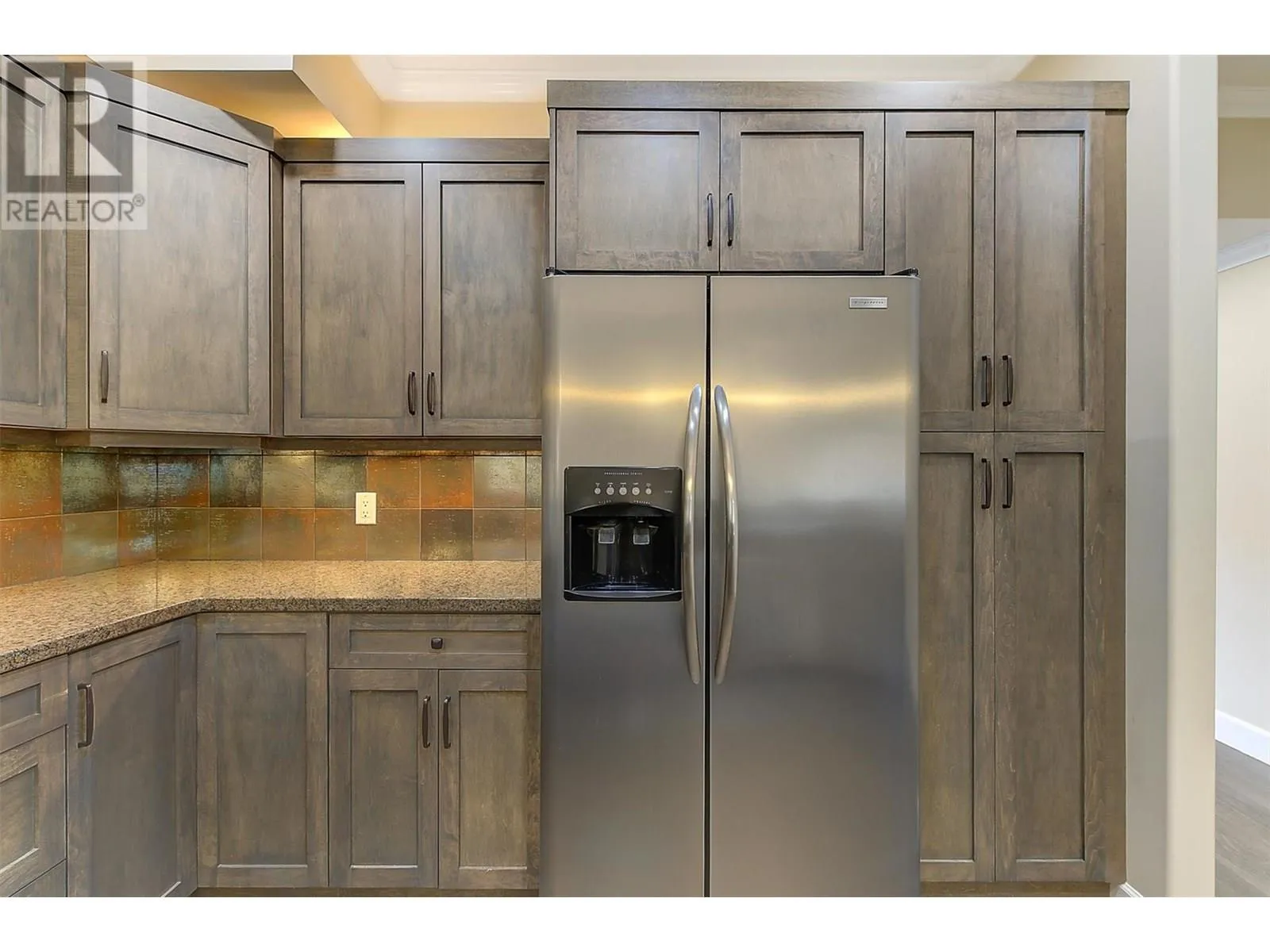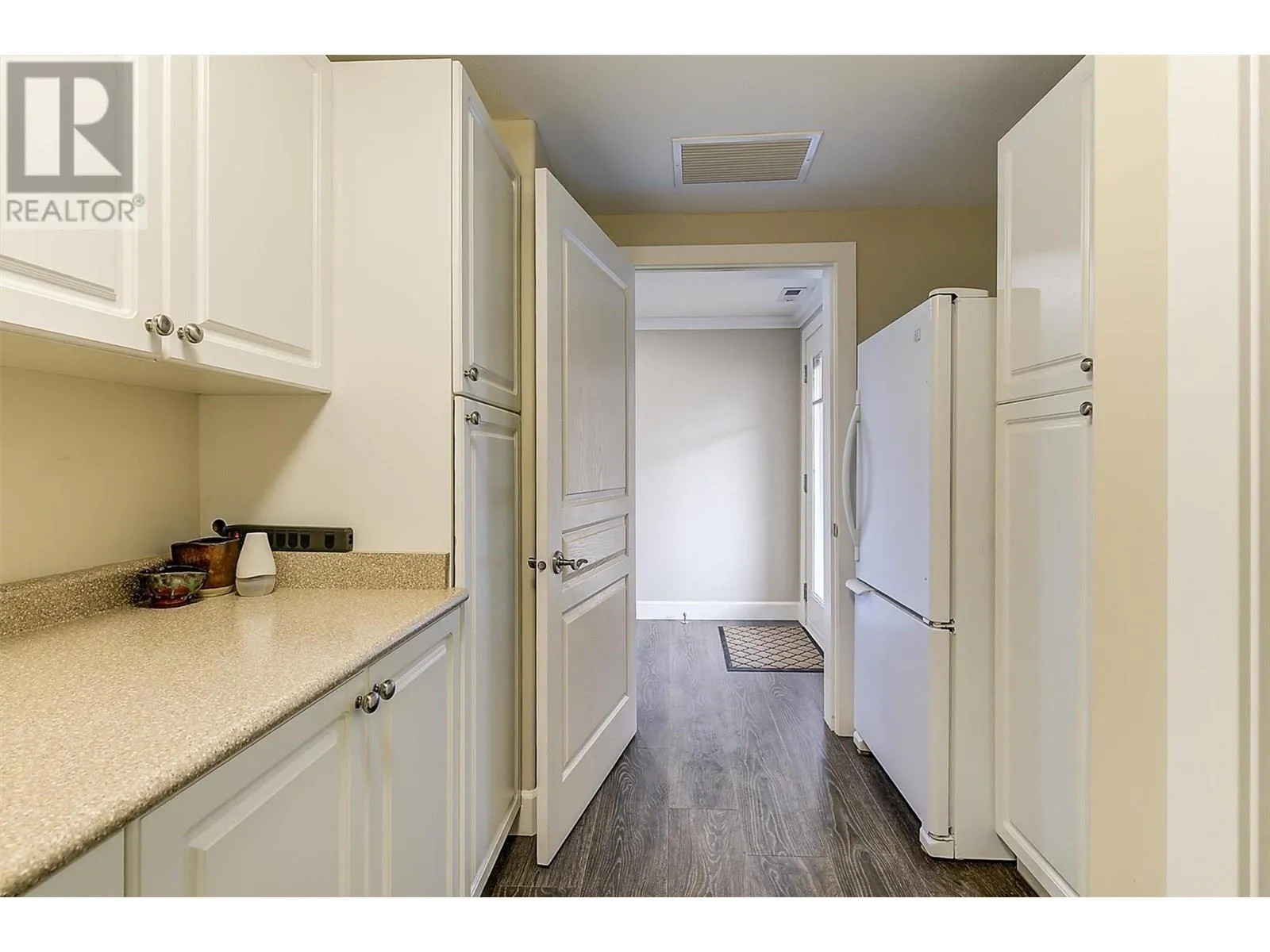 Experience the pinnacle of lakeside luxury in this fully renovated top-floor penthouse at Lakeshore Gardens. Spanning 1,748 square feet, this 3-bedroom, 2-bath retreat offers sweeping views of the lake, pool, and gardens from an oversized double-deck balcony. Inside, vaulted ceilings and high-end finishes create an ambiance of elegance and comfort. The gourmet kitchen is a chefâs dream, outfitted with granite countertops, custom soft-close cabinetry, pull-out drawers, and a premium gas range. In the living room, a striking floor-to-ceiling gas fireplace serves as the centrepiece, while stylish vinyl-coated laminate flooring, luxe tile in the bathrooms, and plush carpeting in the bedrooms add warmth throughout. The primary suite is a private haven with a walk-in closet and spa-like ensuite featuring quartz countertops, a deep soaker tub, and a rainfall shower. A brand-new heat pump, installed in December 2024, ensures optimal climate control year-round. Residents enjoy resort-style amenities including a heated pool, year-round hot tub, full-service gym, secure kayak and bike storage, boat launch, social hall, private storage unit, and two guest suites. Just steps from the shores of Okanagan Lake, this move-in-ready penthouse blends tranquil views with upscale livingâan opportunity not to be missed. Schedule your private viewing today and step into your new lakeside lifestyle. (id:27476)
