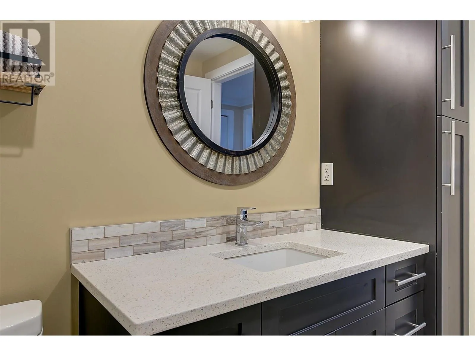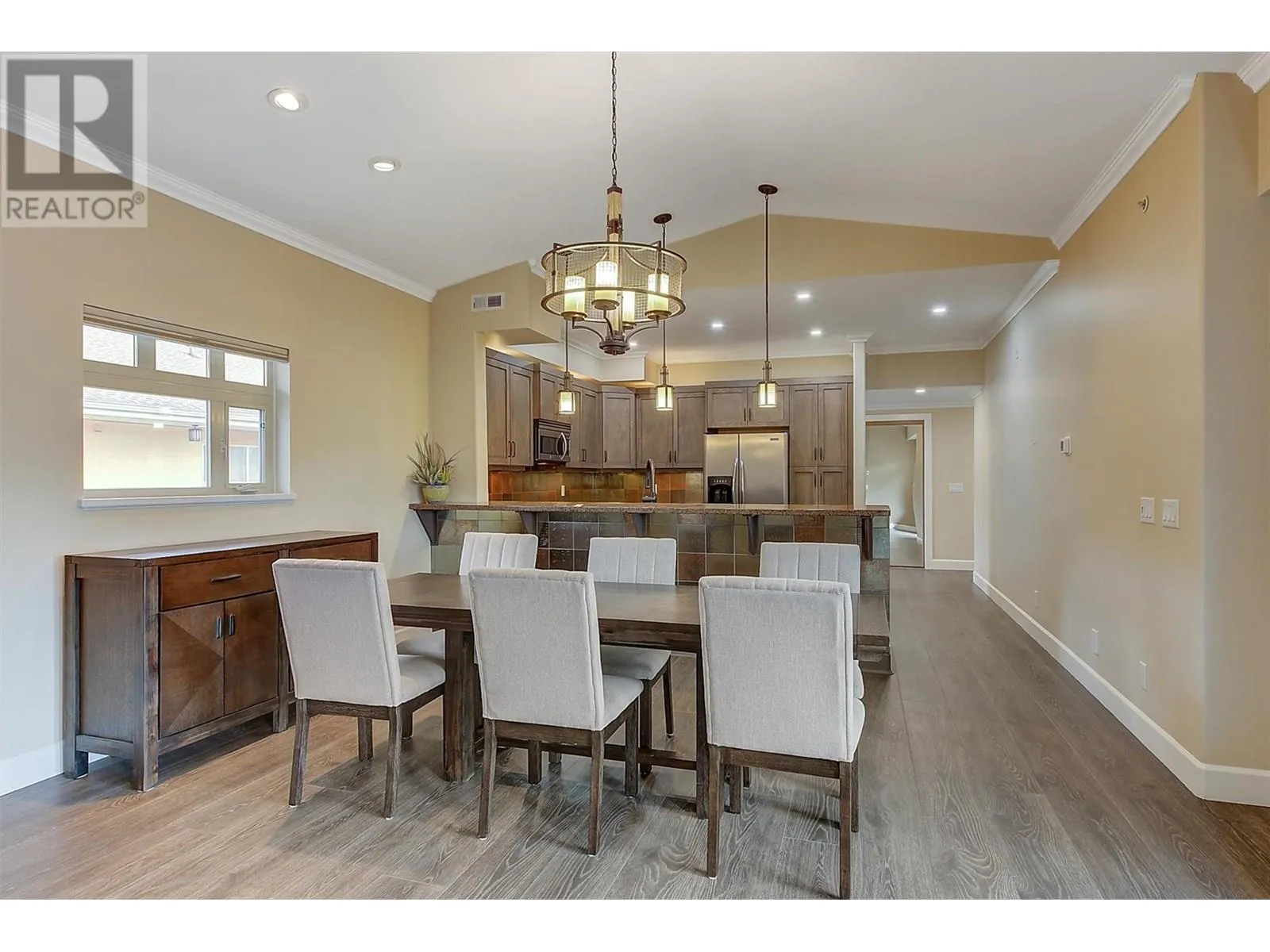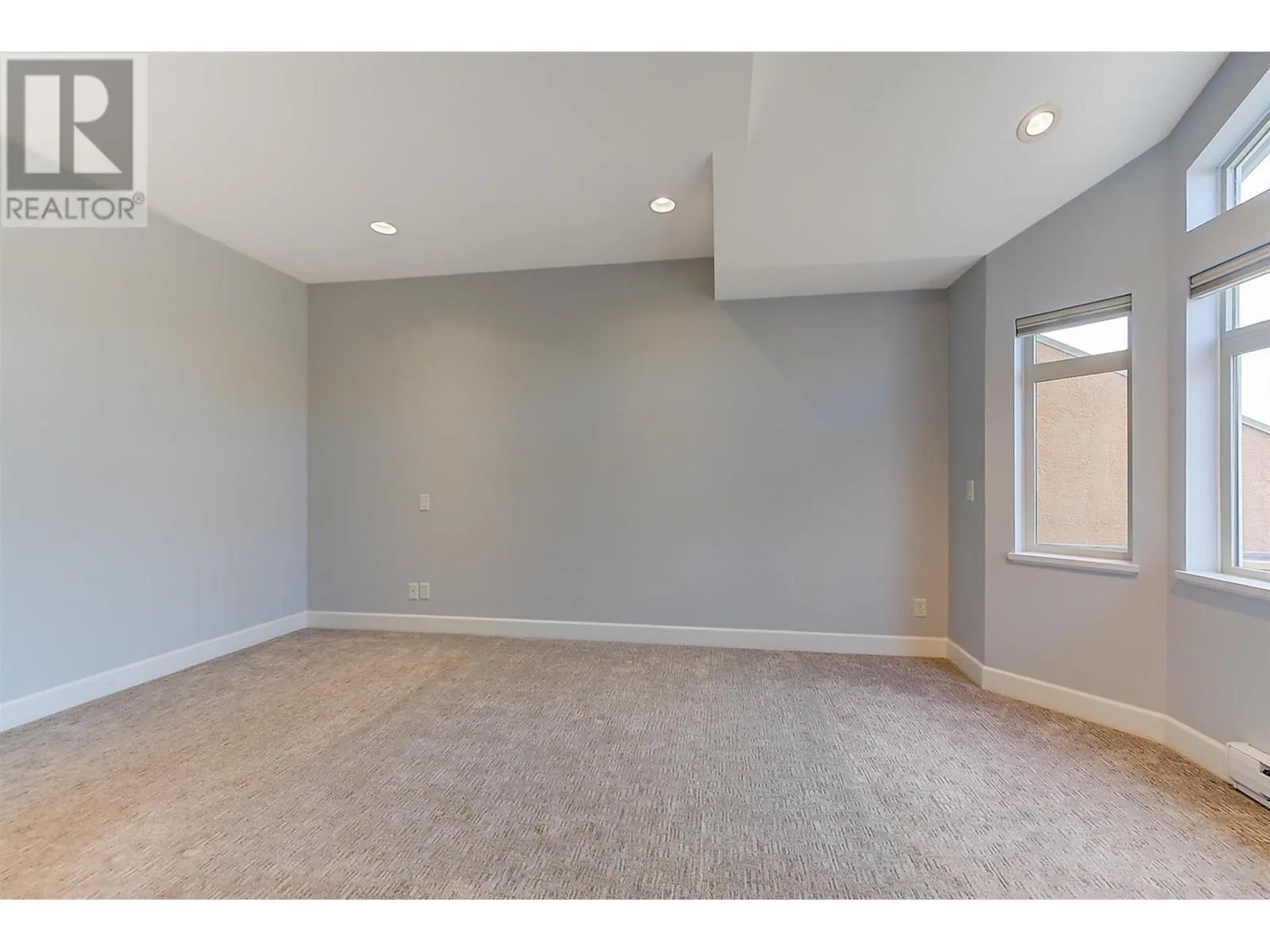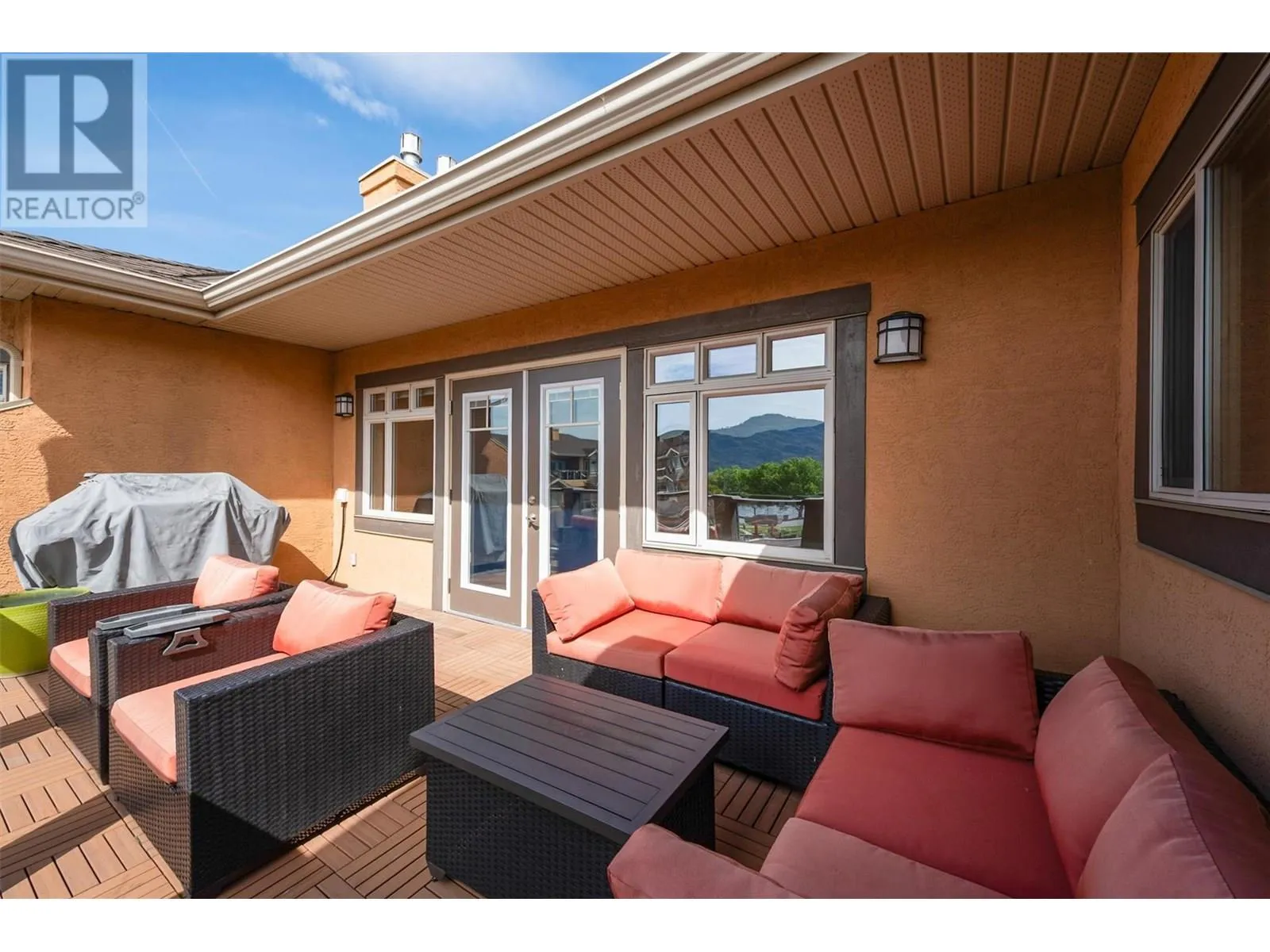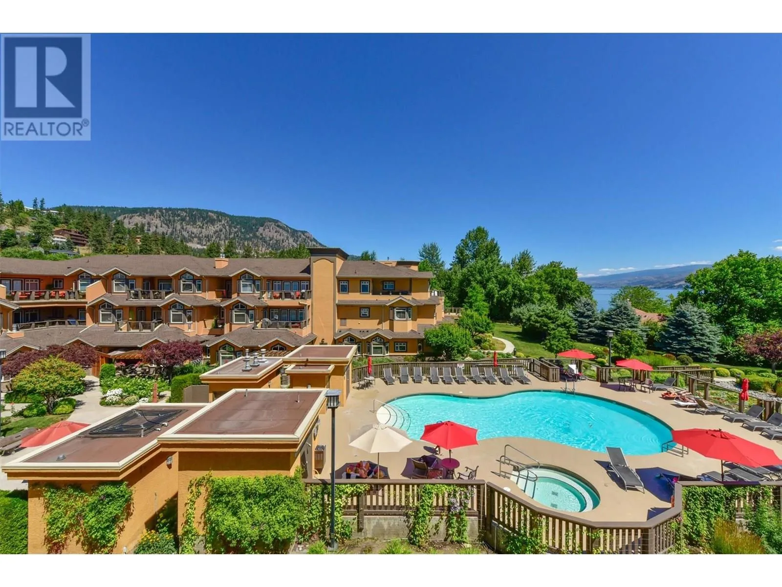 Experience the pinnacle of lakeside luxury in this fully renovated top-floor penthouse at Lakeshore Gardens. Spanning 1,748 square feet, this 3-bedroom, 2-bath retreat offers sweeping views of the lake, pool, and gardens from an oversized double-deck balcony. Inside, vaulted ceilings and high-end finishes create an ambiance of elegance and comfort. The gourmet kitchen is a chefâs dream, outfitted with granite countertops, custom soft-close cabinetry, pull-out drawers, and a premium gas range. In the living room, a striking floor-to-ceiling gas fireplace serves as the centrepiece, while stylish vinyl-coated laminate flooring, luxe tile in the bathrooms, and plush carpeting in the bedrooms add warmth throughout. The primary suite is a private haven with a walk-in closet and spa-like ensuite featuring quartz countertops, a deep soaker tub, and a rainfall shower. A brand-new heat pump, installed in December 2024, ensures optimal climate control year-round. Residents enjoy resort-style amenities including a heated pool, year-round hot tub, full-service gym, secure kayak and bike storage, boat launch, social hall, private storage unit, and two guest suites. Just steps from the shores of Okanagan Lake, this move-in-ready penthouse blends tranquil views with upscale livingâan opportunity not to be missed. Schedule your private viewing today and step into your new lakeside lifestyle. (id:27476)