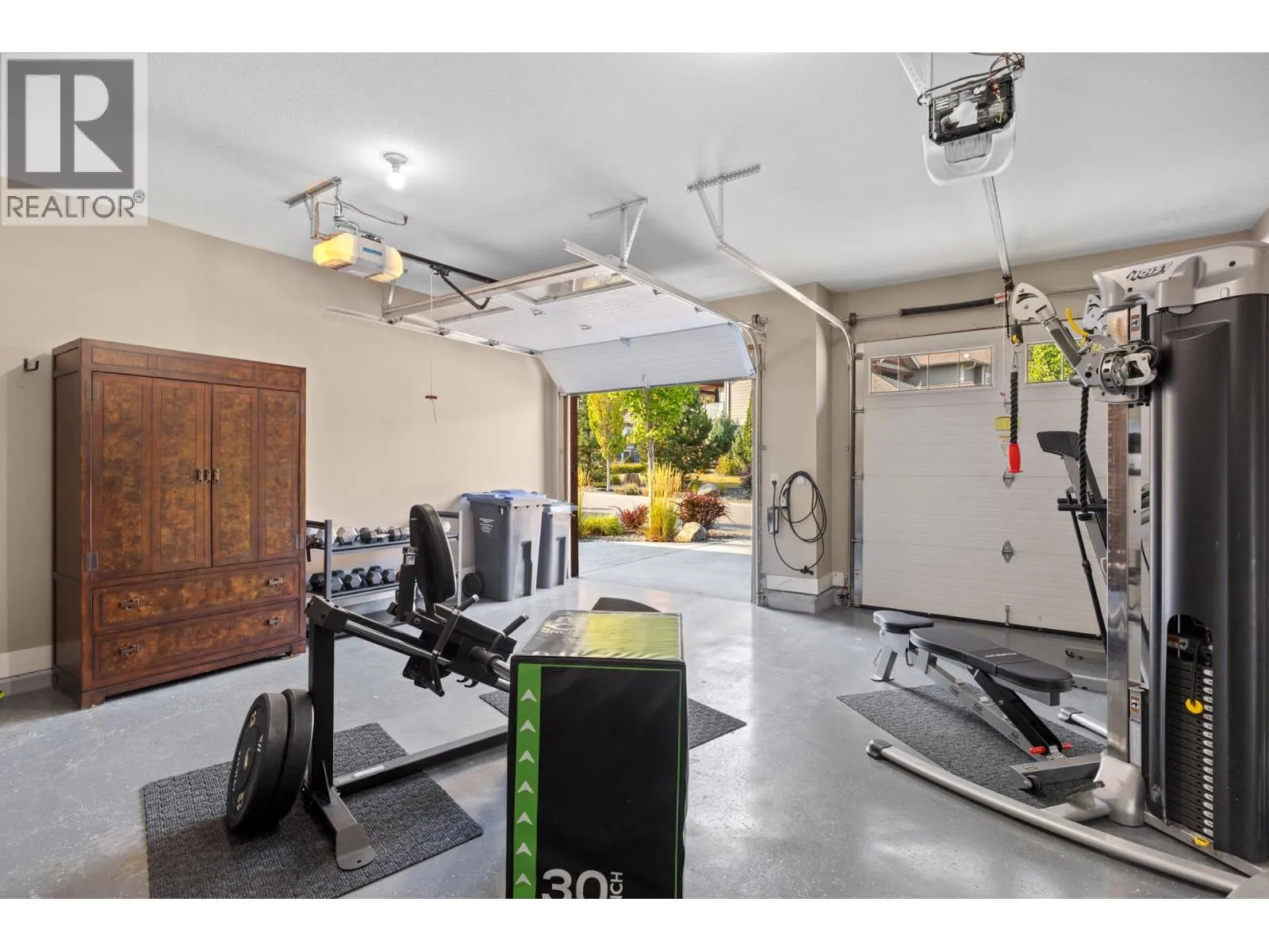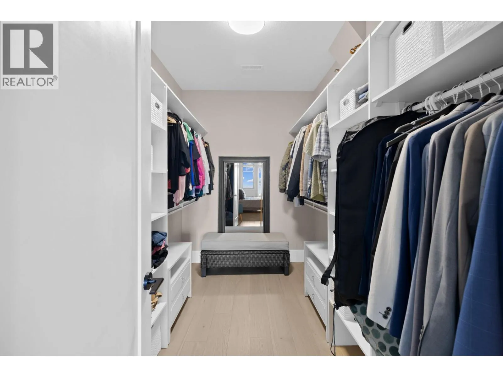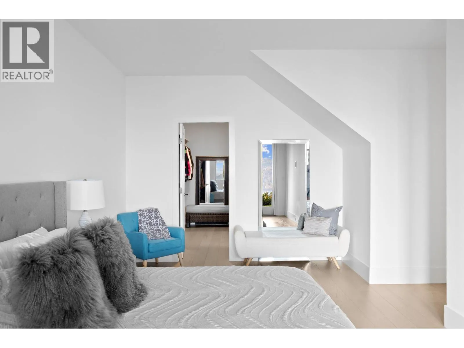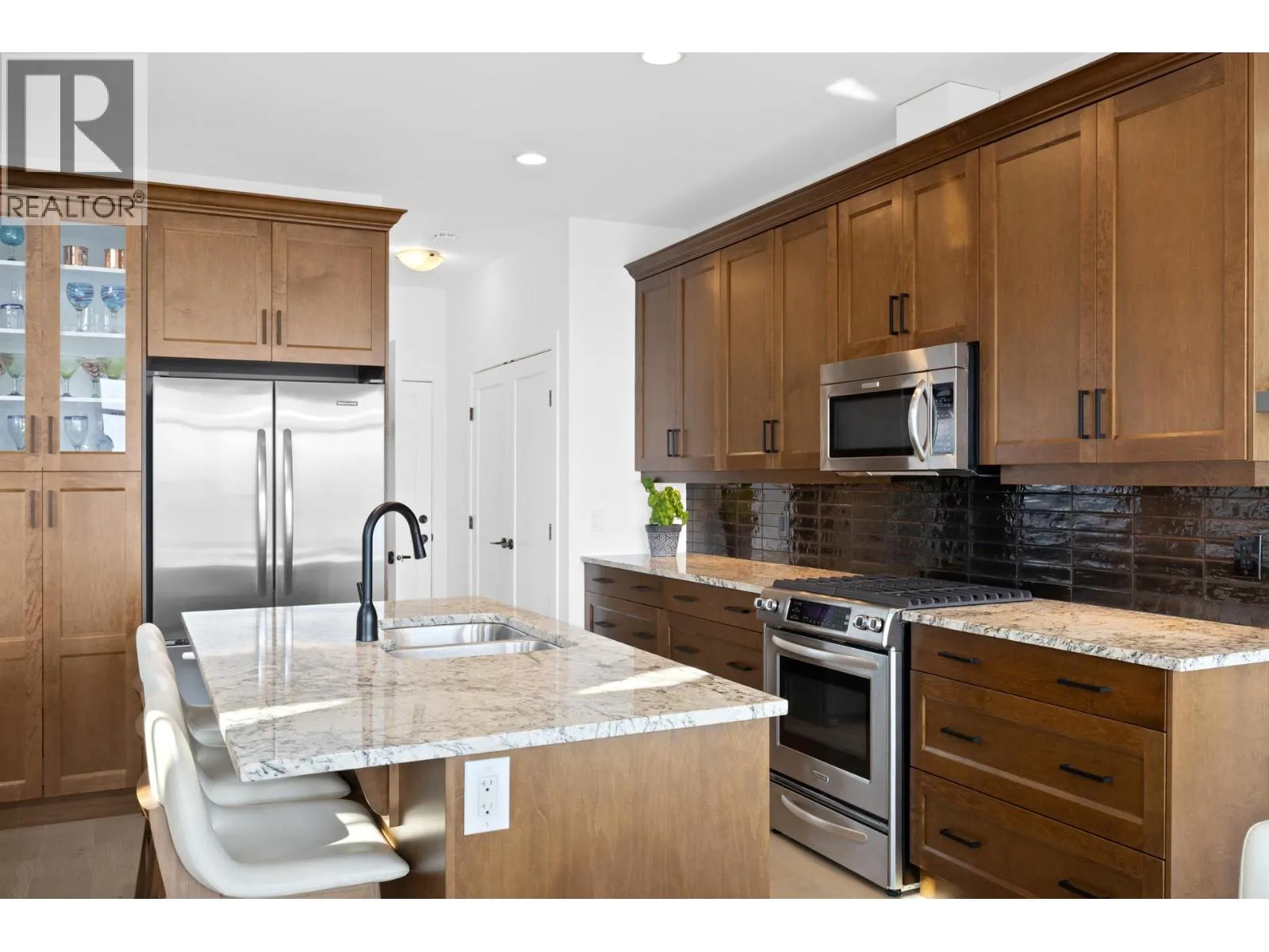 Experience breathtaking panoramic lake and mountain views from nearly every room in this exceptional 2â3 bedroom, 2.5-bath walk-out rancher. Perfectly positioned above the charming lakeside town of Peachland, this home blends tranquility, privacy, and convenience in one stunning package. The bright, open-concept main level features vaulted ceilings, expansive windows that capture the Okanaganâs beauty, and blonde oak Baylor engineered hardwood floors that add warmth and sophistication. Step onto the spacious deck with a natural-gas BBQ hookup â perfect for entertaining, relaxing, or soaking in sunsets over the water. A cozy gas fireplace anchors the living area for year-round comfort and ambiance. The primary suite is a true retreat with French doors to a private patio, a luxurious 5-piece ensuite with heated tile floors, and a generous walk-in closet. The lower level offers an additional bedroom plus a flexible media or guest room with a wet bar, linear electric fireplace, and built-in Murphy bed â ideal as a third bedroom or guest suite. Energy-efficient geothermal heating and cooling ensure comfort through every season. Located in The Trails, youâll enjoy easy access to hiking and biking paths, the vibrant lakefront boardwalk, and Peachlandâs cafés, marina, and waterfront restaurants â all next to an approved 9-hole golf course and surrounded by natural beauty. (id:27476)