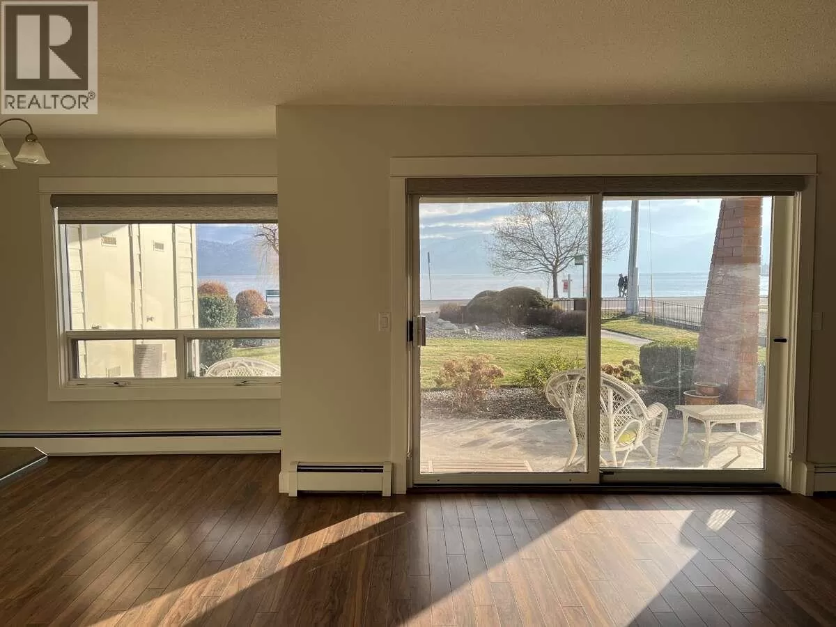 For more information, please click Brochure button. Welcome to Chateaux On The Lake, an exclusive 55+ community of only 18 units on two acres along scenic Beach Avenue. This rare corner ground-floor garden suite offers 1,230 sq. ft. with two bedrooms and two bathrooms, including a main with tub/shower and a primary ensuite with shower. A bright white kitchen with slow-close cabinets, quality stainless steel appliances, and open concept living and dining create a warm, inviting layout. Enjoy a stone fireplace with a high-end, heat-efficient gas insert, custom built-in closet organizers, and a year-round covered patioâshaded in summer and maintenance-free in winter. The south-end location is set back from Beach Avenue, offering cool summers, bright winters, and unique privacy with no vehicles parking in front, keeping your lake view open. Updates include a Navien hot water/heating unit, electrical upgrades, hardy plank siding, refreshed patio/entrance, plus recent Radon gas mitigation for the entire complex. One covered parking stall includes an attached storage room, with an additional outdoor storage area and crawl space access. RV/boat parking is available. Two convenient ground-floor access points provide both patio and carport entry. Strata fees are $361.89/month. Please note, pets are not permitted. Experience peaceful, carefree living in this rare ground-floor gem at Chateaux On The Lake. (id:27476)