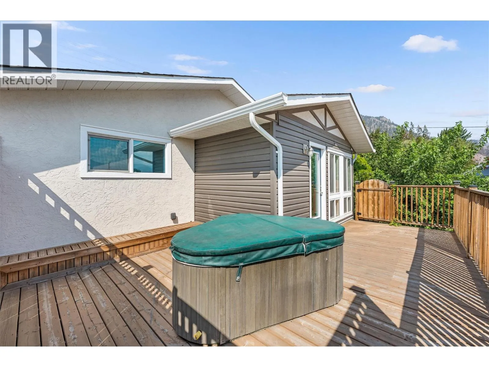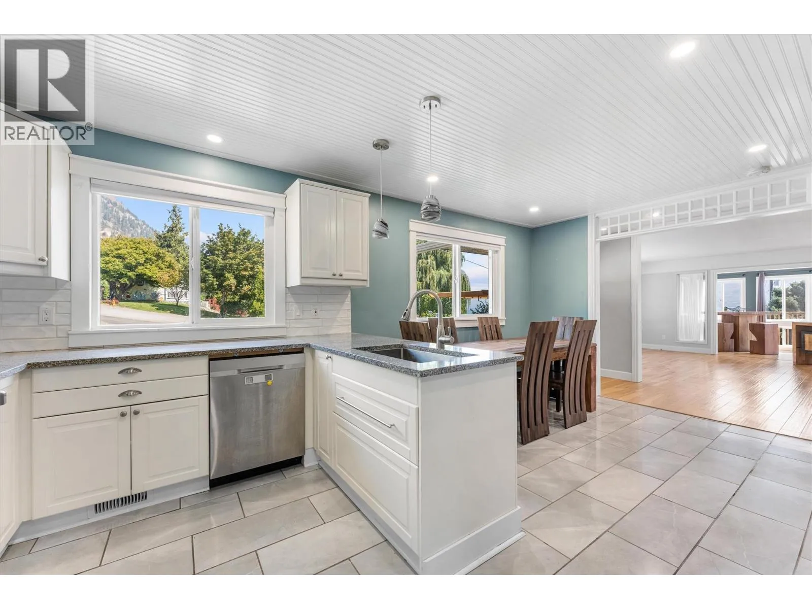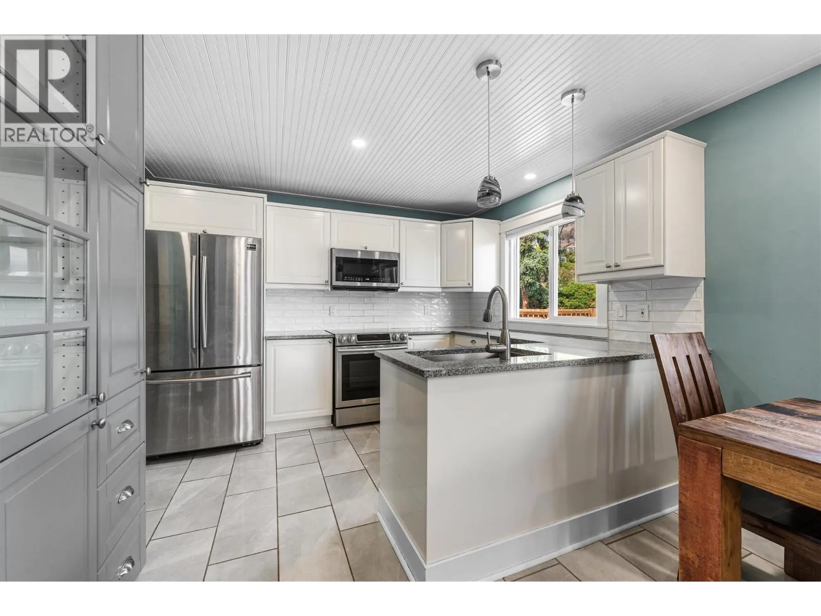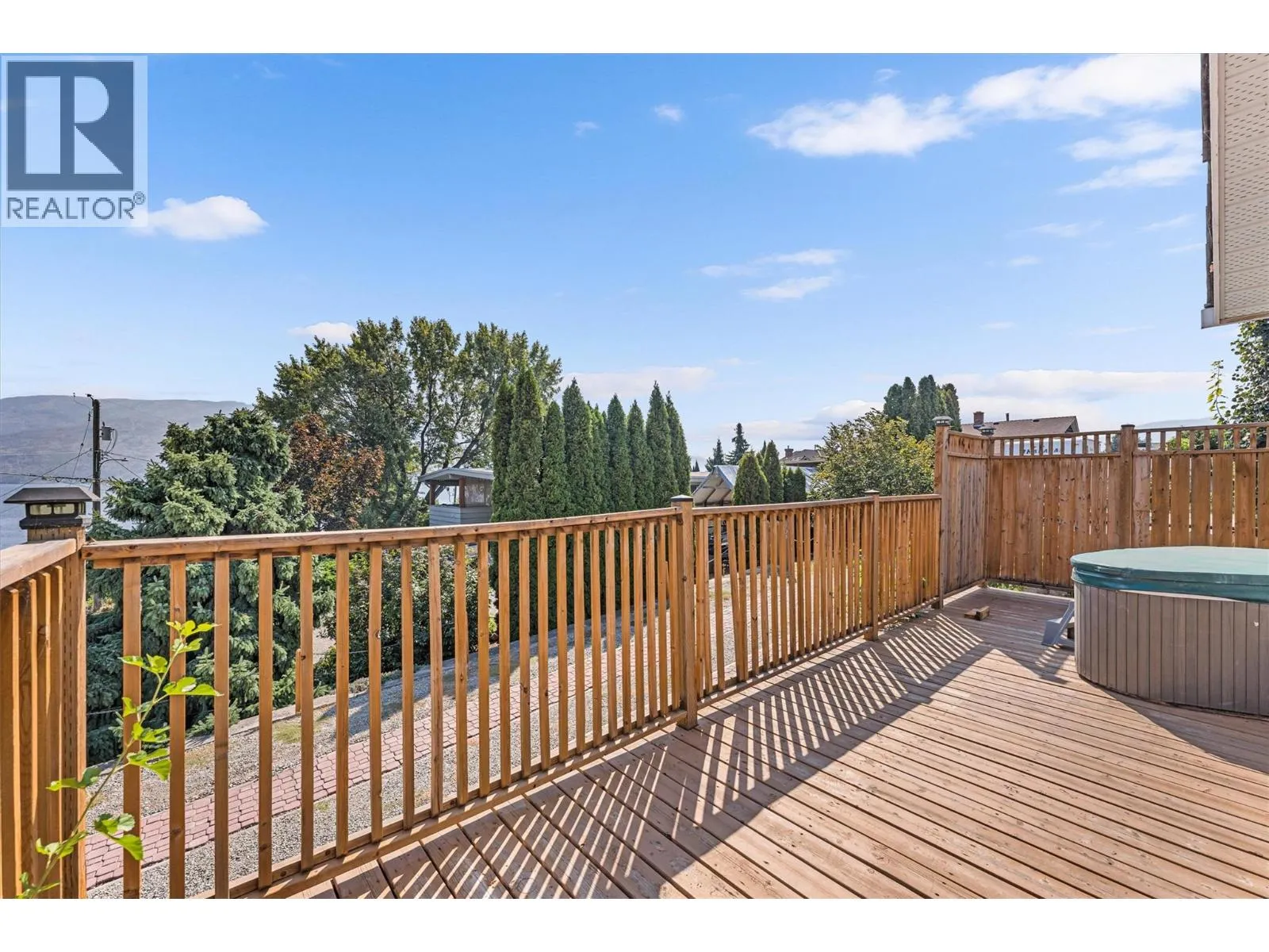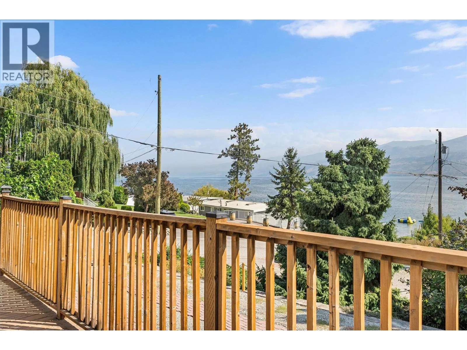 Welcome to easy Okanagan living in the heart of Peachlandâjust steps from the lake and minutes from downtown Beach Ave. This fully renovated 3-bedroom, 2.5-bath rancher offers 1,782 sq. ft. of beautifully designed one-level living, perfect for young families, empty nesters, or anyone seeking a downsized lifestyle without compromise. Each bedroom includes its own ensuite, giving everyone comfort and privacy. The open-concept kitchen boasts quartz countertops, stainless steel appliances, and an expansive floor-to-ceiling pantry. Gorgeous hardwood floors flow throughout, while updated bathrooms bring a modern touch. The spacious primary suite is complete with a versatile bonus roomâideal for a home office, yoga retreat, or cozy reading nook. Step outside to your large deck, where you can unwind in the hot tub while taking in breathtaking views of Lake Okanagan and the surrounding mountains. With the lake across the street and Bliss Bakery just a quick drive away, this home combines convenience, relaxation, and the best of the Okanagan lifestyle. (id:27476)