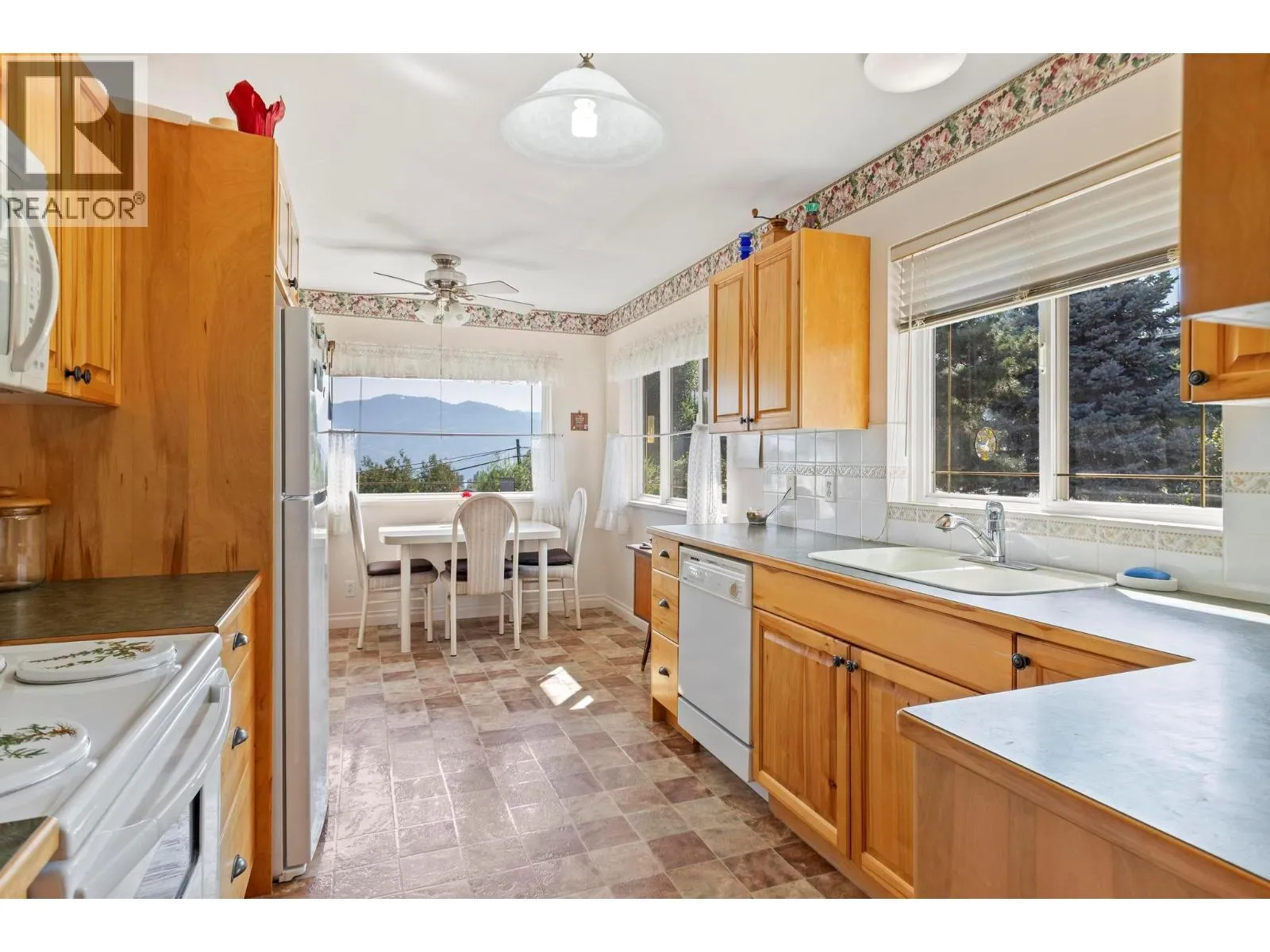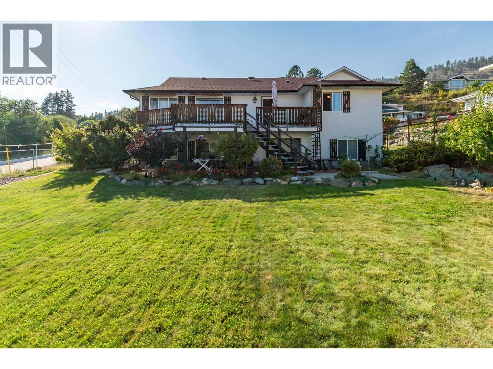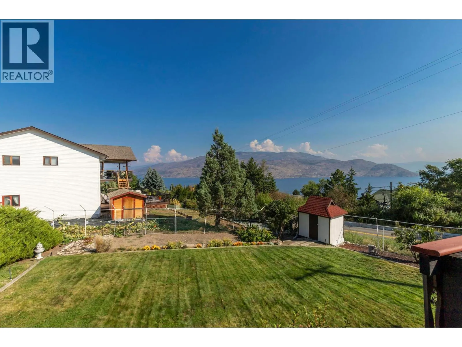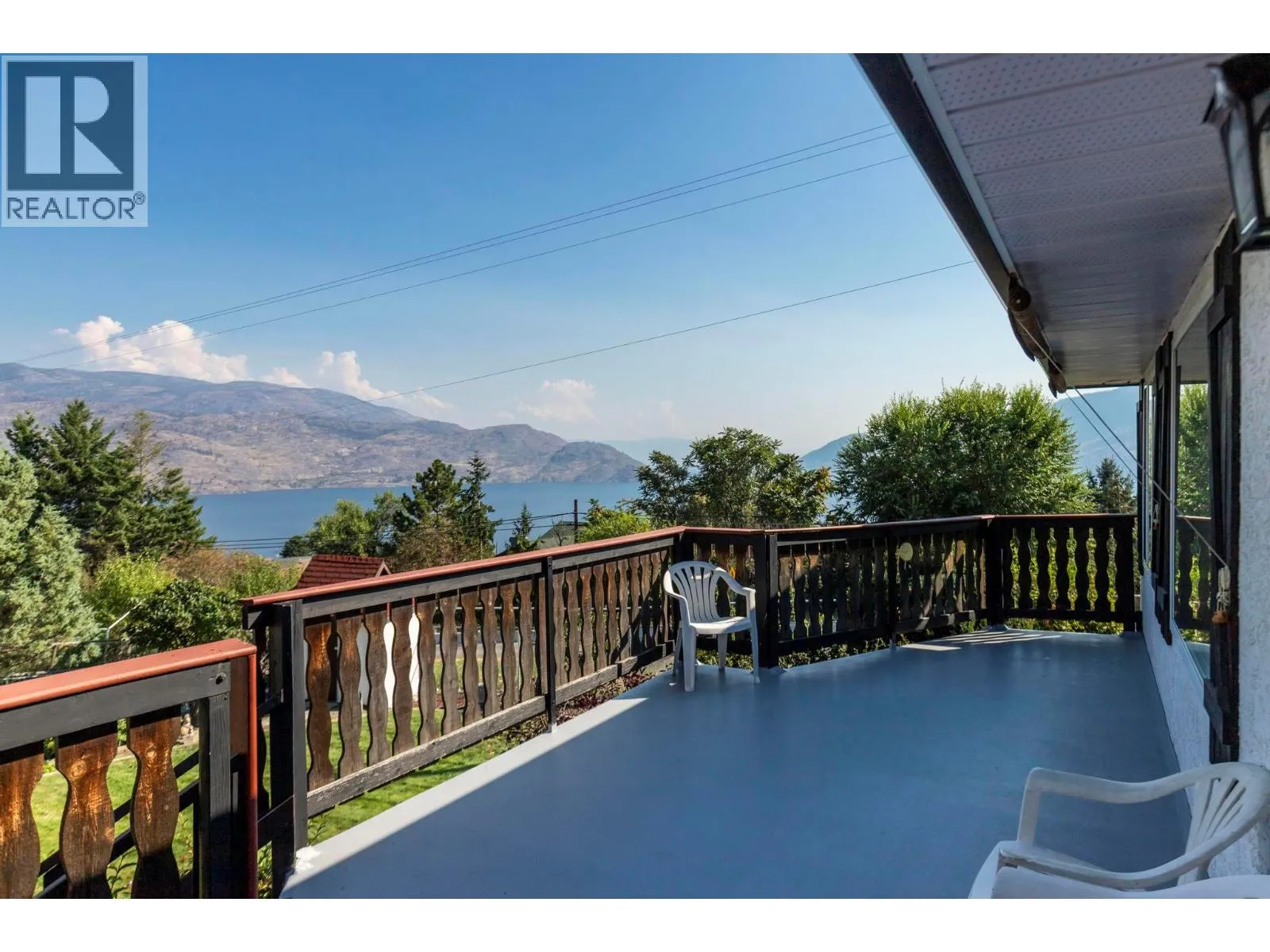 Welcome to this custom-built 4 bed, 3 bath rancher in Peachland, offering 2,445 sq. ft. of meticulously maintained living space with breathtaking lake views. Proudly offered for the very first time, this one-owner home has never been for sale before. Just minutes from Okanagan Lake, it showcases a bright and spacious main floor where large windows frame the water and mountain scenery. The kitchen and dining area flow seamlessly to a huge lakeview deck, perfect for entertaining or relaxing, while the lower covered patio provides another private outdoor retreat. The main bathroom features a jacuzzi tub, and the downstairs includes a wet bar, rec room, and separate entranceâmaking it easily suitable for extended family or a suite. Recent updates include a new roof and eavestroughs (2023). The fully fenced property is a gardenerâs dream, boasting fruit trees, vegetables, colorful flower beds, a large flat yard, and a charming grape arbour. Inside, the double garage and ample driveway parking add convenience. With pride of ownership evident throughout, this home blends comfort, functionality, and lifestyle in one of Peachlandâs most desirable settings, minutes from beaches, Okanagan Lake, shops, restaurants, wineries, and scenic hiking trails. Whether youâre seeking a peaceful retirement retreat, family home with room to grow, or a property with suite potential for added income, this rare offering truly captures the Okanagan lifestyle. (id:27476)