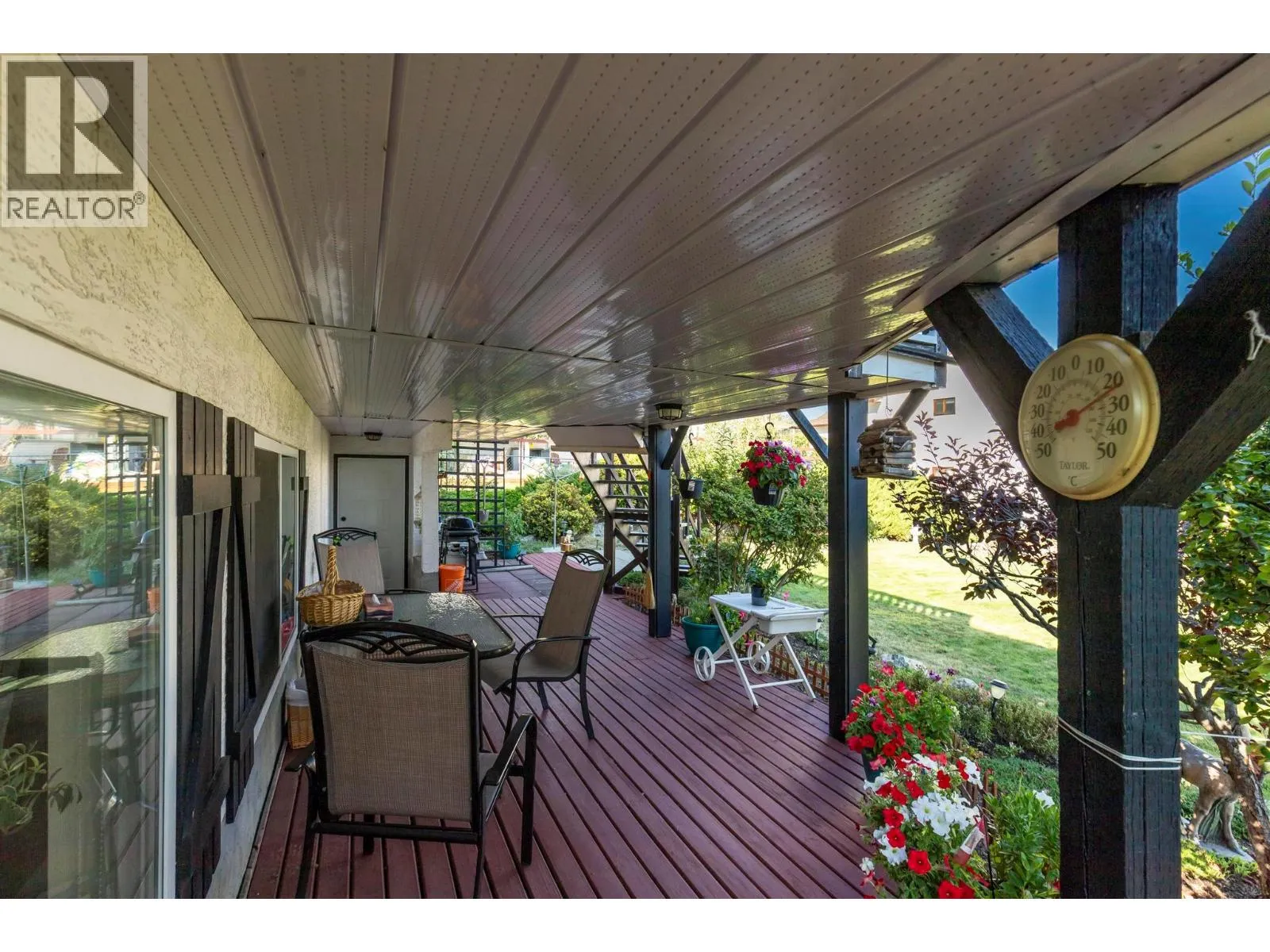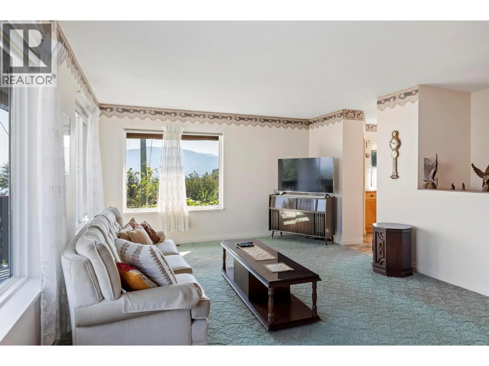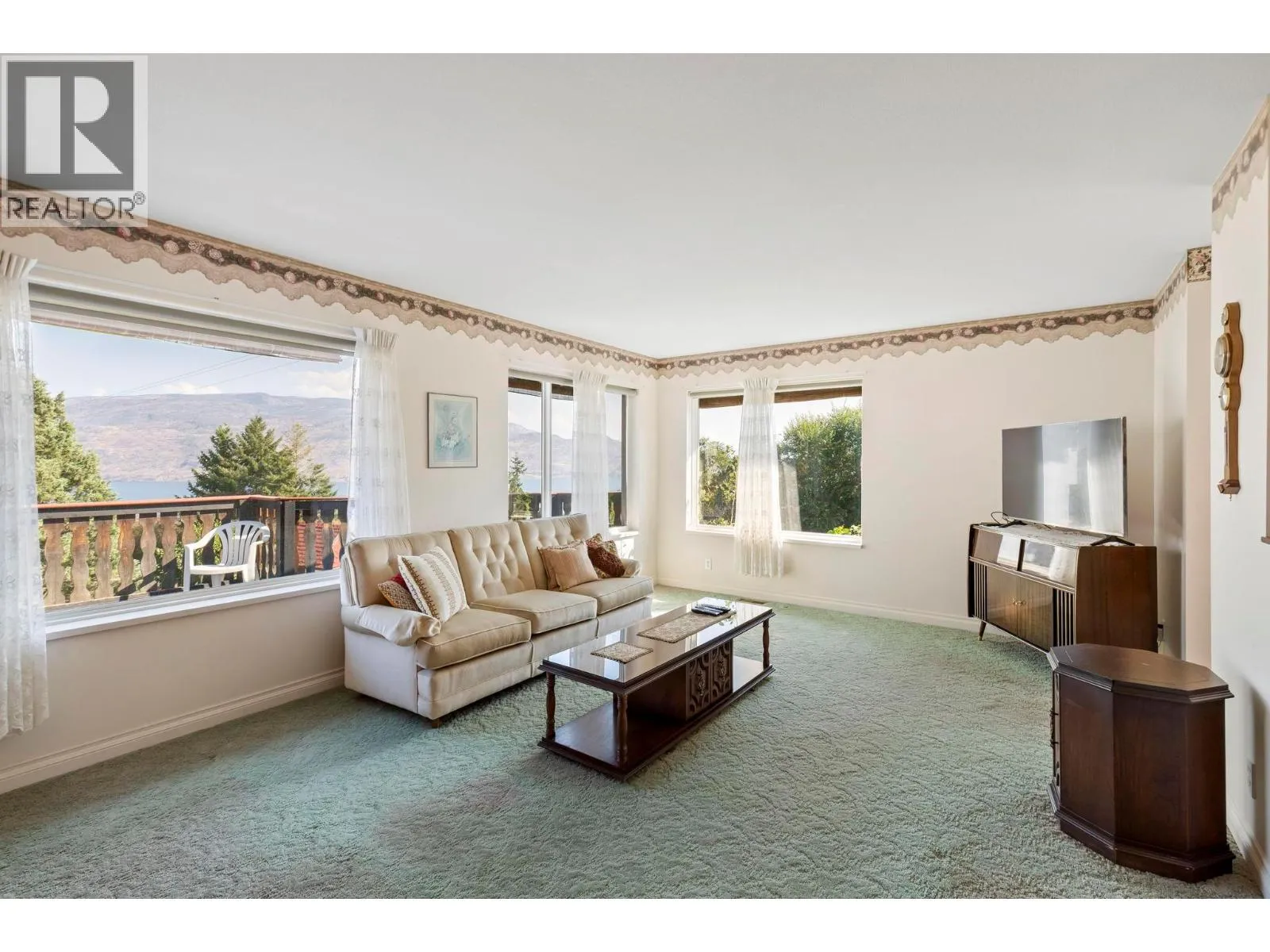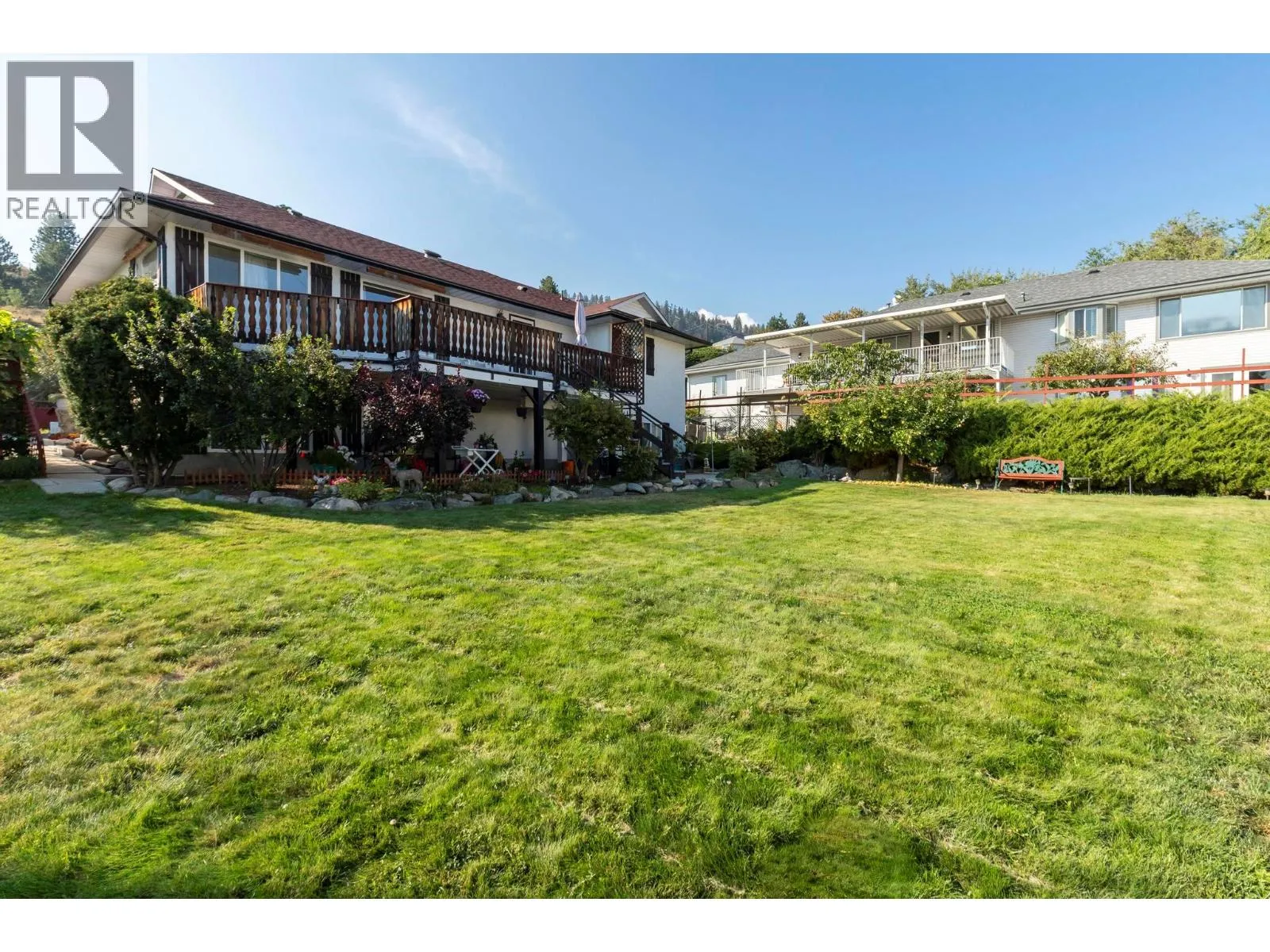Welcome to this custom-built 4 bed, 3 bath rancher in Peachland, offering 2,445 sq. ft. of meticulously maintained living space with breathtaking lake views. Proudly offered for the very first time, this one-owner home has never been for sale before. Just minutes from Okanagan Lake, it showcases a bright and spacious main floor where large windows frame the water and mountain scenery. The kitchen and dining area flow seamlessly to a huge lakeview deck, perfect for entertaining or relaxing, while the lower covered patio provides another private outdoor retreat. The main bathroom features a jacuzzi tub, and the downstairs includes a wet bar, rec room, and separate entranceâmaking it easily suitable for extended family or a suite. Recent updates include a new roof and eavestroughs (2023). The fully fenced property is a gardenerâs dream, boasting fruit trees, vegetables, colorful flower beds, a large flat yard, and a charming grape arbour. Inside, the double garage and ample driveway parking add convenience. With pride of ownership evident throughout, this home blends comfort, functionality, and lifestyle in one of Peachlandâs most desirable settings, minutes from beaches, Okanagan Lake, shops, restaurants, wineries, and scenic hiking trails. Whether youâre seeking a peaceful retirement retreat, family home with room to grow, or a property with suite potential for added income, this rare offering truly captures the Okanagan lifestyle. (id:27476)