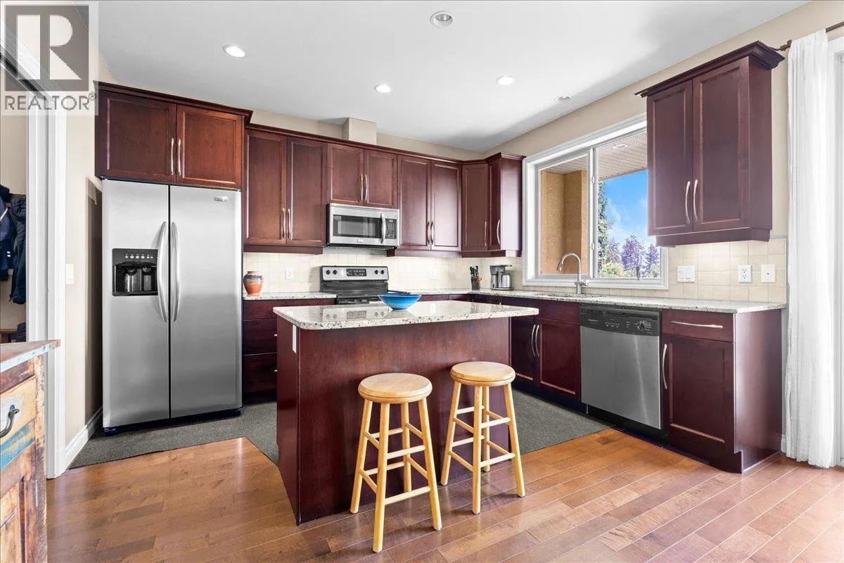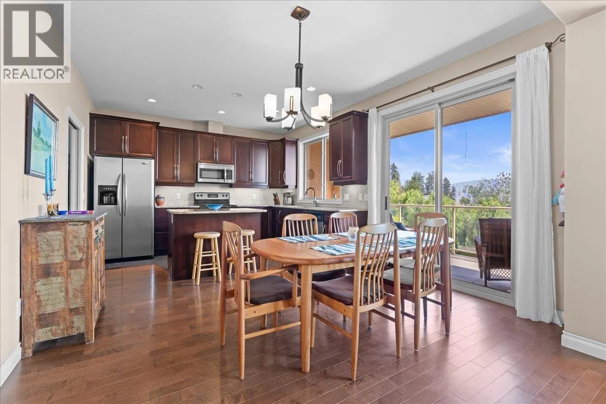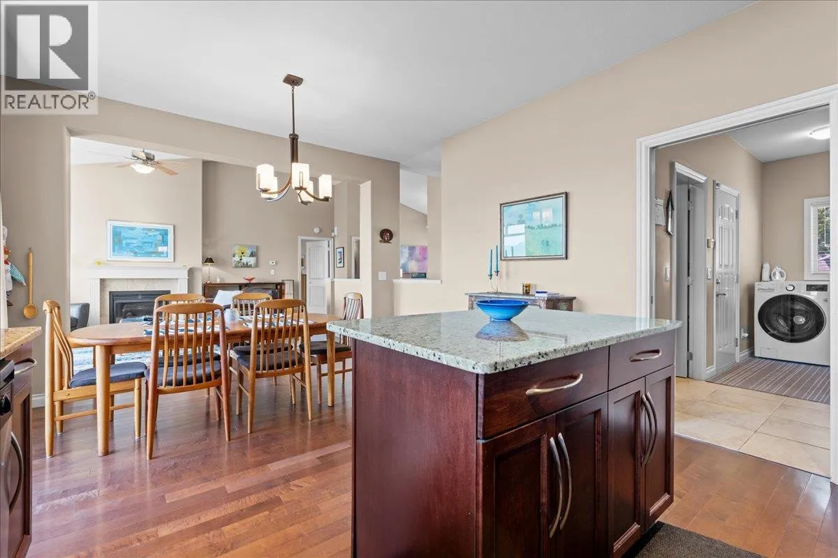 Enjoy spectacular Okanagan Lake and mountain views from every level of this beautiful rancher walkout in the sought-after Island View Villas. Designed for easy main-floor living, the home features large windows to capture the stunning scenery, hardwood floors, stainless steel appliances, cozy gas fireplace, spacious pantry, and a large laundry/mud room with convenient side door access. The primary bedroom features a walk-in closet and an en-suite bathroom with a soaker tub, shower, and dual sinks. The lower level is perfect for entertaining and relaxation, complete with a family room, rec/games room, office or gym space, a designated area for a future wine room, additional bedroom, full bathroom, a storage/utility room and access to a covered private patioâ all with beautiful lake and mountain views. The upper covered deck is ideal for entertaining while soaking in the breathtaking scenery and features a gas BBQ outlet. Additional highlights include a double garage, plus two extra parking stalls on the driveway, and access to a community clubhouse. All this, just minutes from shopping, restaurants, and amenities. The perfect place to embrace the Okanagan lifestyle â why settle for anything less? (id:27476)