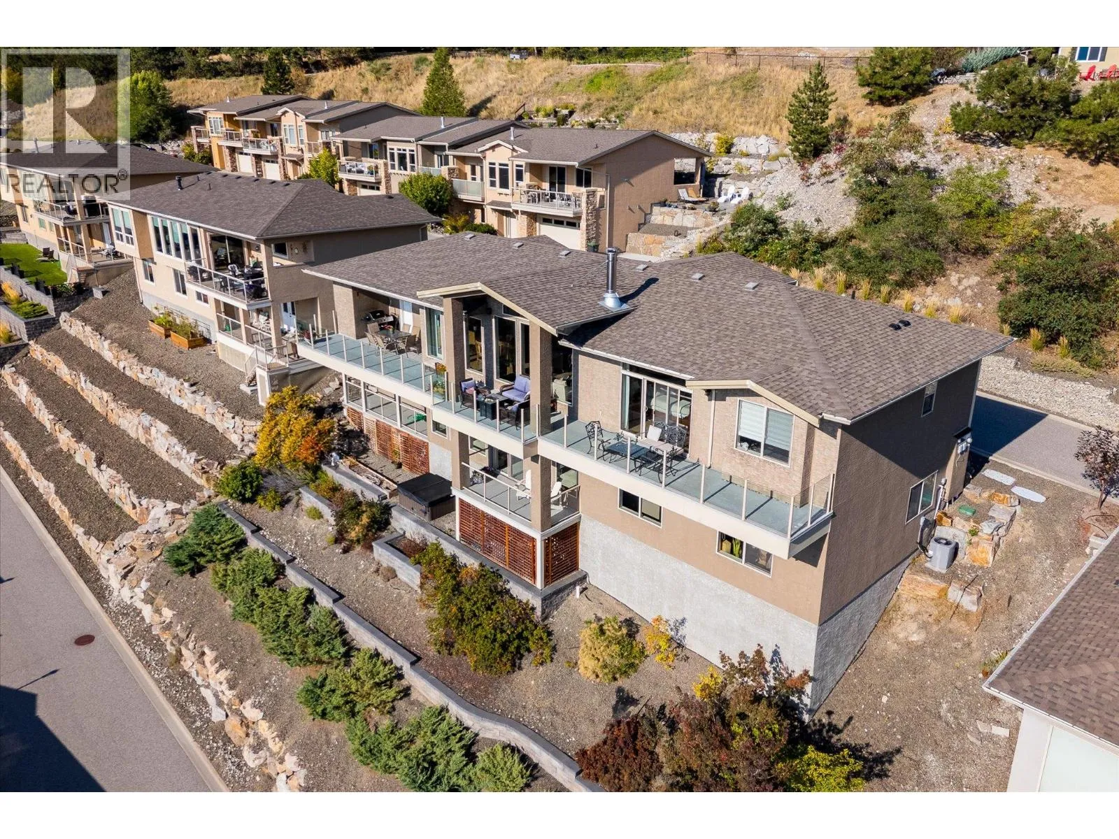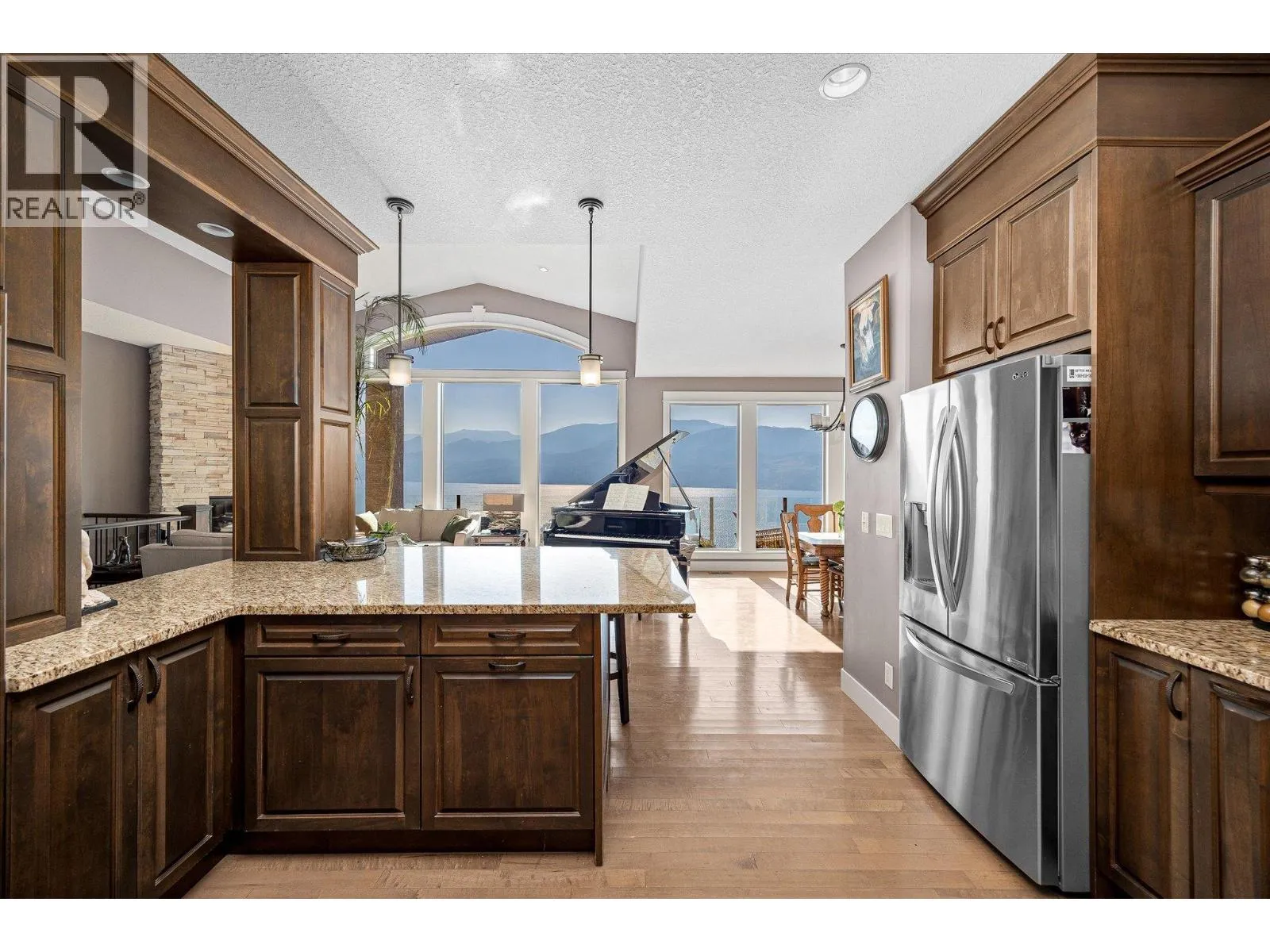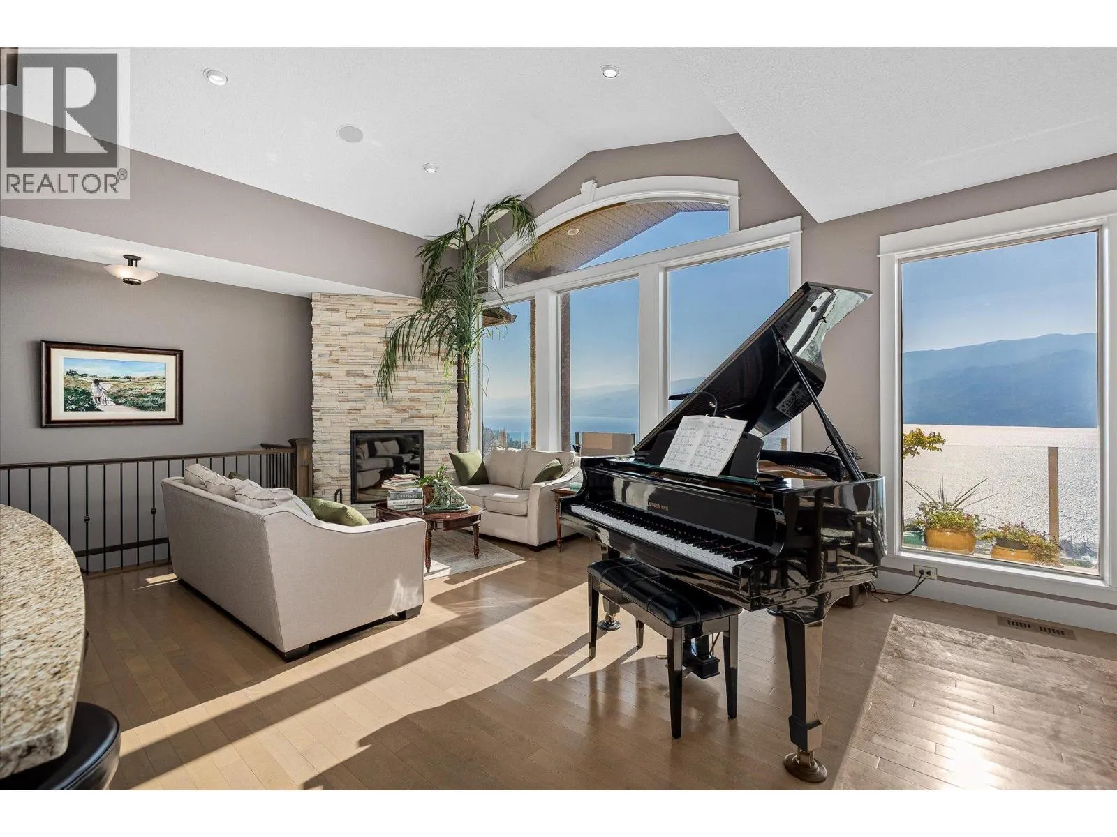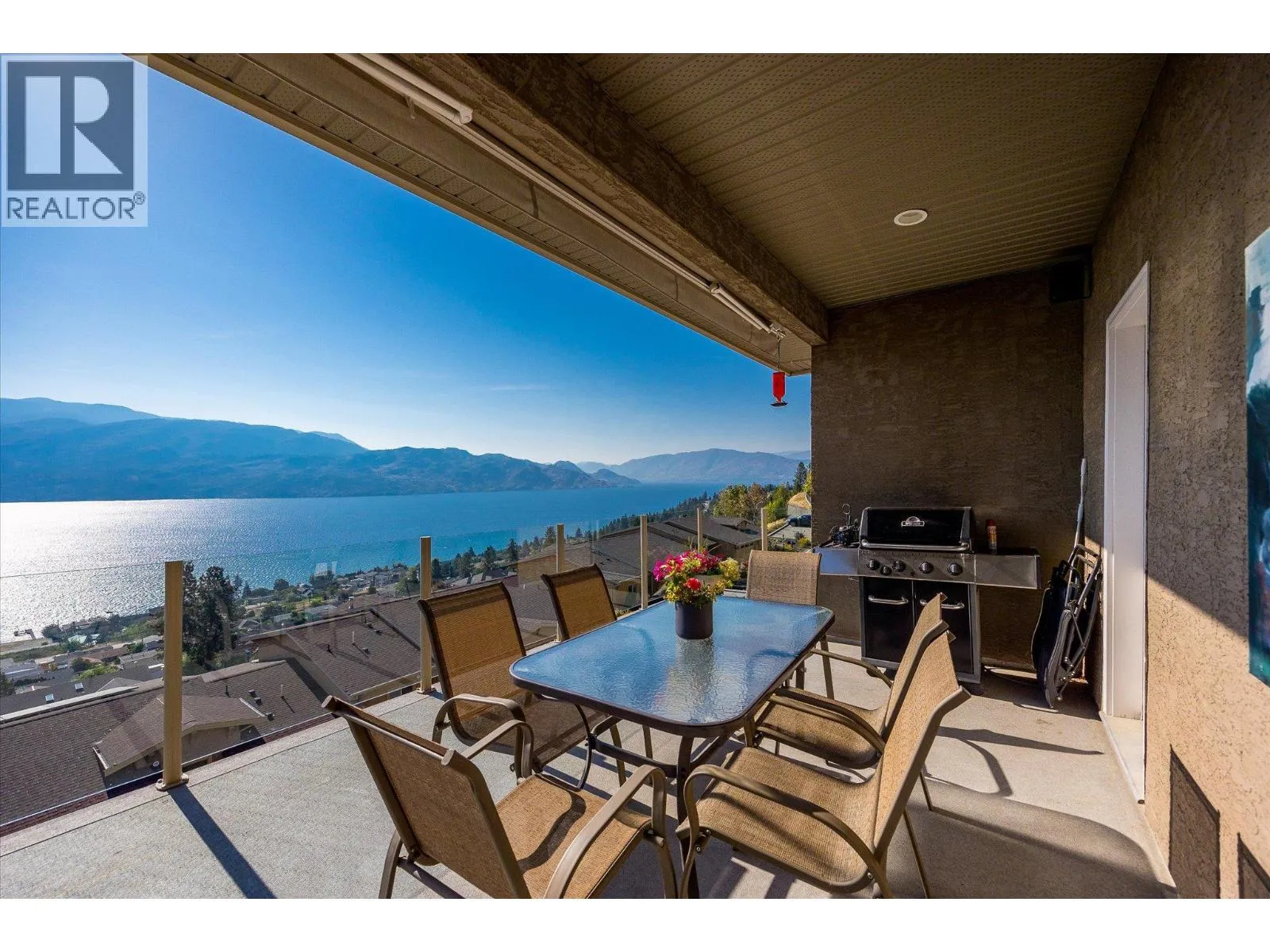 This 3,600+ sq. ft. home in the Lake View Villas community offers 4 bedrooms, 4 bathrooms, and panoramic lake views throughout the home and spanning across multiple outdoor living spaces. Inside, the open layout features granite countertops, stainless steel appliances, hardwood floors, and a real wood-burning fireplace. Select areas of the home, including the primary bathrooms, feature in-floor heating for added comfort, and a HEPA/steam filter system ensures excellent air quality. A surround sound system, hot water on demand, and a security system are also included. The primary suite boasts a large walk-in closet, spacious ensuite, and private deck access. A temperature-controlled wine cellar holds up to 1,000 bottles, adding to the homeâs appeal. Outdoor living is maximized with a main deck that spans the entire home, an automatic awning, a new hot tub, and multiple patios designed to take in the views. Raised garden beds provide space to grow without the upkeep, and with minimal yard work required, this is a truly low-maintenance property that allows you to spend more time enjoying everything the Okanagan has to offer. The double car garage has plenty of storage space and includes automatic car lift for the car enthusiast. Residents of Lake View Villas enjoy low strata fees, a community clubhouse, gym area and more. With quality construction, modern comfort, and a lock-and-leave lifestyle, this home is an ideal opportunity in a sought-after lake view community. (id:27476)