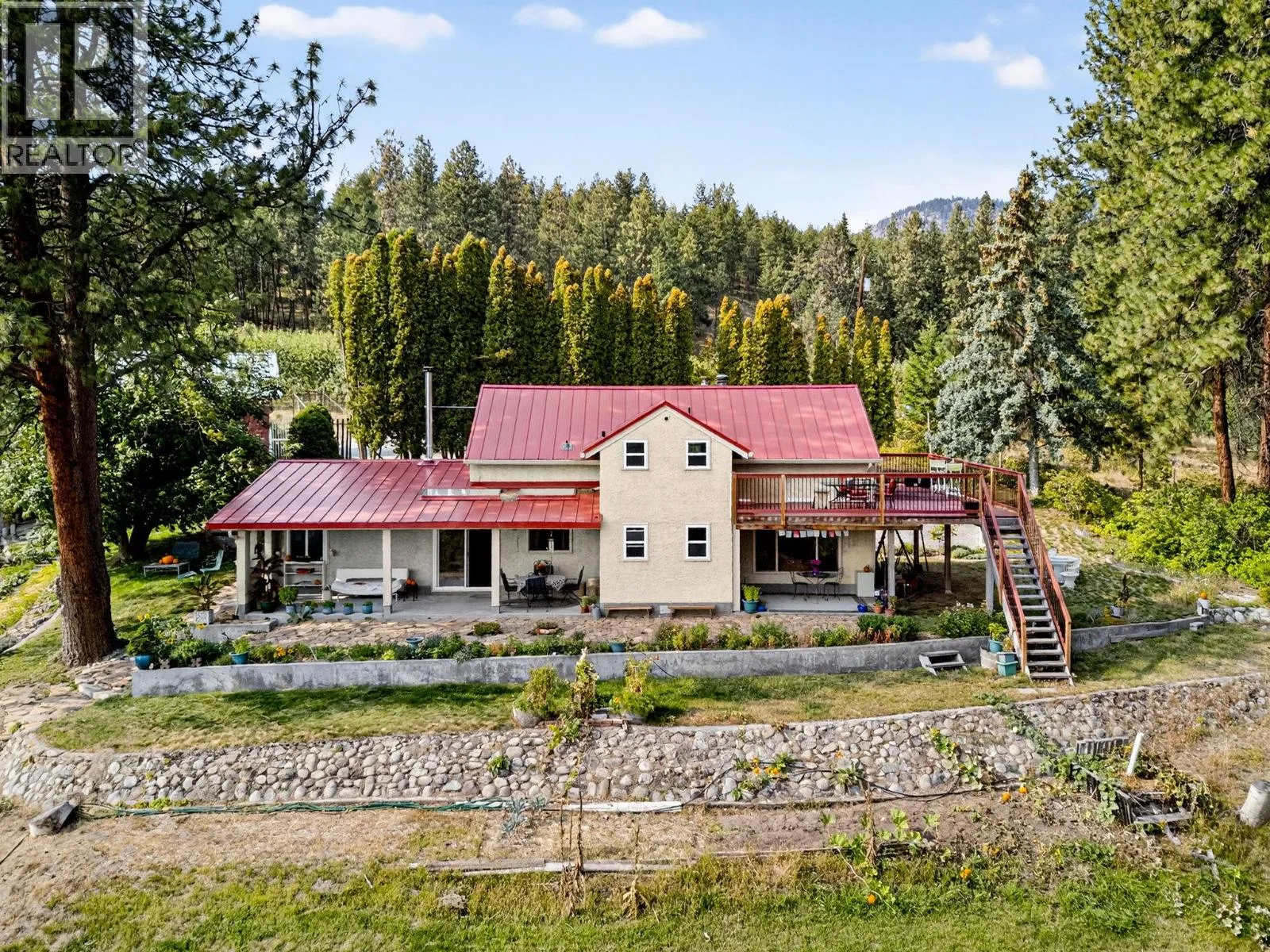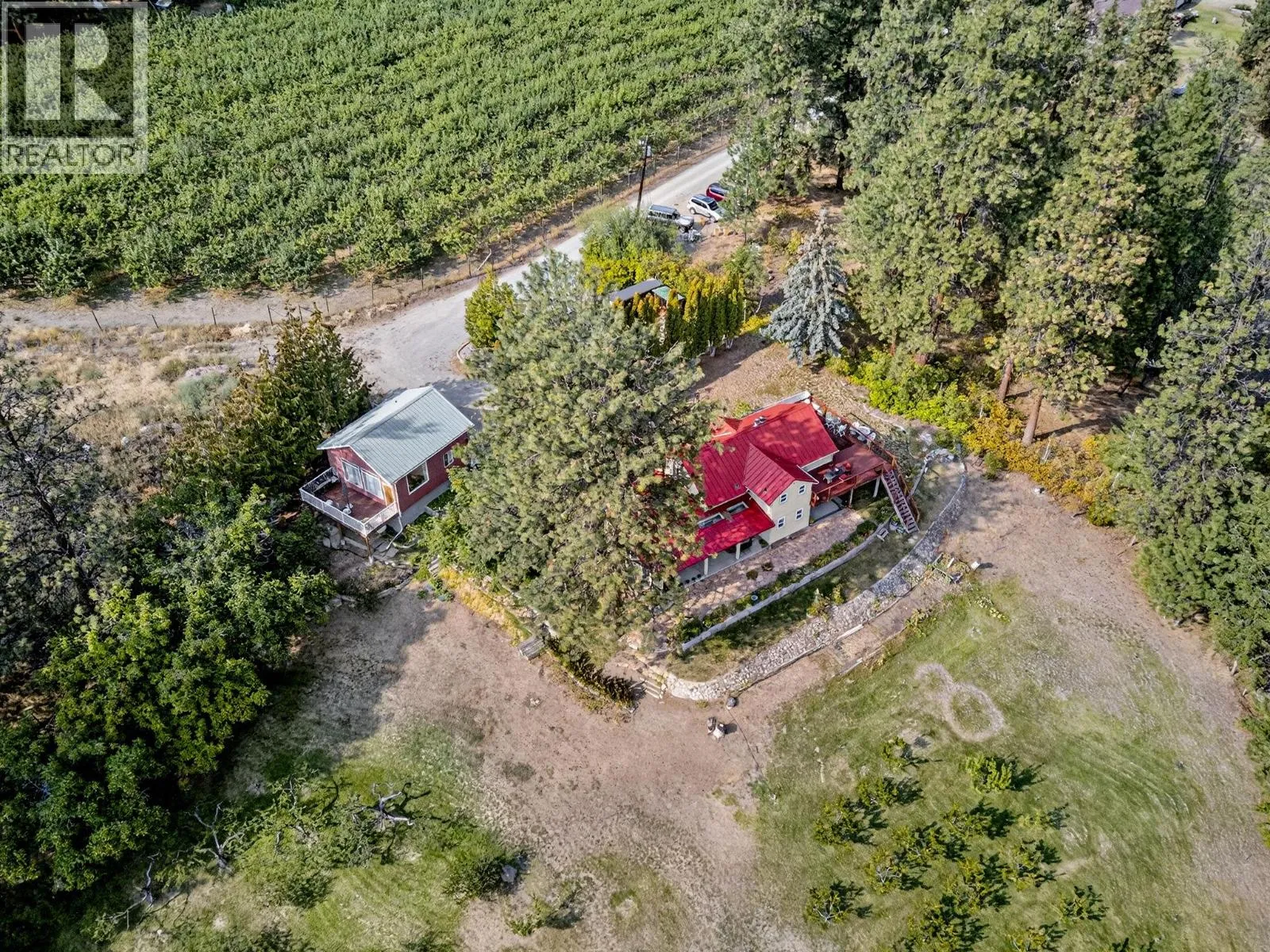 Discover your own private paradise on this rare 13-acre farm estate with breathtaking views of Okanagan Lake and the surrounding valley. Perfectly combining natural beauty with functional farm living, this remarkable property features a charming 4-bedroom farmhouse full of warmth and character, along with a cozy cottage complete with a loftâideal for guests, extended family, or rental income. Seven acres are fully fenced and cultivated with plums, peaches, grapes, and a flourishing herb garden, creating a serene orchard setting thatâs both productive and picturesque. The remaining six acres are an untouched sanctuary, highlighted by an incredible waterfall and a crystal-clear swimming hole along beautiful Deep Creekâan unparalleled retreat offering peace, relaxation, and connection to nature. Extreme privacy ensures a truly exclusive lifestyle, while still being close enough to enjoy all the amenities of Peachland and the Okanagan. Whether you envision a family farm, an income-producing orchard, or simply a one-of-a-kind lakeview escape, this property delivers a rare blend of opportunity and tranquility. (id:27476)