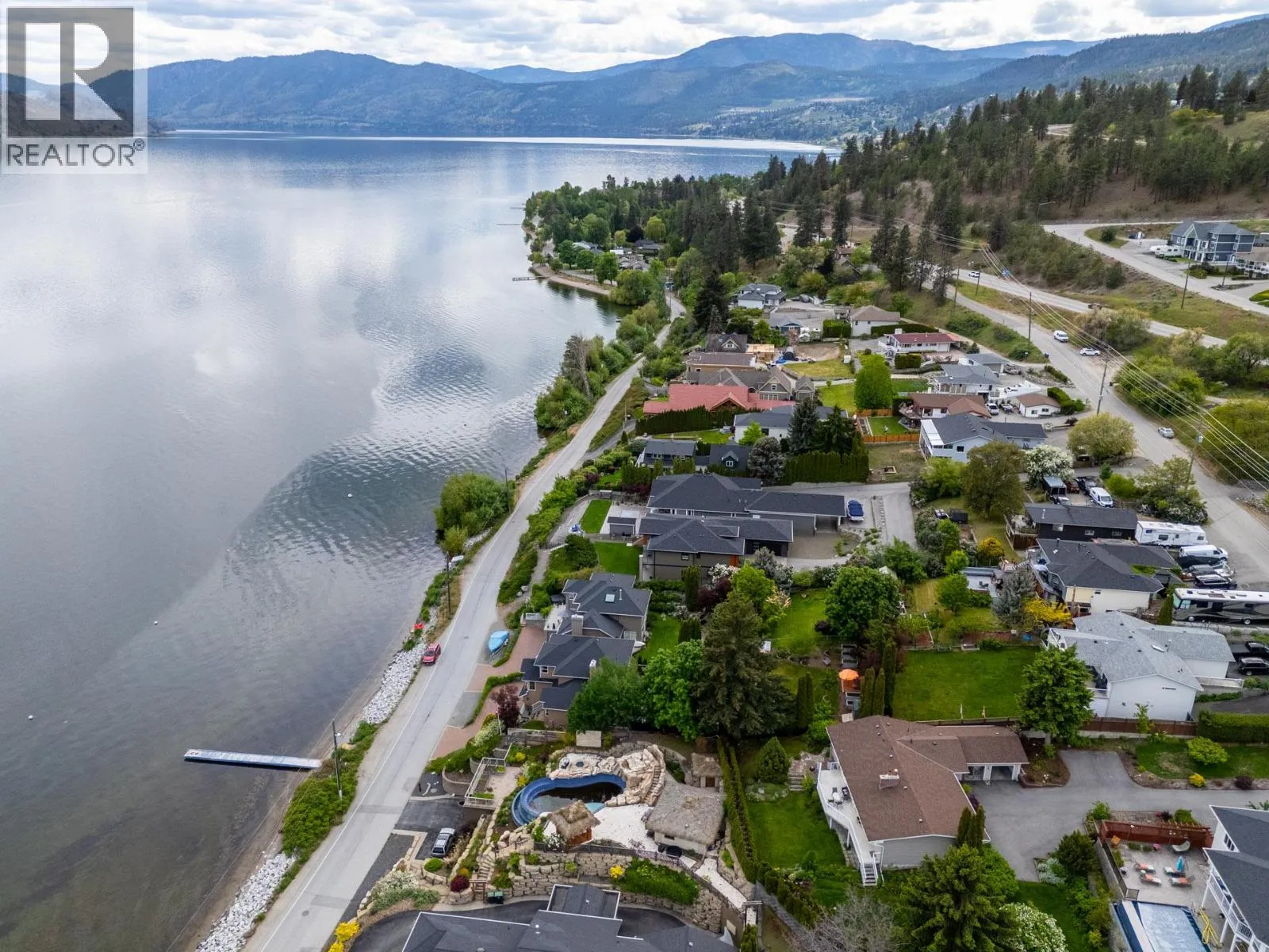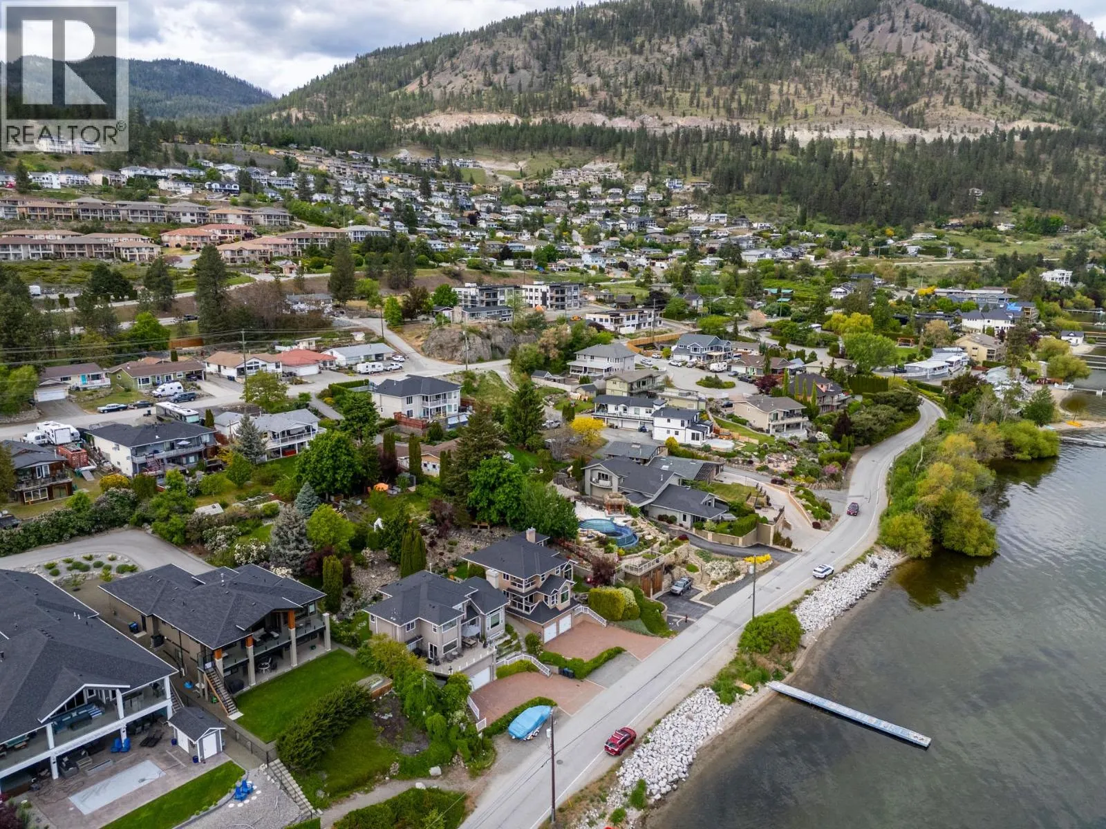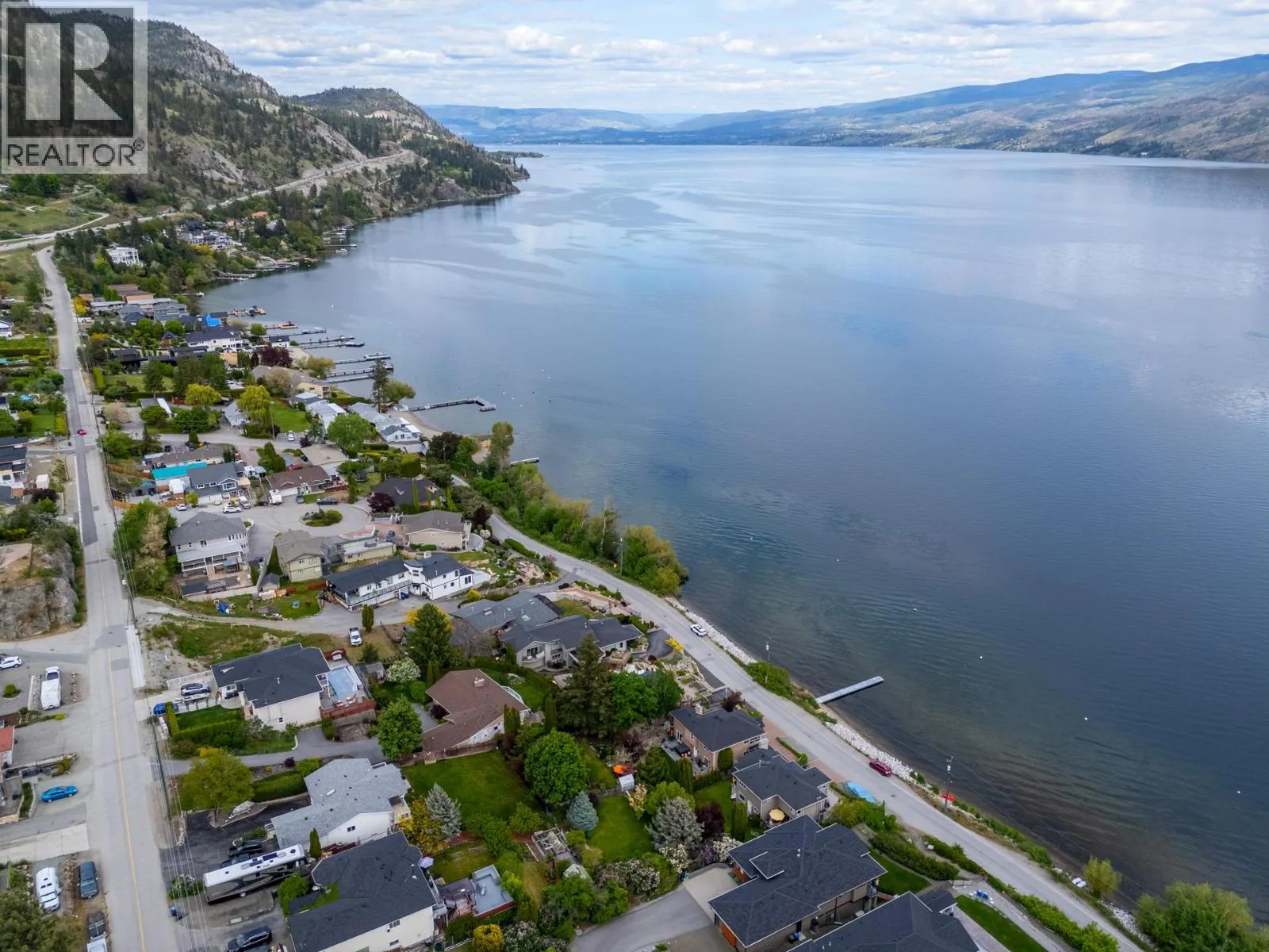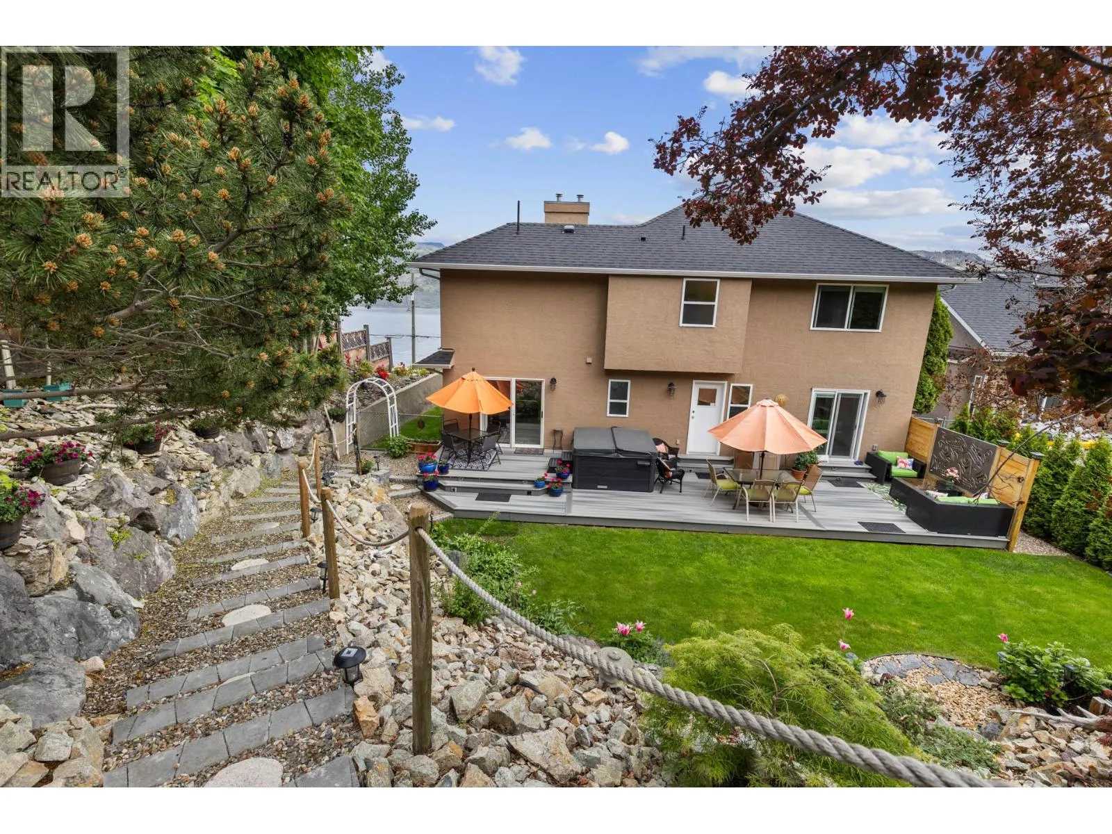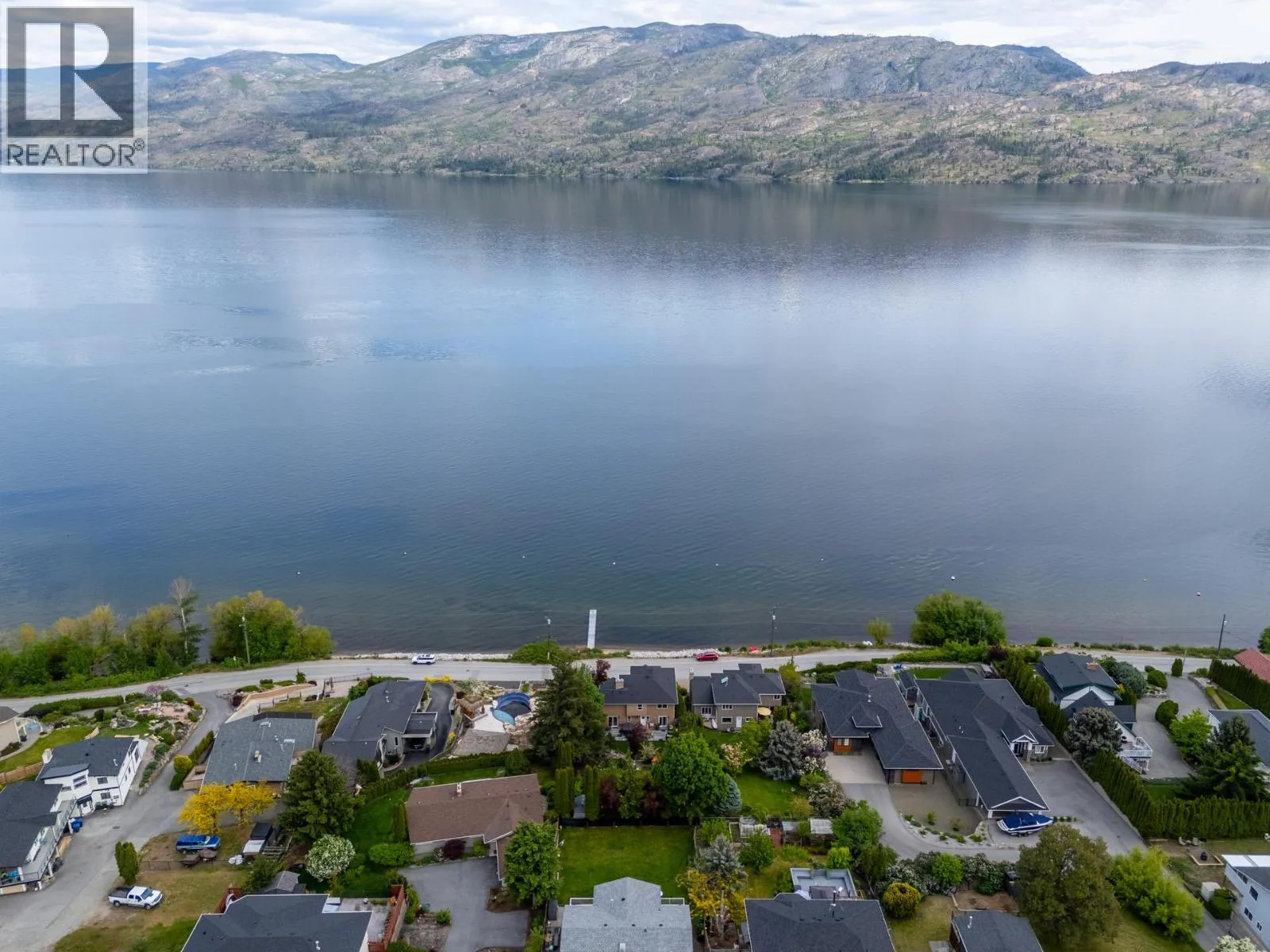 Step outside your front door to enjoy immediate access to Okanagan Lake, where a licensed private buoy awaits your water toys. This immaculate home showcases pride of ownership with its four bedrooms, versatile flex room, and spacious recreation room ideal for a pool table or games room. The newly renovated kitchen features mostly newer appliances, elegant quartz countertops, a beverage fridge and additional sink. The ten foot long island in the kitchen is the perfect gathering place. The primary bedroom ensuite boasts a jetted tub. Additional highlights include a newer front load washer and dryer, built-in vacuum system, and gleaming hardwood oak flooring throughout the home. The property features two front decks for taking in the lake and mountain views, a sunken living room with a gas fireplace, pristinely kept double garage. The outdoor space is fully irrigated, complete with timed drip lines, a stunning water feature, exceptional landscaping with a park like setting of your very own, a greenhouse, garden boxes and a hot tub on the back patio. The home is equipped with a newer geothermal heating and cooling system, ensuring energy efficiency. Your new lifestyle awaits you in the beautiful Peachland along the shores of Okanagan Lake! (id:27476)