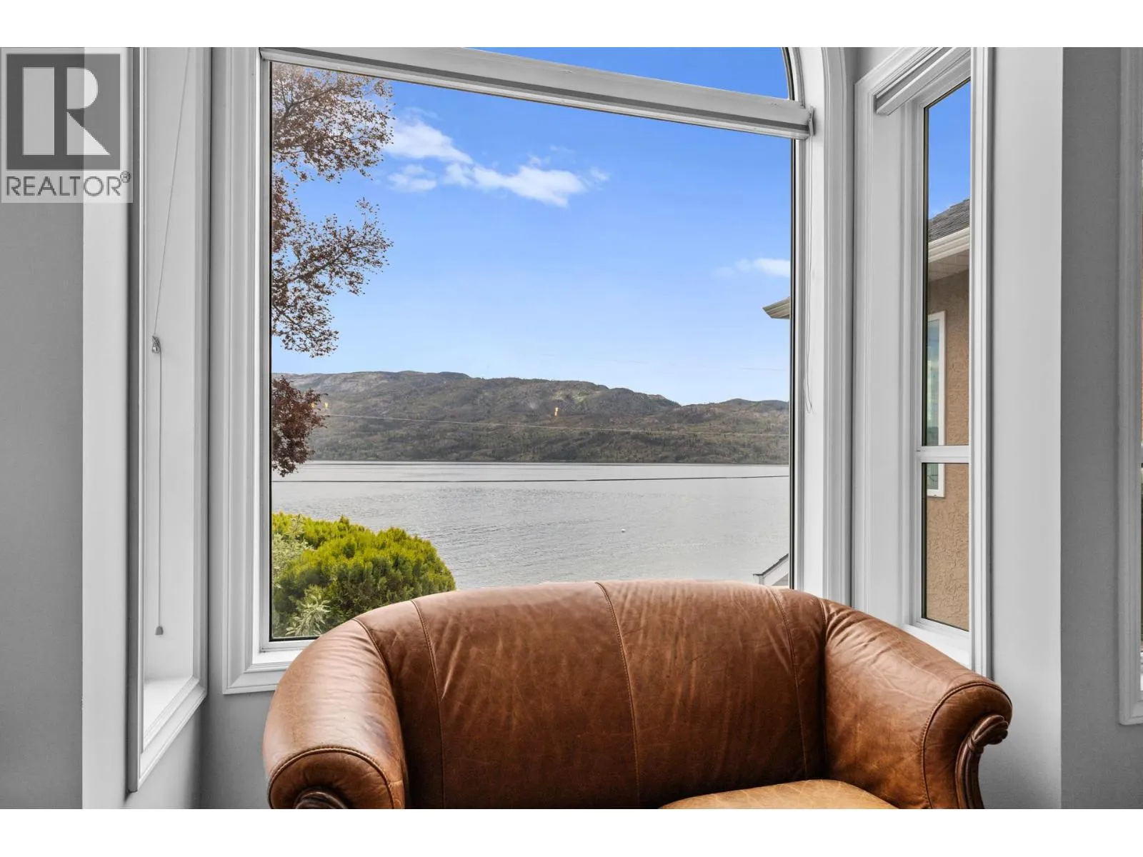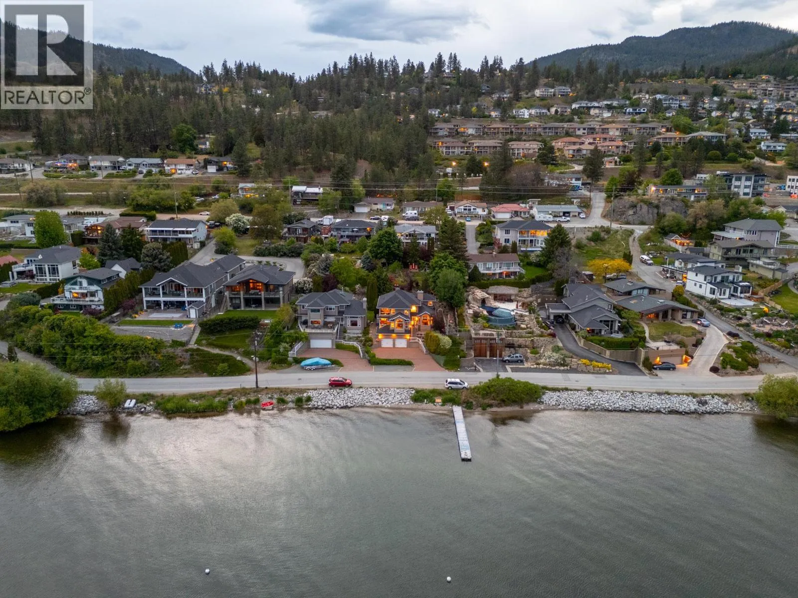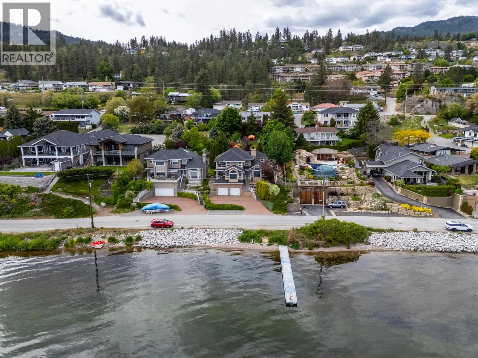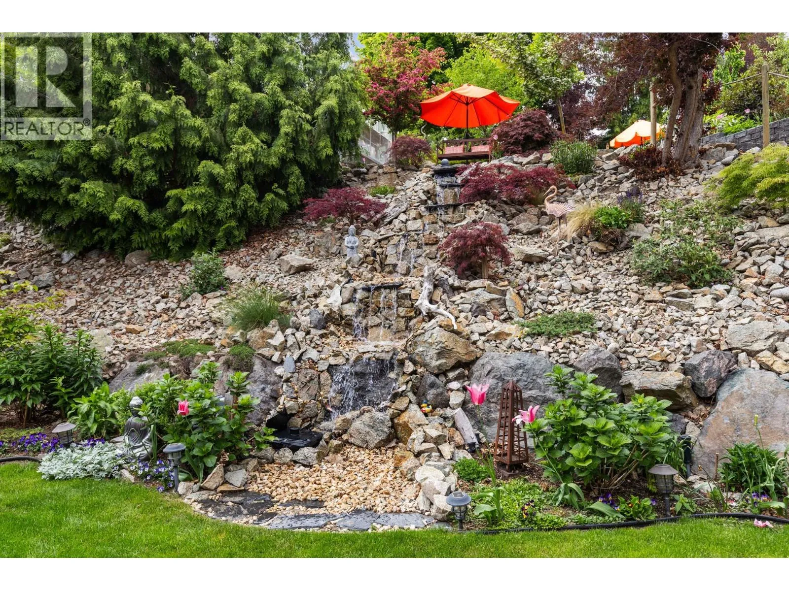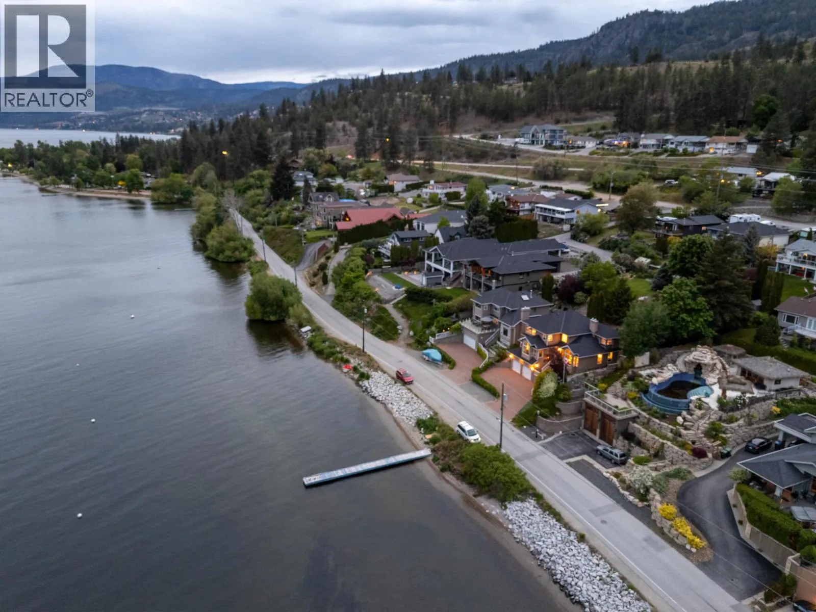 Step outside your front door to enjoy immediate access to Okanagan Lake, where a licensed private buoy awaits your water toys. This immaculate home showcases pride of ownership with its four bedrooms, versatile flex room, and spacious recreation room ideal for a pool table or games room. The newly renovated kitchen features mostly newer appliances, elegant quartz countertops, a beverage fridge and additional sink. The ten foot long island in the kitchen is the perfect gathering place. The primary bedroom ensuite boasts a jetted tub. Additional highlights include a newer front load washer and dryer, built-in vacuum system, and gleaming hardwood oak flooring throughout the home. The property features two front decks for taking in the lake and mountain views, a sunken living room with a gas fireplace, pristinely kept double garage. The outdoor space is fully irrigated, complete with timed drip lines, a stunning water feature, exceptional landscaping with a park like setting of your very own, a greenhouse, garden boxes and a hot tub on the back patio. The home is equipped with a newer geothermal heating and cooling system, ensuring energy efficiency. Your new lifestyle awaits you in the beautiful Peachland along the shores of Okanagan Lake! (id:27476)