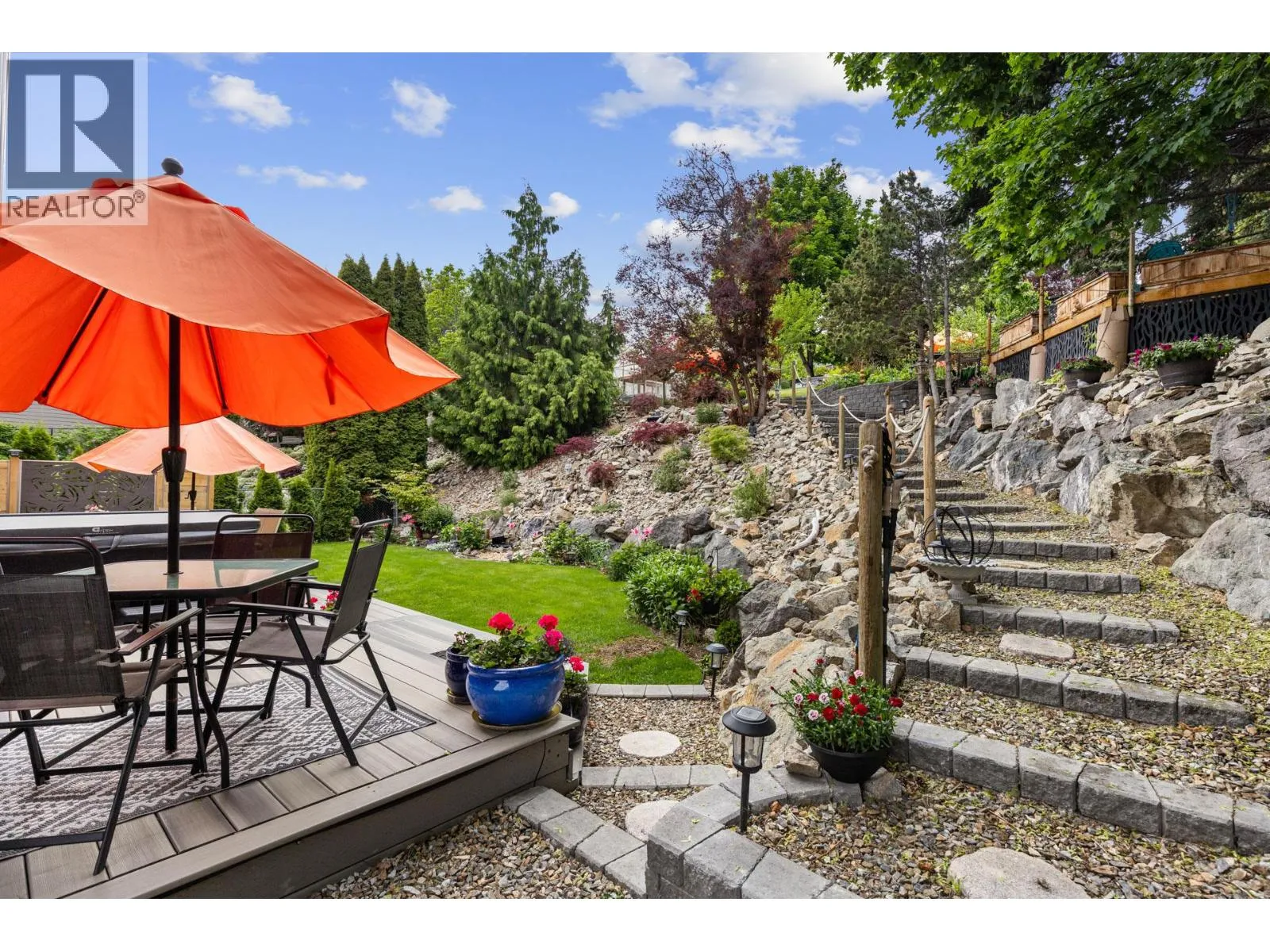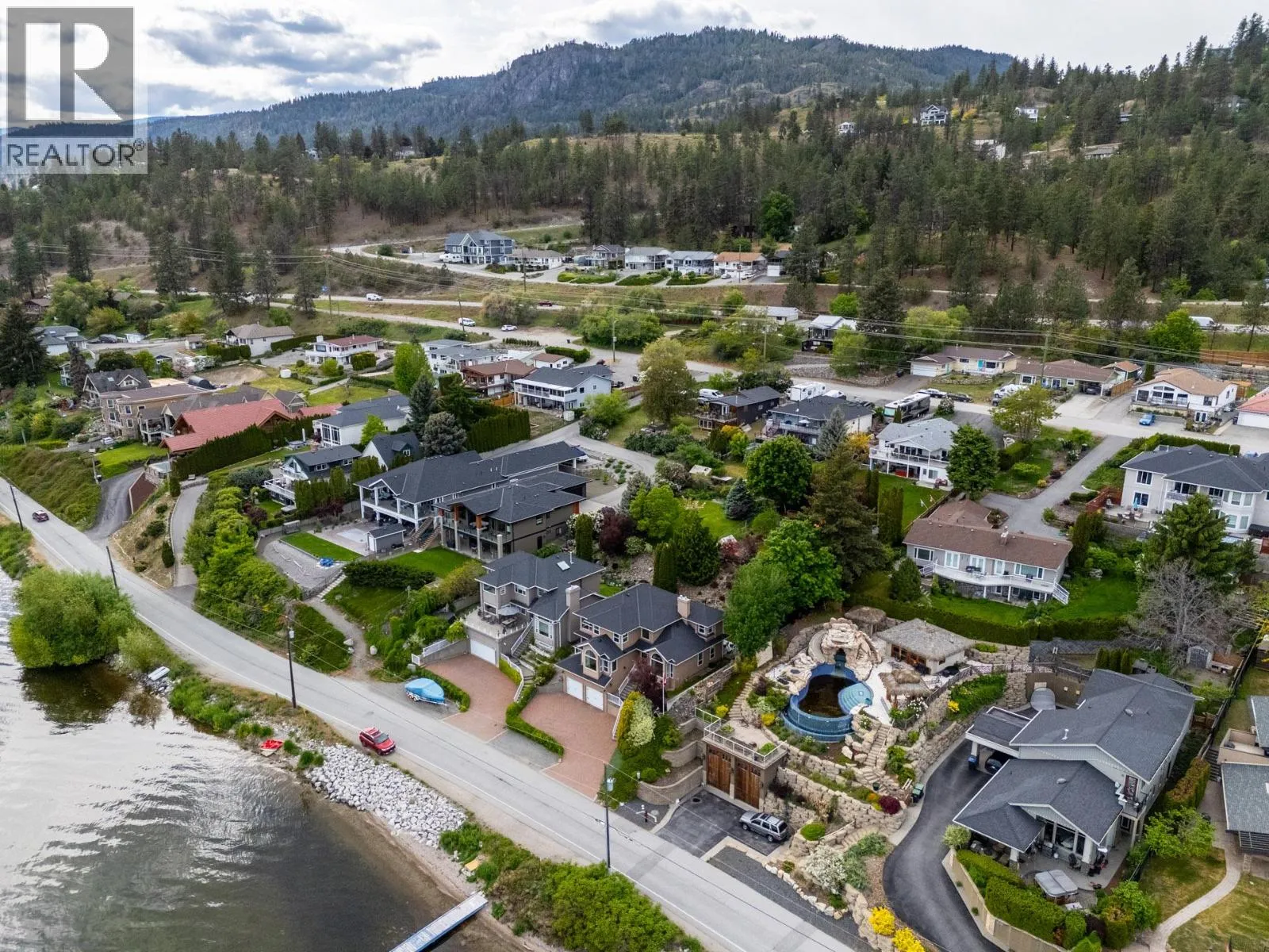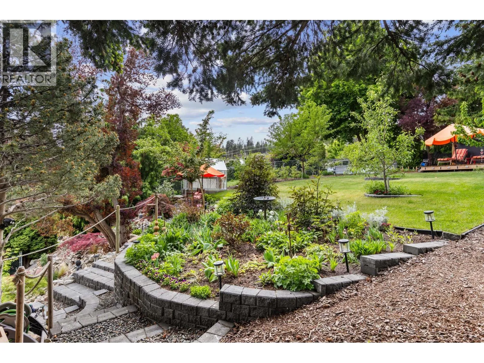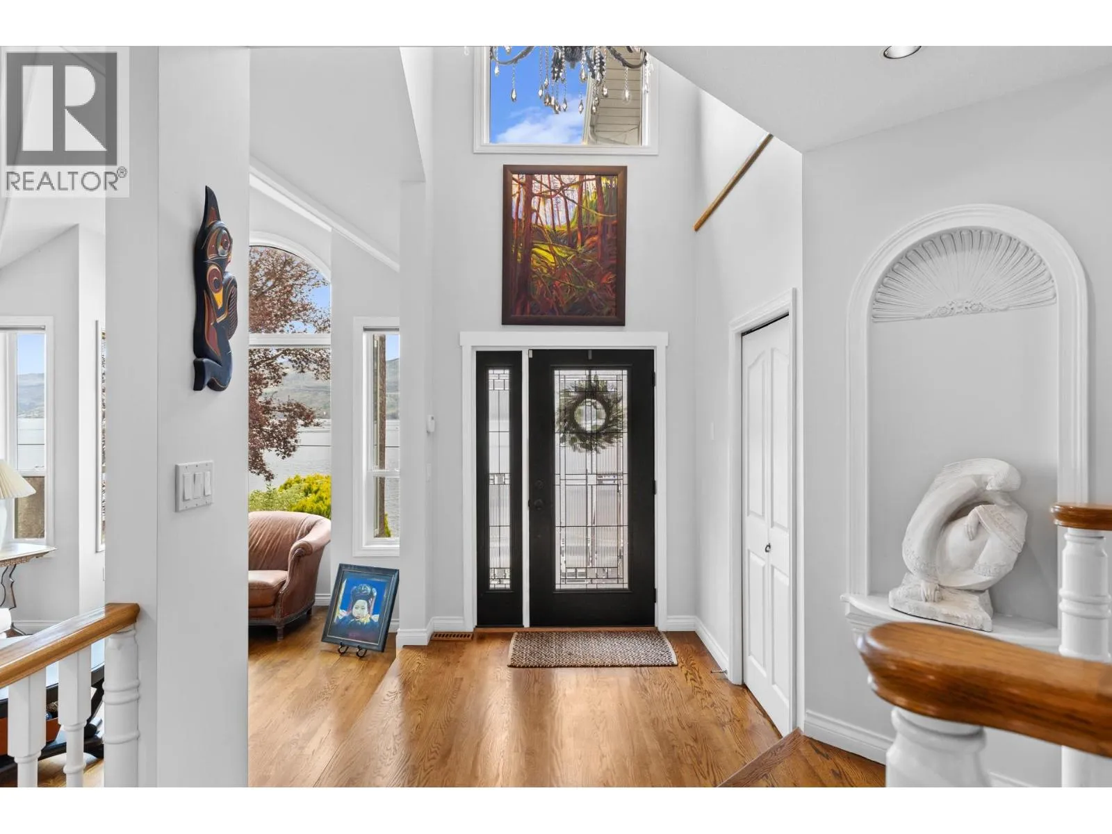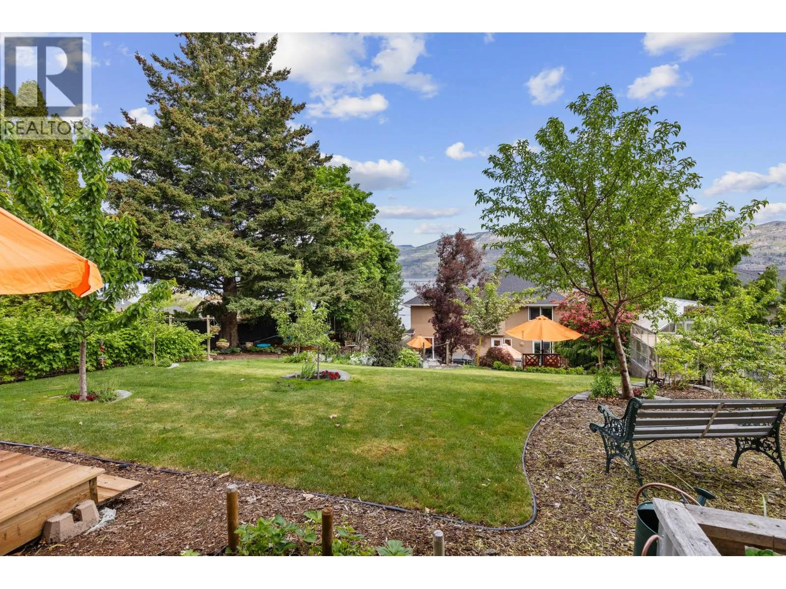 Step outside your front door to enjoy immediate access to Okanagan Lake, where a licensed private buoy awaits your water toys. This immaculate home showcases pride of ownership with its four bedrooms, versatile flex room, and spacious recreation room ideal for a pool table or games room. The newly renovated kitchen features mostly newer appliances, elegant quartz countertops, a beverage fridge and additional sink. The ten foot long island in the kitchen is the perfect gathering place. The primary bedroom ensuite boasts a jetted tub. Additional highlights include a newer front load washer and dryer, built-in vacuum system, and gleaming hardwood oak flooring throughout the home. The property features two front decks for taking in the lake and mountain views, a sunken living room with a gas fireplace, pristinely kept double garage. The outdoor space is fully irrigated, complete with timed drip lines, a stunning water feature, exceptional landscaping with a park like setting of your very own, a greenhouse, garden boxes and a hot tub on the back patio. The home is equipped with a newer geothermal heating and cooling system, ensuring energy efficiency. Your new lifestyle awaits you in the beautiful Peachland along the shores of Okanagan Lake! (id:27476)