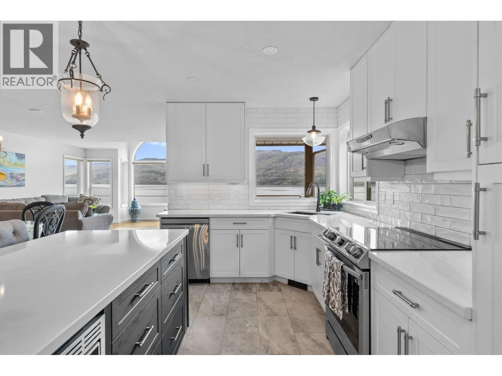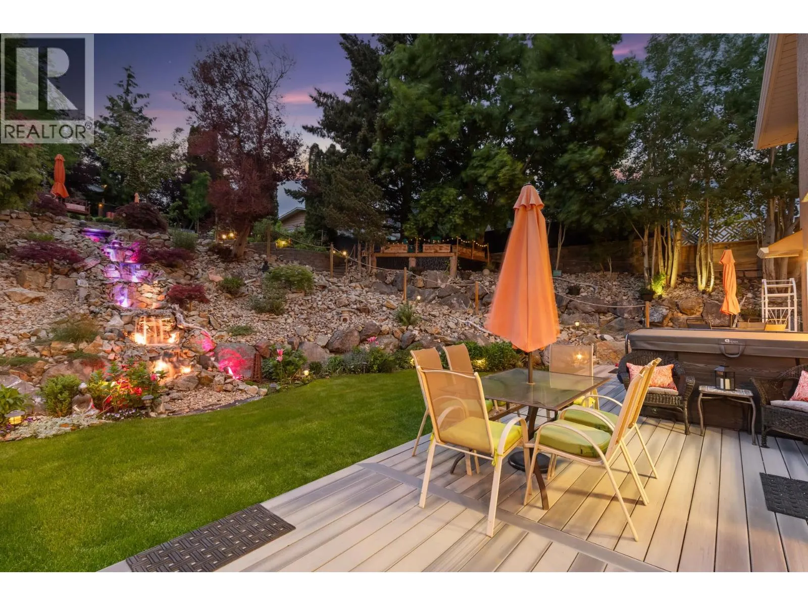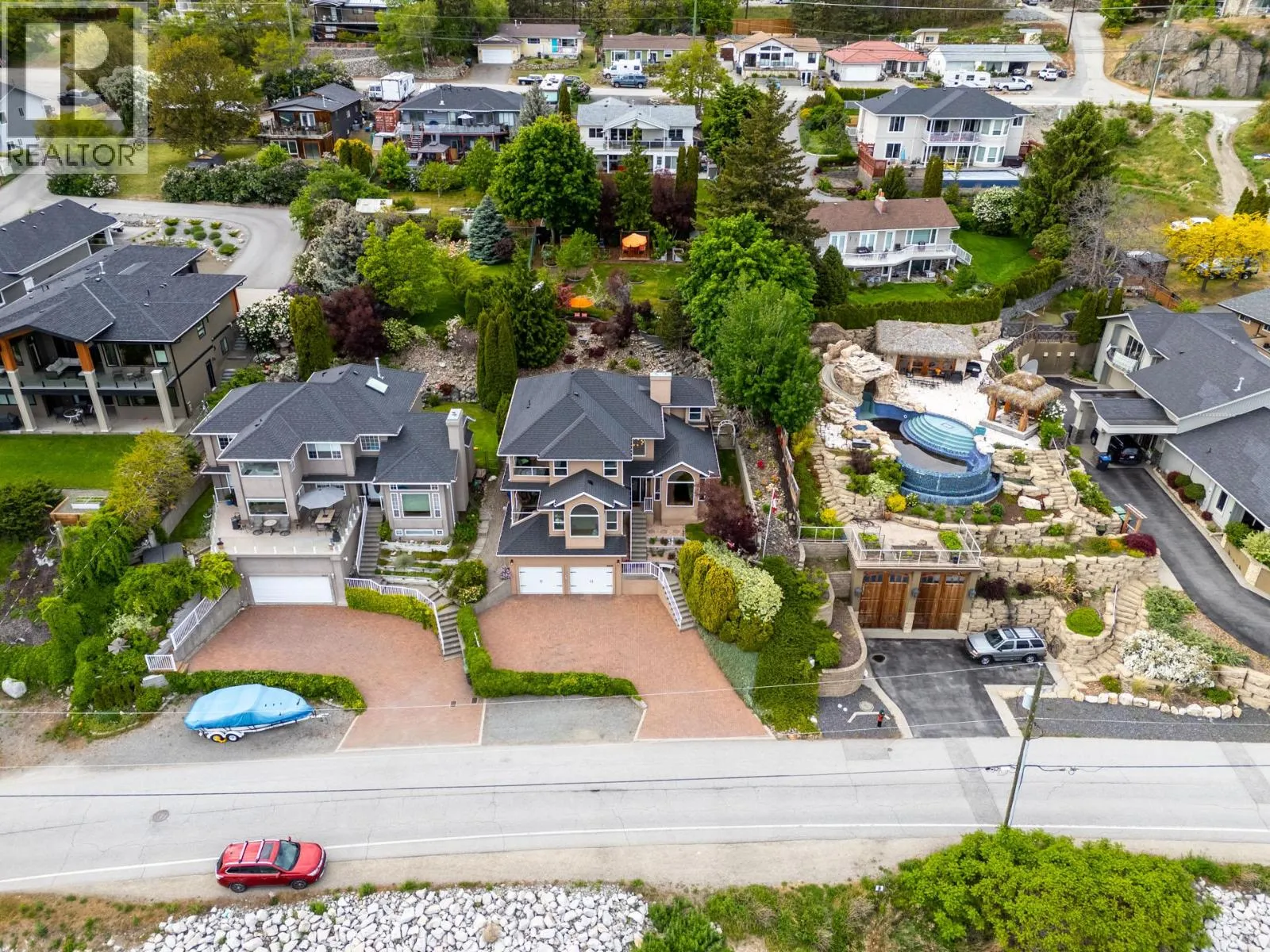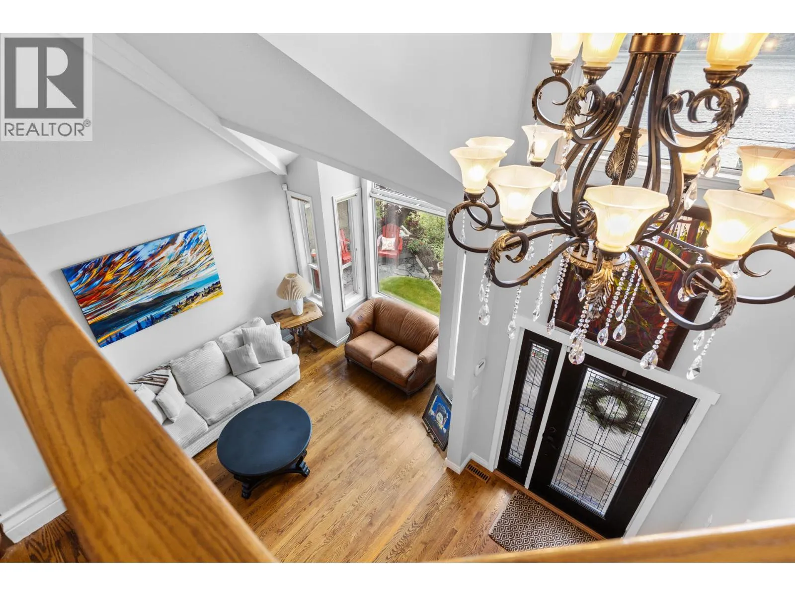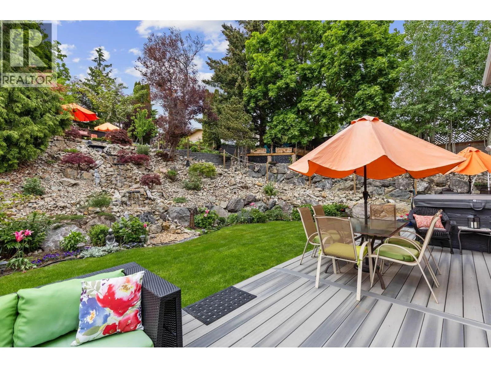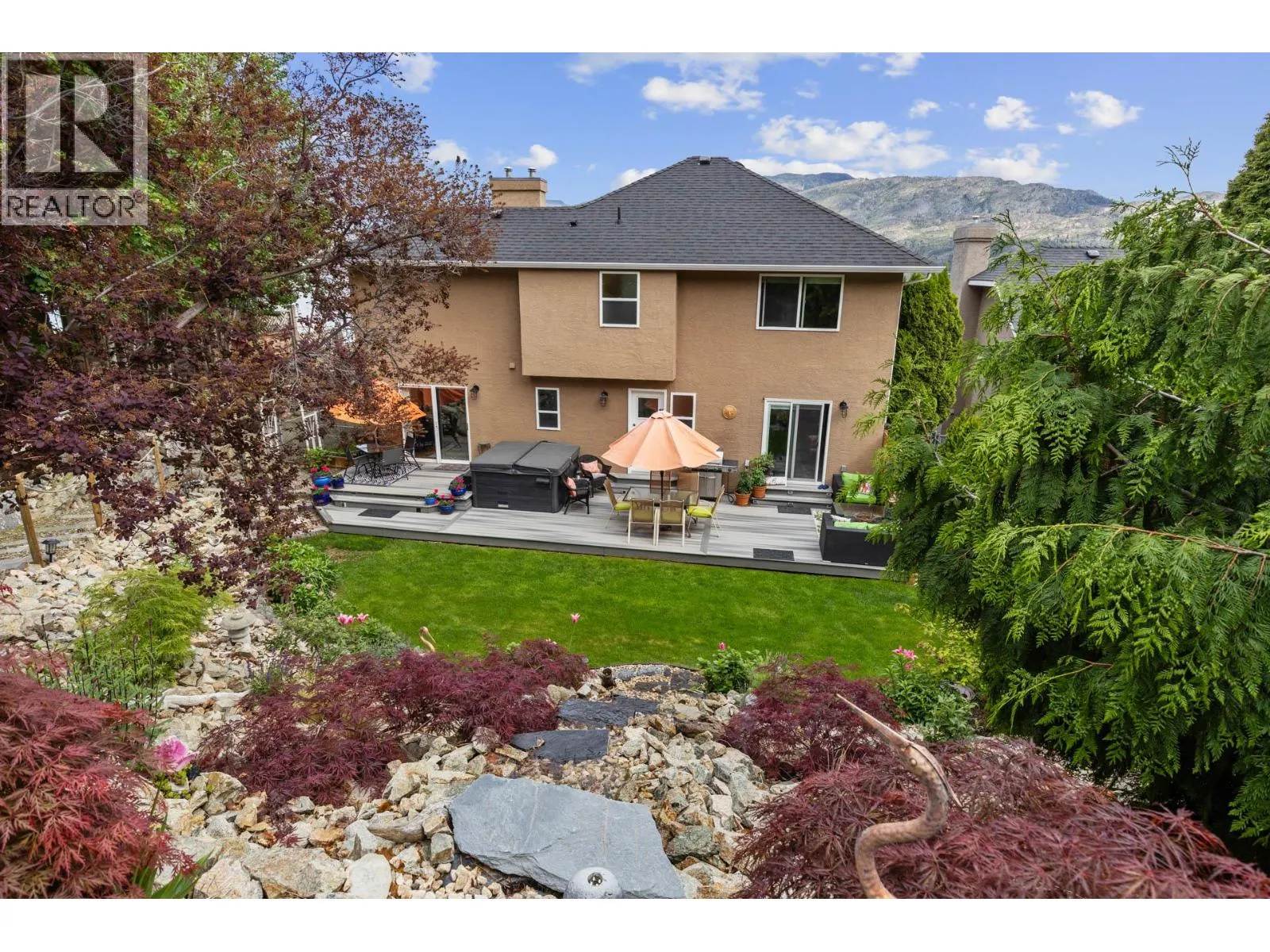 Step outside your front door to enjoy immediate access to Okanagan Lake, where a licensed private buoy awaits your water toys. This immaculate home showcases pride of ownership with its four bedrooms, versatile flex room, and spacious recreation room ideal for a pool table or games room. The newly renovated kitchen features mostly newer appliances, elegant quartz countertops, a beverage fridge and additional sink. The ten foot long island in the kitchen is the perfect gathering place. The primary bedroom ensuite boasts a jetted tub. Additional highlights include a newer front load washer and dryer, built-in vacuum system, and gleaming hardwood oak flooring throughout the home. The property features two front decks for taking in the lake and mountain views, a sunken living room with a gas fireplace, pristinely kept double garage. The outdoor space is fully irrigated, complete with timed drip lines, a stunning water feature, exceptional landscaping with a park like setting of your very own, a greenhouse, garden boxes and a hot tub on the back patio. The home is equipped with a newer geothermal heating and cooling system, ensuring energy efficiency. Your new lifestyle awaits you in the beautiful Peachland along the shores of Okanagan Lake! (id:27476)
