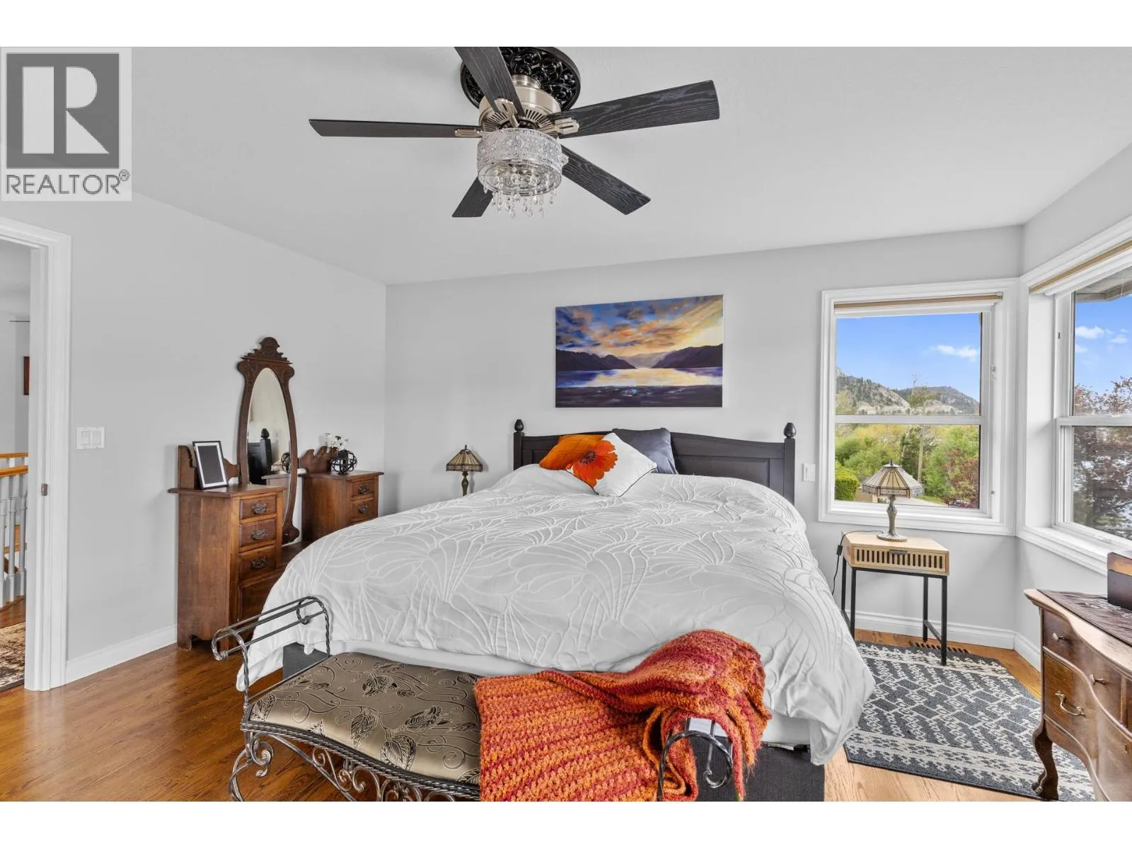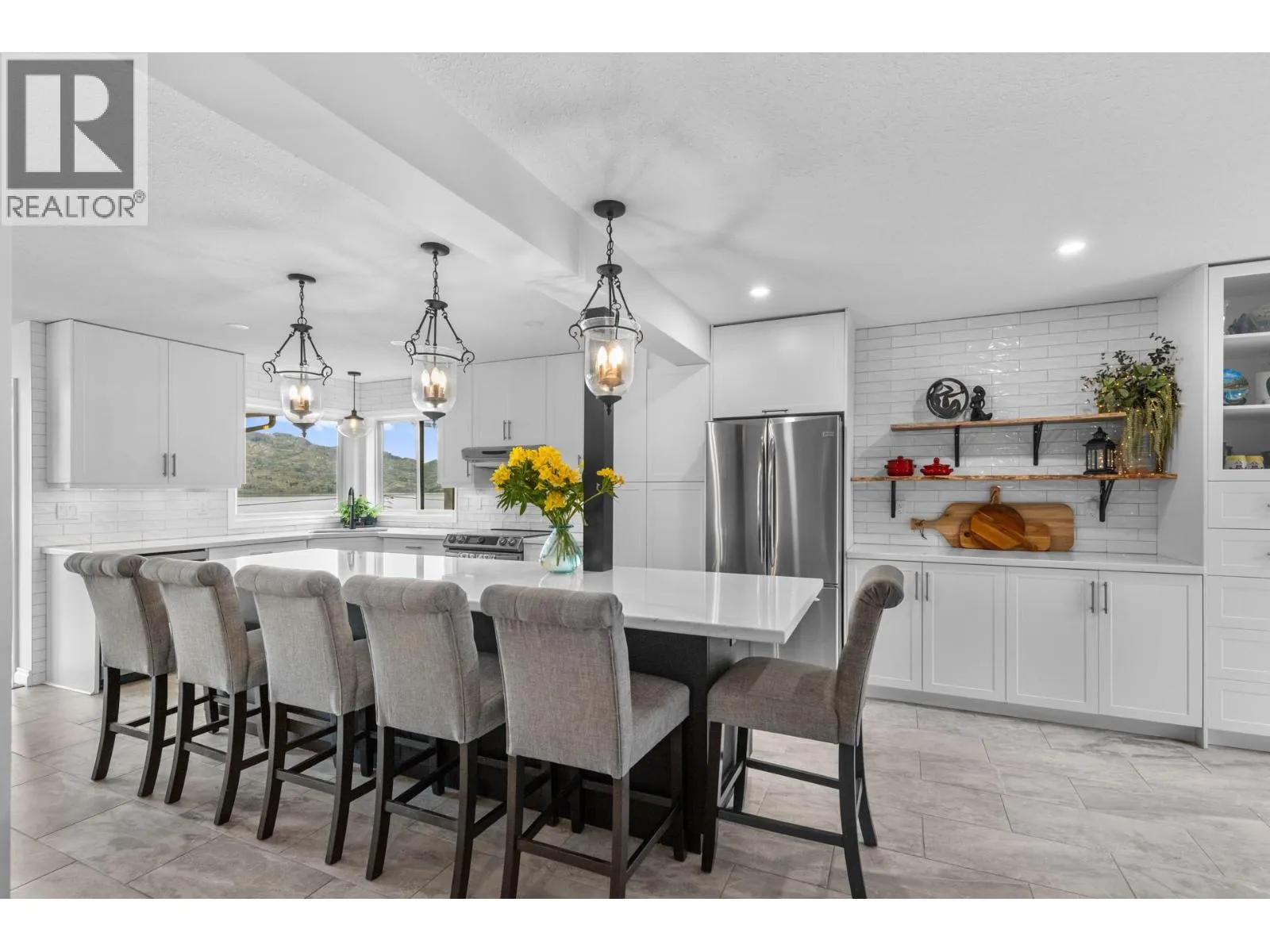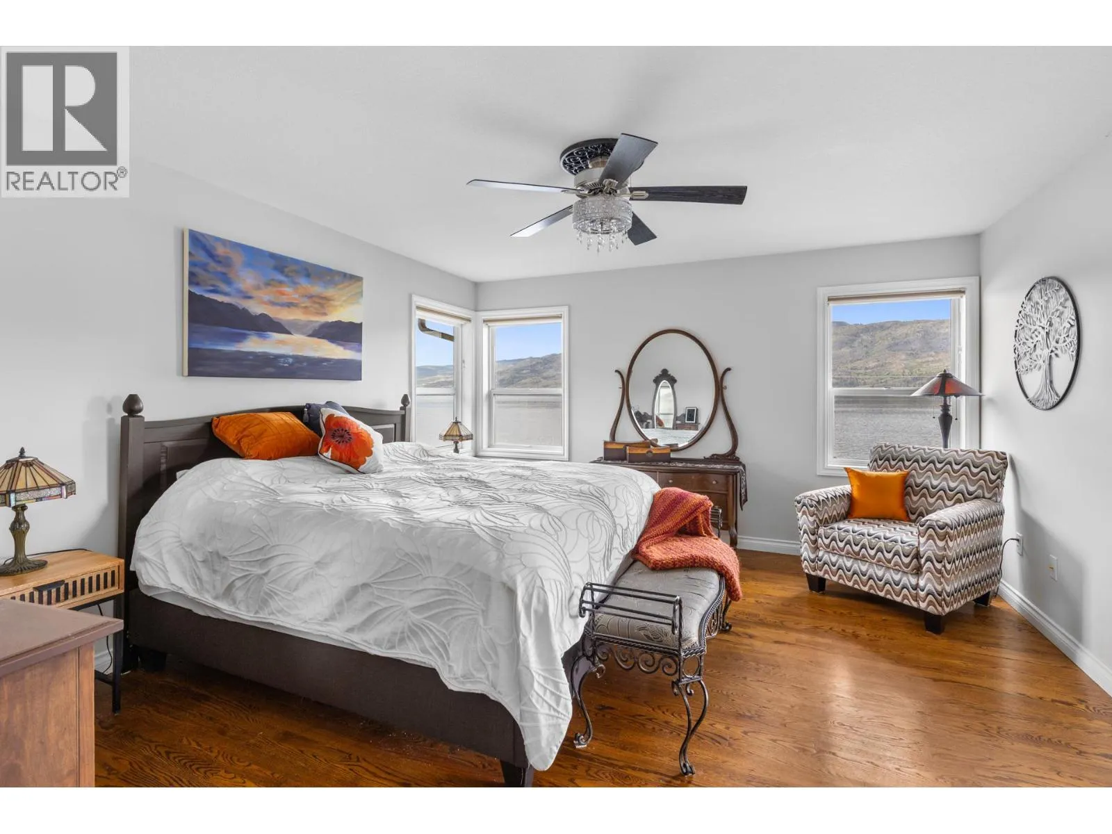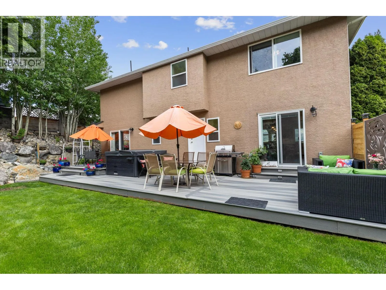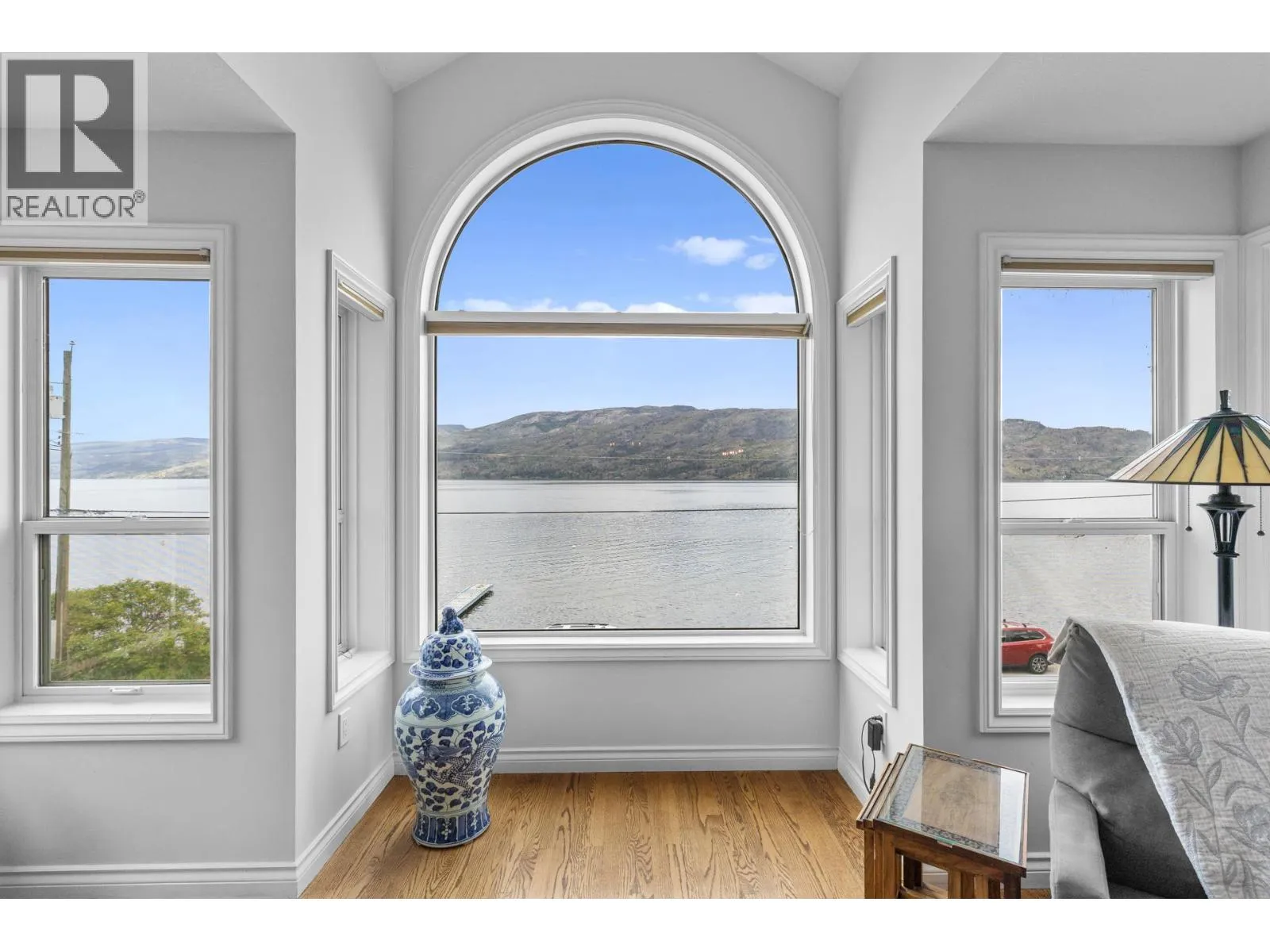 Step outside your front door to enjoy immediate access to Okanagan Lake, where a licensed private buoy awaits your water toys. This immaculate home showcases pride of ownership with its four bedrooms, versatile flex room, and spacious recreation room ideal for a pool table or games room. The newly renovated kitchen features mostly newer appliances, elegant quartz countertops, a beverage fridge and additional sink. The ten foot long island in the kitchen is the perfect gathering place. The primary bedroom ensuite boasts a jetted tub. Additional highlights include a newer front load washer and dryer, built-in vacuum system, and gleaming hardwood oak flooring throughout the home. The property features two front decks for taking in the lake and mountain views, a sunken living room with a gas fireplace, pristinely kept double garage. The outdoor space is fully irrigated, complete with timed drip lines, a stunning water feature, exceptional landscaping with a park like setting of your very own, a greenhouse, garden boxes and a hot tub on the back patio. The home is equipped with a newer geothermal heating and cooling system, ensuring energy efficiency. Your new lifestyle awaits you in the beautiful Peachland along the shores of Okanagan Lake! (id:27476)