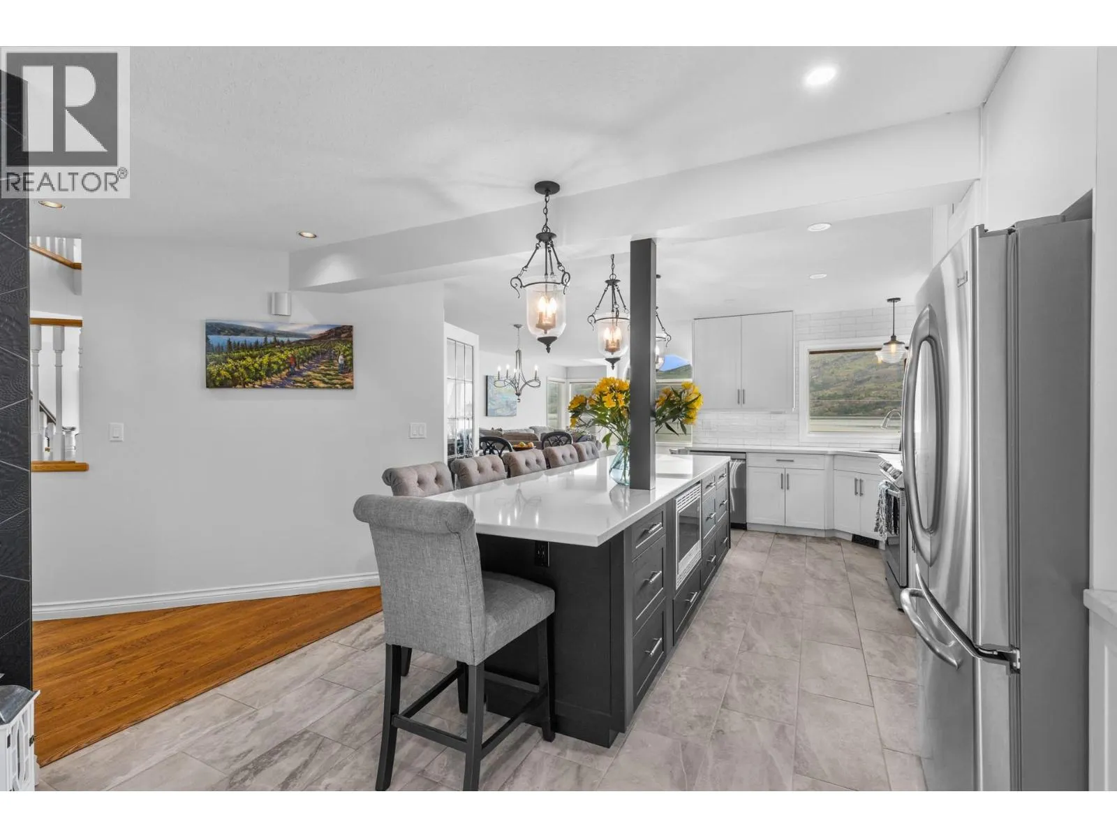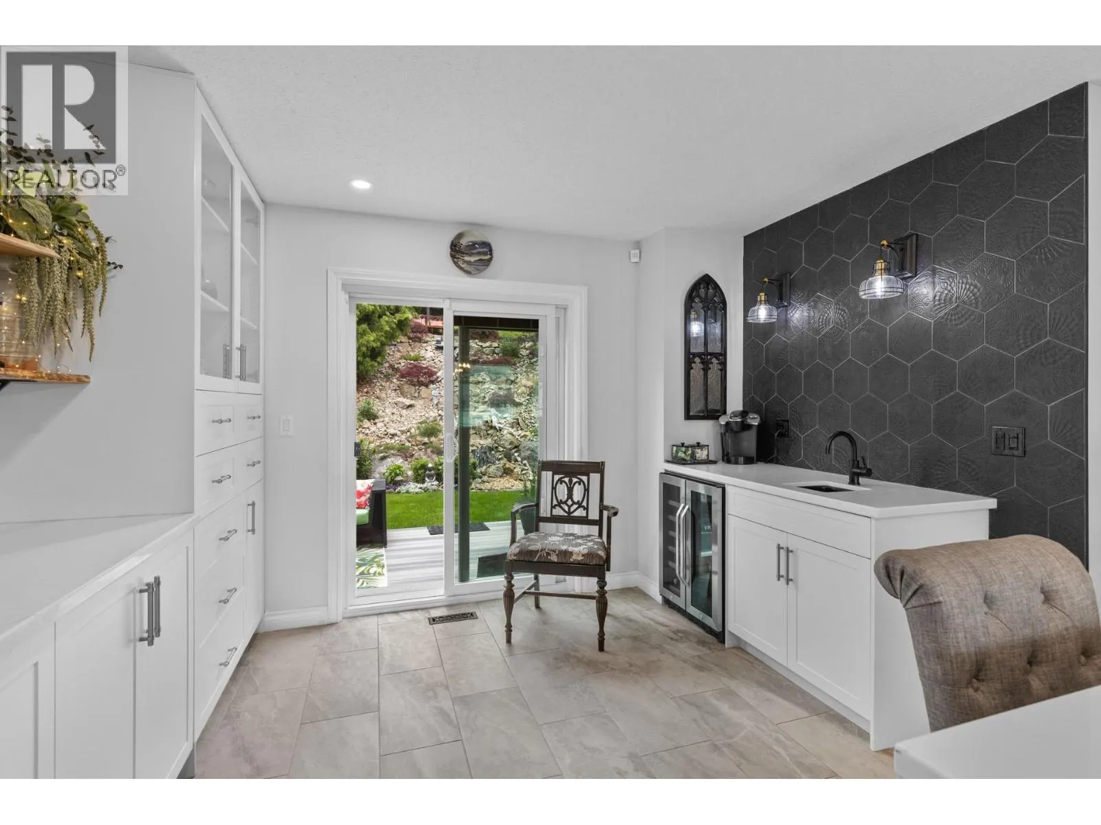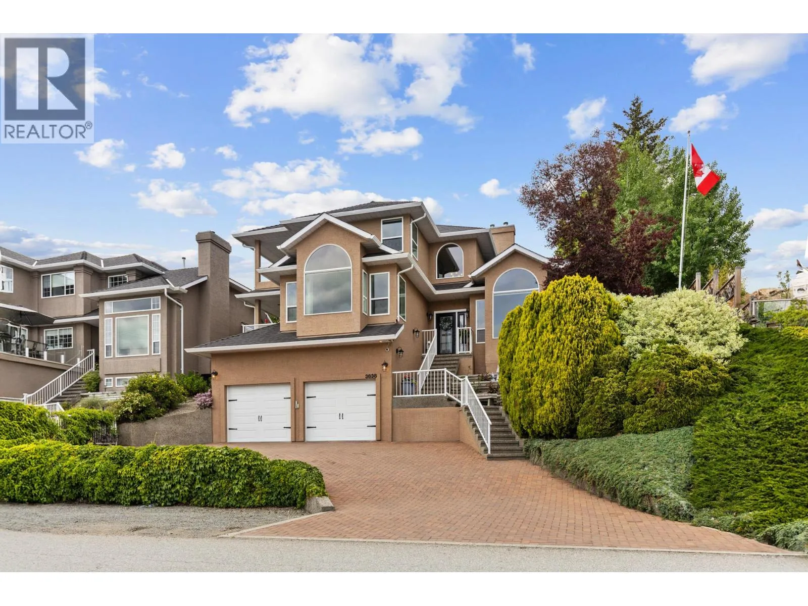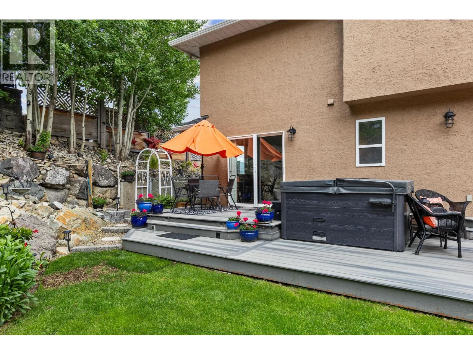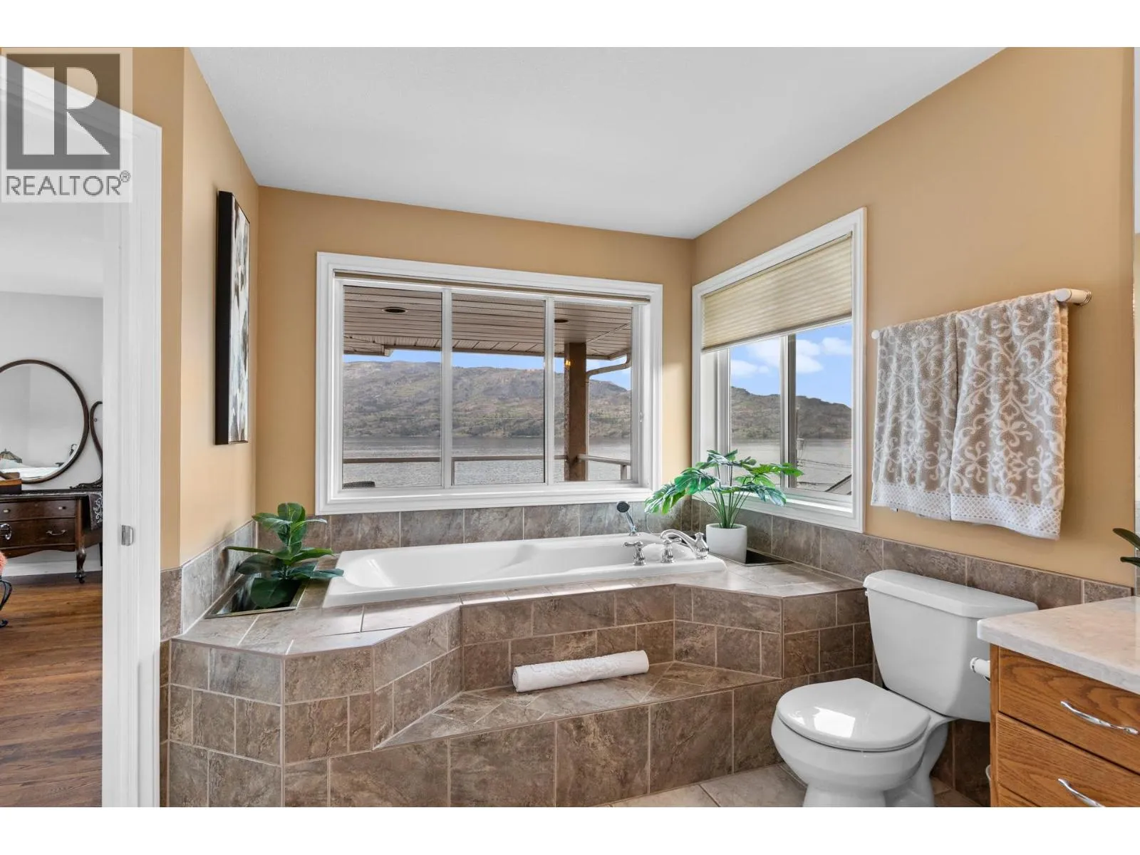 Step outside your front door to enjoy immediate access to Okanagan Lake, where a licensed private buoy awaits your water toys. This immaculate home showcases pride of ownership with its four bedrooms, versatile flex room, and spacious recreation room ideal for a pool table or games room. The newly renovated kitchen features mostly newer appliances, elegant quartz countertops, a beverage fridge and additional sink. The ten foot long island in the kitchen is the perfect gathering place. The primary bedroom ensuite boasts a jetted tub. Additional highlights include a newer front load washer and dryer, built-in vacuum system, and gleaming hardwood oak flooring throughout the home. The property features two front decks for taking in the lake and mountain views, a sunken living room with a gas fireplace, pristinely kept double garage. The outdoor space is fully irrigated, complete with timed drip lines, a stunning water feature, exceptional landscaping with a park like setting of your very own, a greenhouse, garden boxes and a hot tub on the back patio. The home is equipped with a newer geothermal heating and cooling system, ensuring energy efficiency. Your new lifestyle awaits you in the beautiful Peachland along the shores of Okanagan Lake! (id:27476)